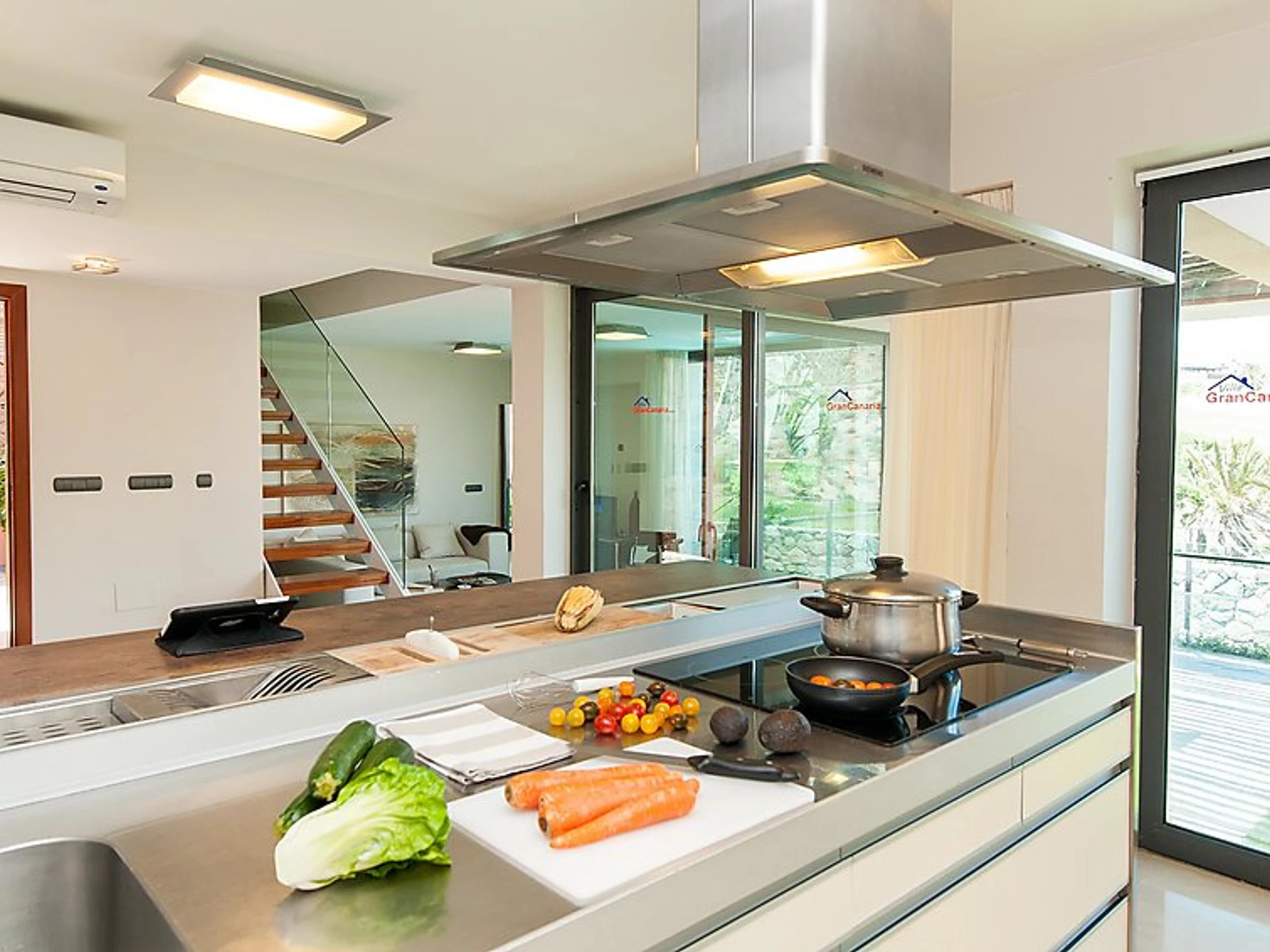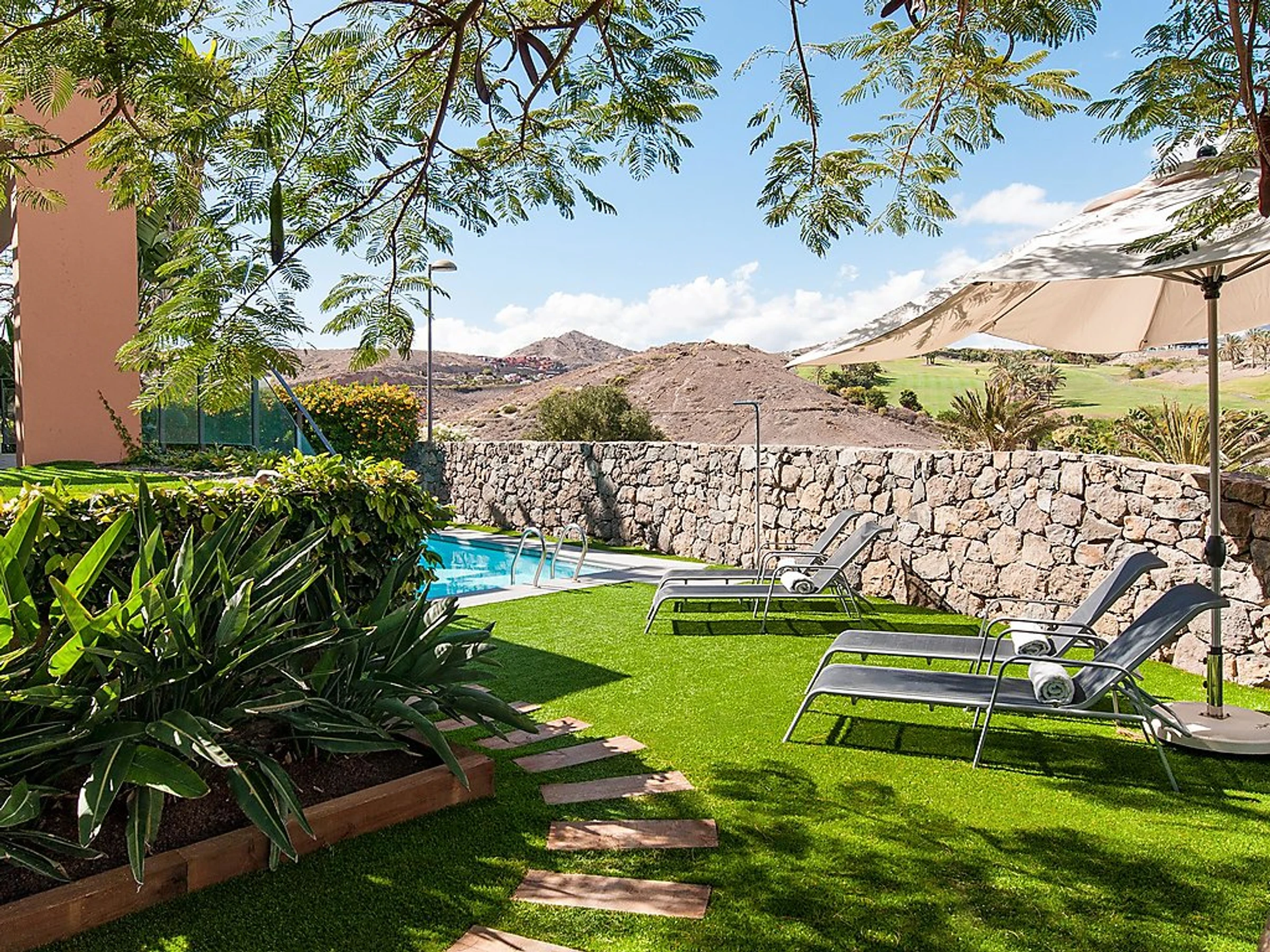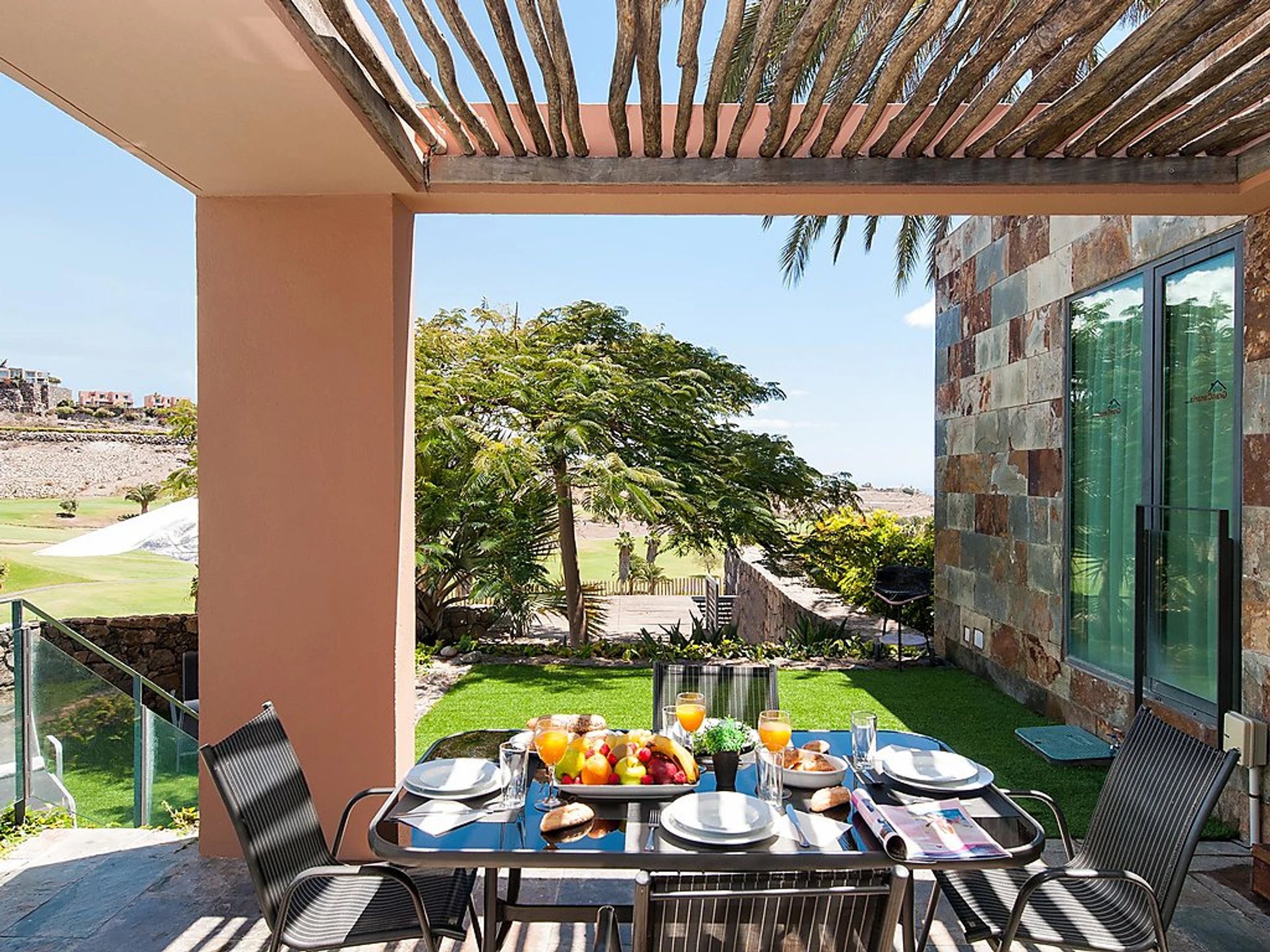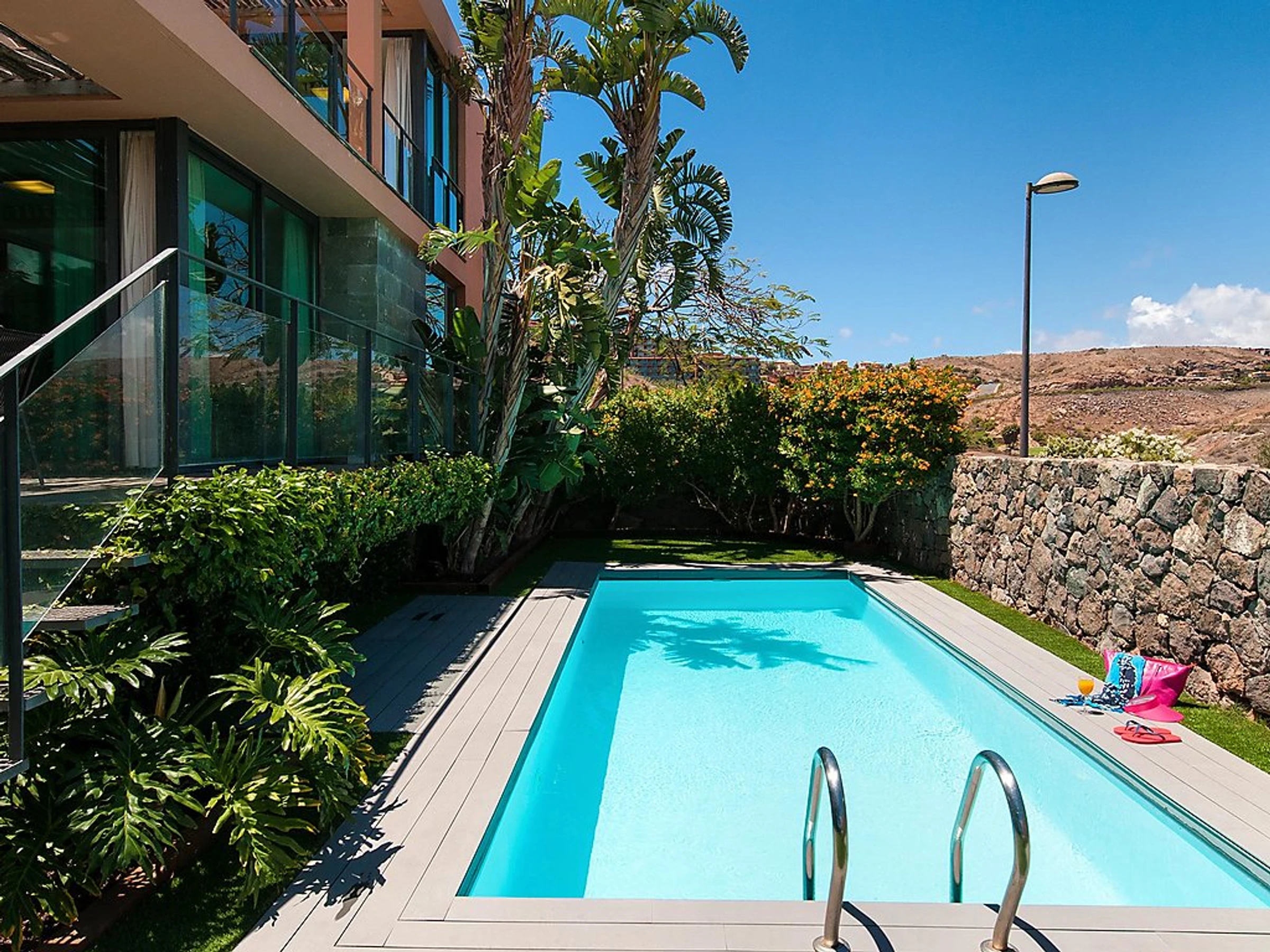 Large, child friendly, modern villa "Los Lagos 6 - Salobre Golf Resort". House Equipment: air conditioning, washing machine (private use), tumble dryer (private use). Access & Parking: parking by the house on the road. All-season motor access to the house. Stepped path. Situation: on the outskirts of Maspalomas, central, quiet, sunny position. View from the apartment of the sea, the mountains and the countryside. Surroundings of the house: grounds (private use, fenced), swimming pool (private use, heated), barbecue (private use). Facilities and distances: shop 10 km, grocers 10 km, supermarket 1 km, restaurant 10 km, sandy beach 120 km, golf course 1 km. Please note, nearby is an ein airport/airfield in 38.8 km. Wifi (extra charged, 6 €/day), confirm in the booking and pay on spot. Swimming pool heating: extra (30€/night, to be requested in the booking and to be paid on spot).