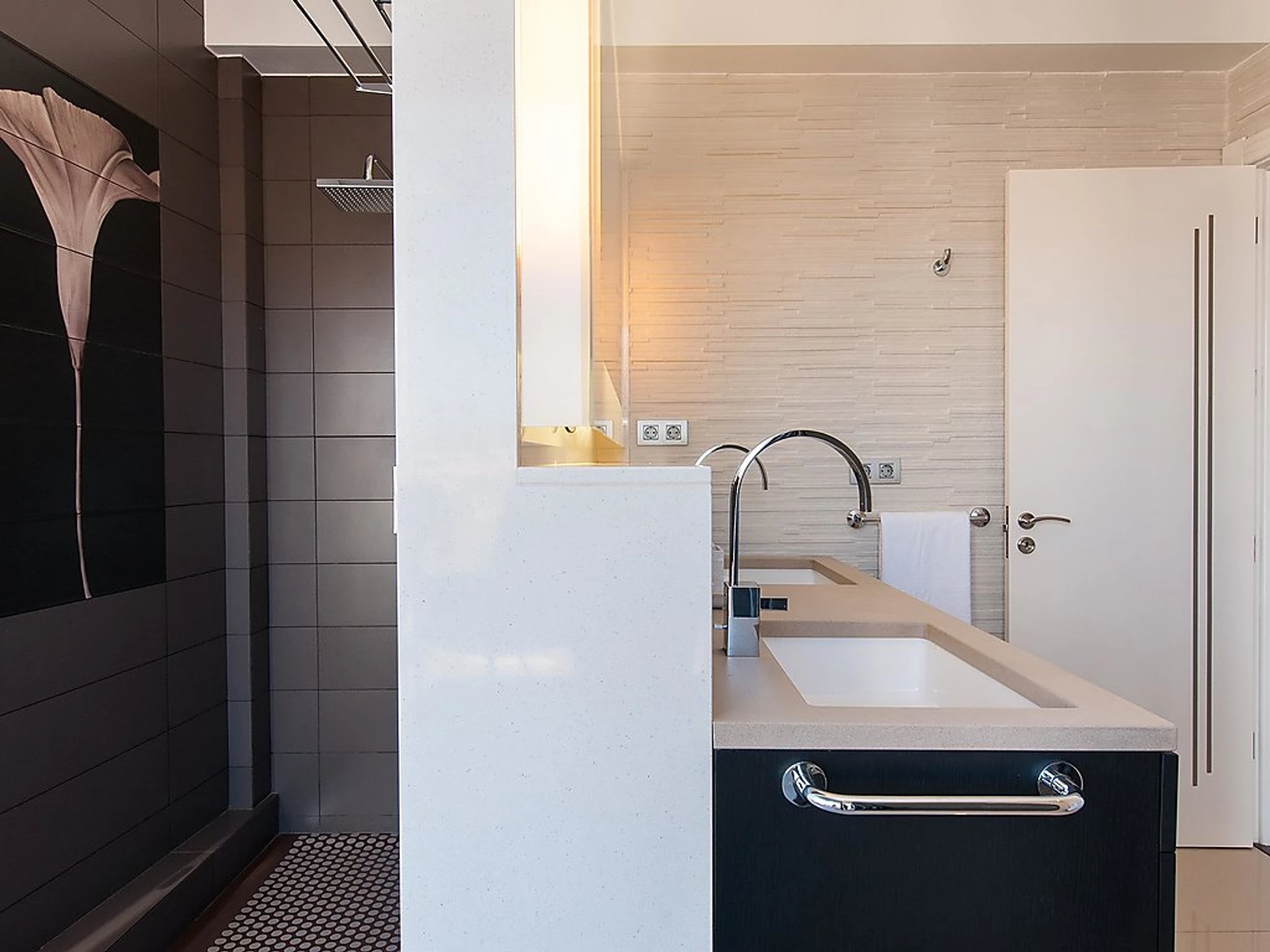 7-room house, detached, for 12 people, 400 m2, modern and luxurious furnishings. Living room with satellite TV, hi-fi system and dining-table. Smoking not allowed. Internet (DSL/LAN). Sleeping room with 1 double bed. Sleeping room with 1 double bed. Sleeping room with 1 double bed. Sleeping room with 4 single beds. Sleeping room with 1 double bed. Sleeping room with 3 bunk beds. Kitchen with 4 hot plates, micro wave, oven, dining table, dishwasher and fridge. Food service: bread roll service (included). Bath/WC, shower/WC and bath/shower/WC. Terrace 100 m2, patio 300 m2, terrace furniture, 12 deck chairs. Other equipment: safe, children's high chair, hair dryer, iron, washing machine, dryer. Wifi (extra: 6 euros/day), to be paid on spot. Included: Cot (up to 2 years), Air-conditioning, Bed linen (initial supply), Pet, Final cleaning, Heating, Towels (initial supply), Power costs Available on site with supplement: Pool heating 40.0EUR per day