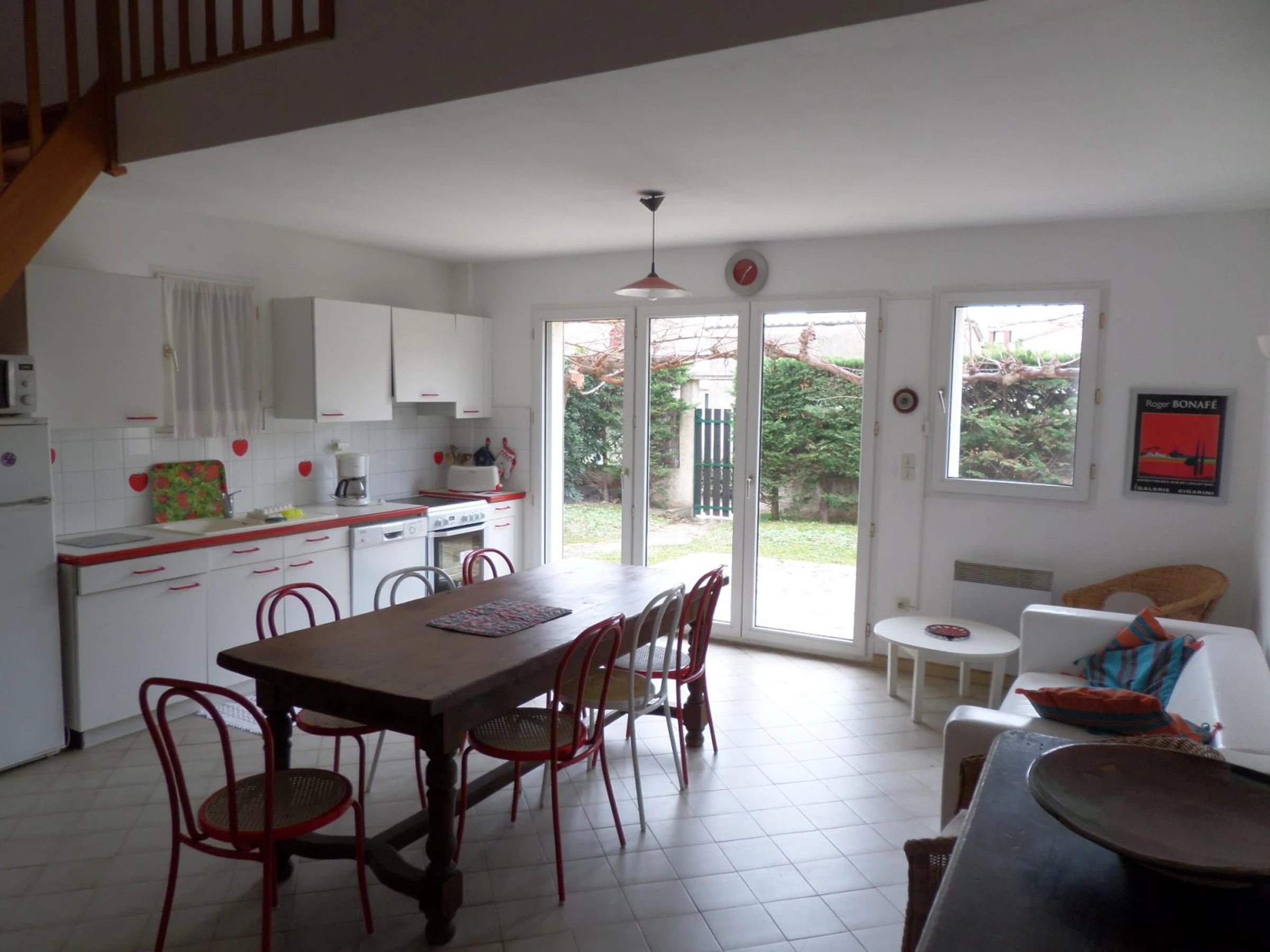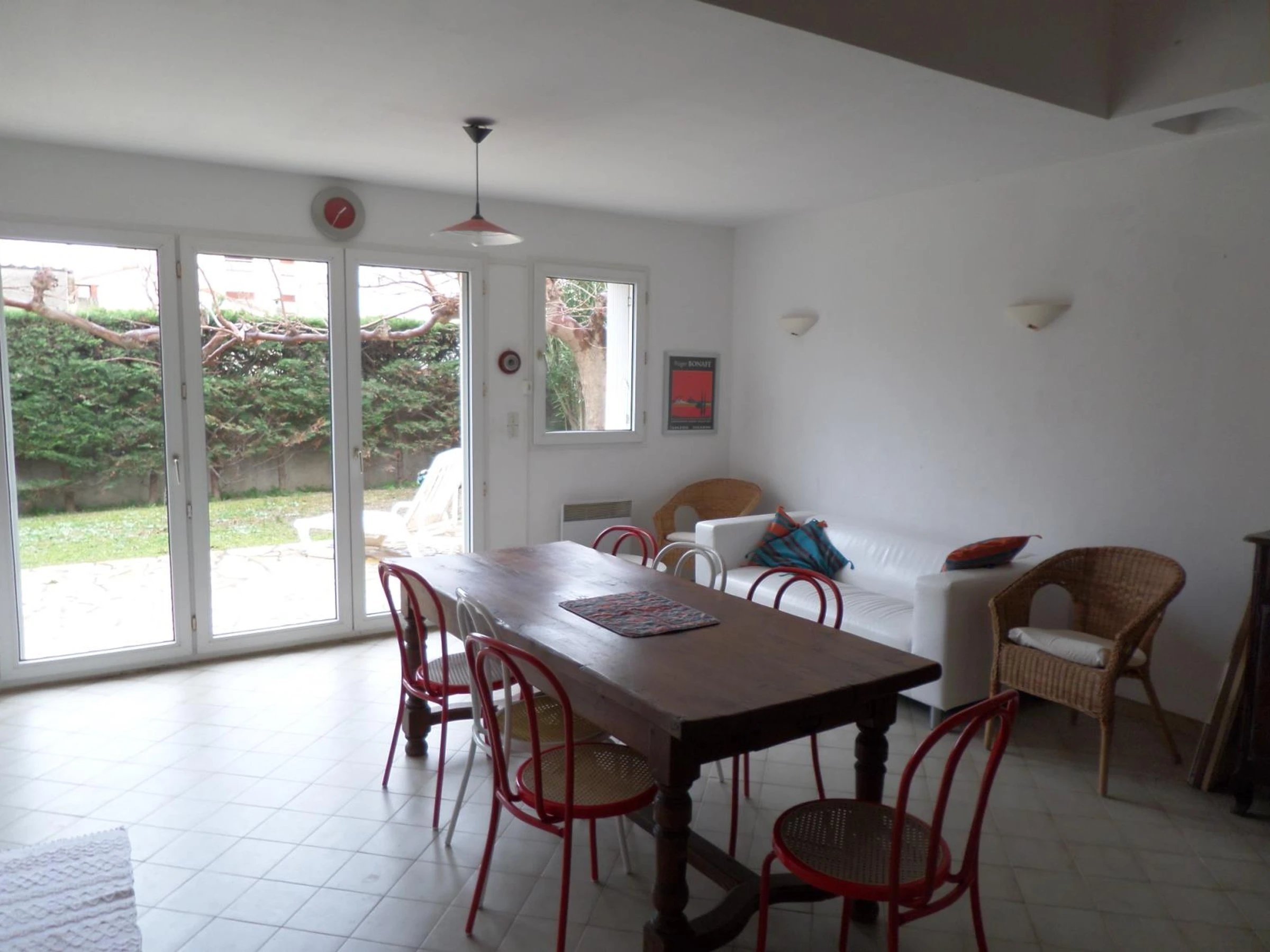 Lovely Languedoc-style villa, F6, located about a hundred meters from the beach, equipped for 8 to 11 beds. It consists of a large living room with a fully equipped kitchen open to the garden, a first sleeping area with two children's bedrooms, one with two bunk beds, the other with a single bed, and a bathroom with a toilet; a second sleeping area with a bathroom and toilet, and two bedrooms: one with a 160x200 bed, the other with a convertible sofa bed (clic clac), and above these rooms, a loft dormitory (2 mattresses of 90). Upstairs, above the living room, there is a master suite with a 160x200 bed and an en-suite bathroom with a toilet.