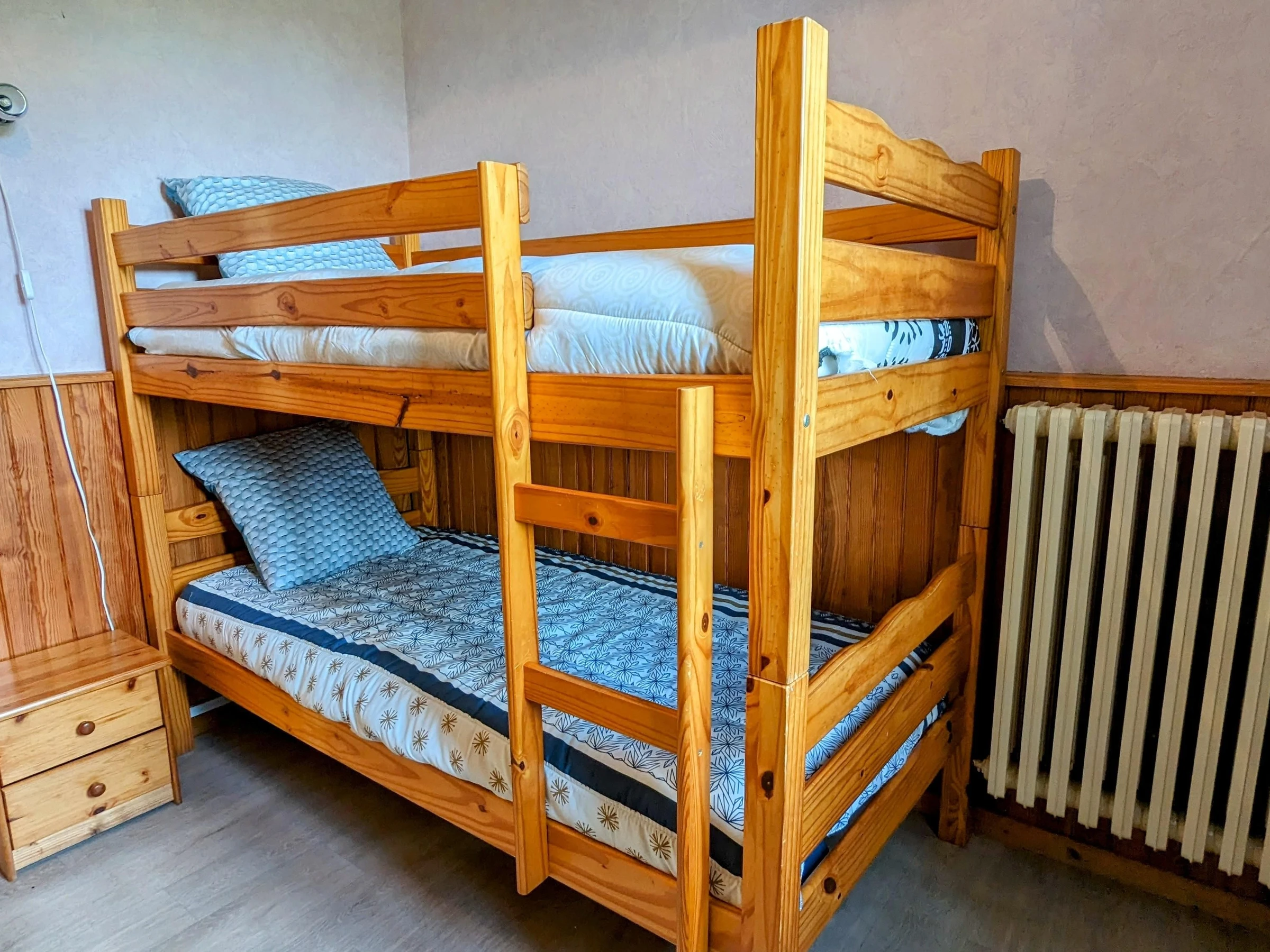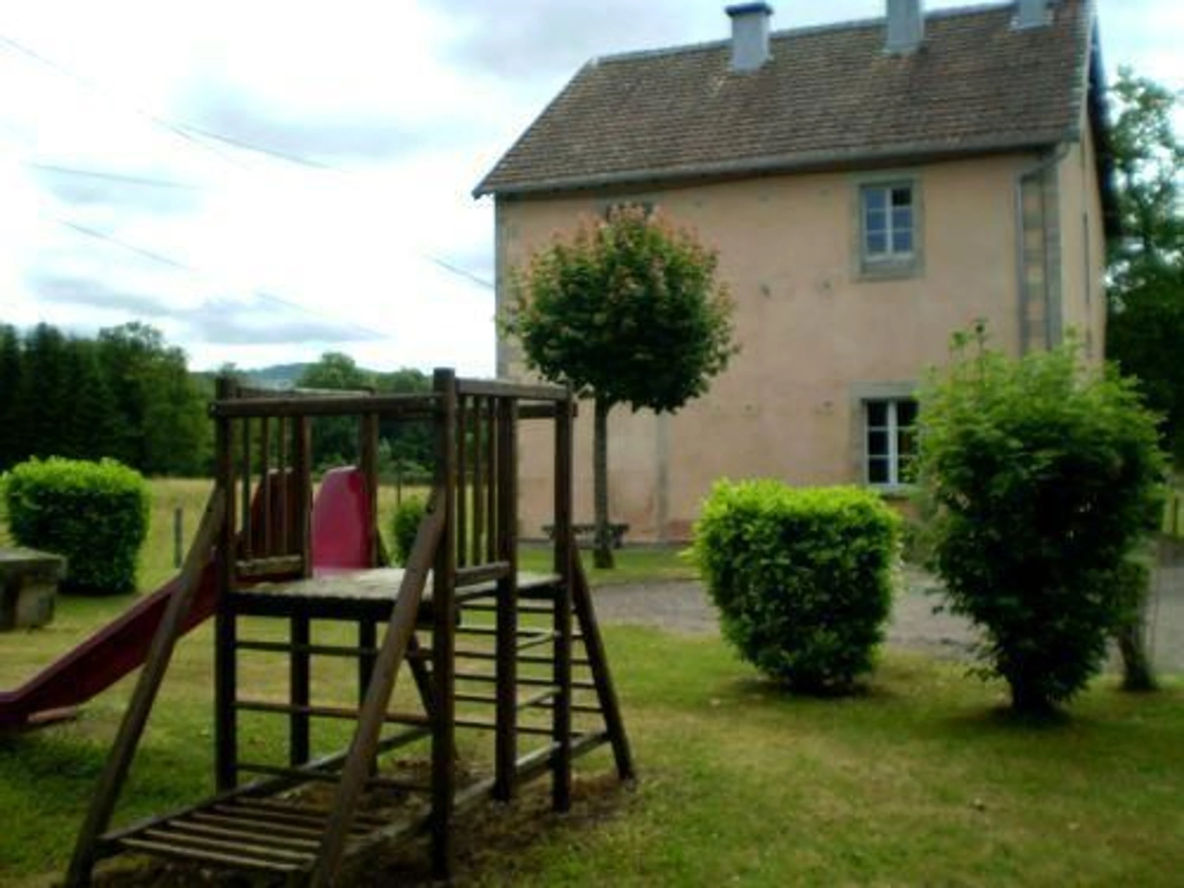 At the foot of the Plateau des Mille Etangs, this village with a strong commercial tradition has been awarded the Green Holiday Resort label, and is a starting point for hiking, cycling, and horseback riding. Things to do: a discovery tour of the village. Other attractions include the La Praille leisure area, with a swimming pool open in summer, the Plateau des Mille Etangs. The Mille Etangs riding school is located opposite the swimming pool's leisure area. 3 km from the village, surrounded by nature, this single-story apartment is housed in a renovated former schoolhouse and includes: a kitchen, a living room/lounge area, 1 bedroom (1 double bed), 1 bedroom (1 double bed), 1 bedroom (2 bunk beds), a bathroom, and a toilet. Additional amenities include a washing machine shared with the gîte located upstairs. Unfenced lawn surrounds the house. Oil-fired heating. CHARGES INCLUDED. Includes another gîte upstairs, no. 70G4659, for 6 people.