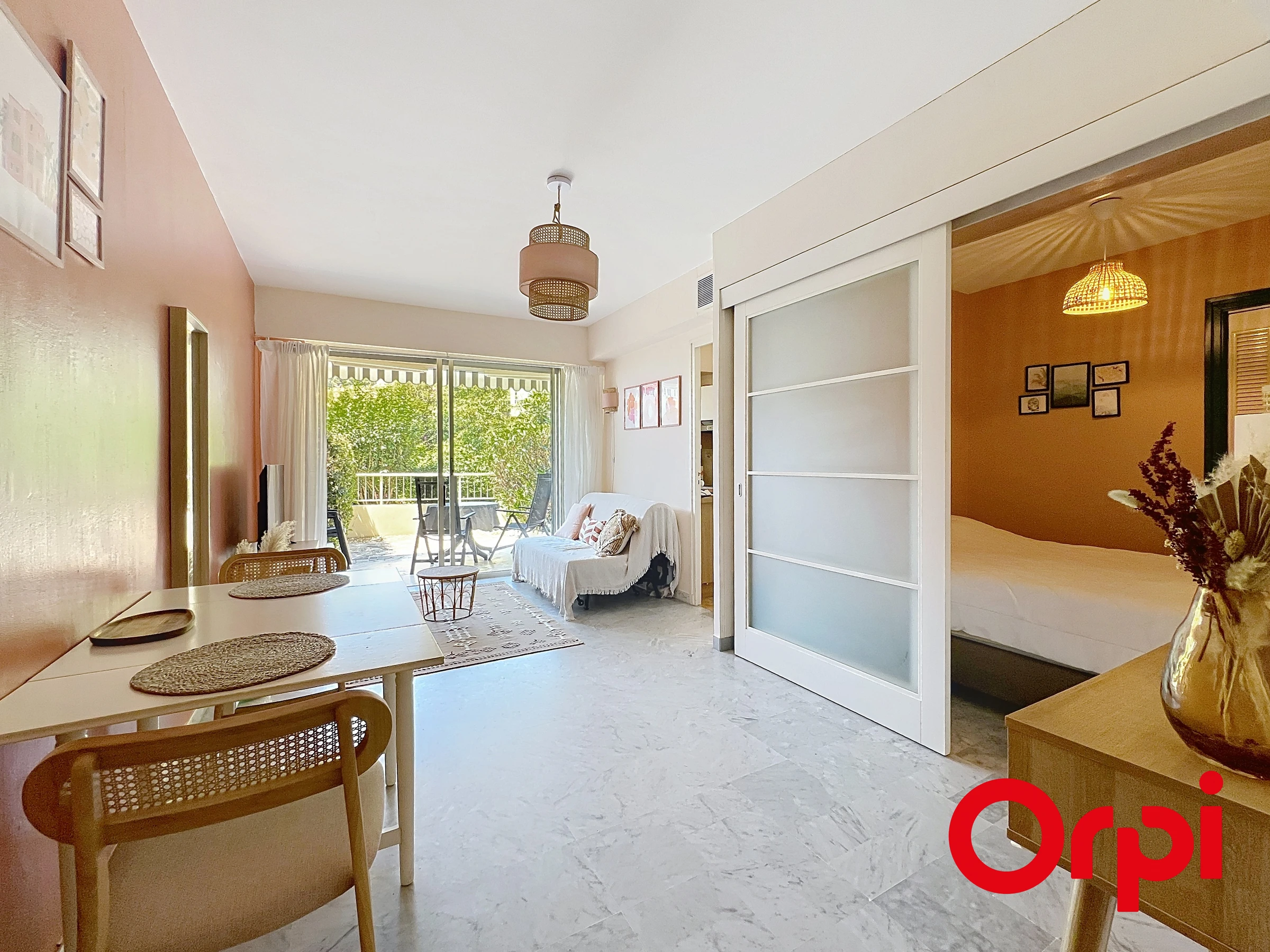 Superb 36 m² air-conditioned apartment with a large southwest-facing terrace offering a pleasant sea view. Located in a secure residence with a year-round swimming pool, this accommodation is ideal for a relaxing stay on the Côte d'Azur. The apartment features a bright living room with a sofa bed (140x190), TV, and internet access, a fully equipped separate kitchen, a sleeping area with a double bed (160x190), a bathroom, and a separate toilet.