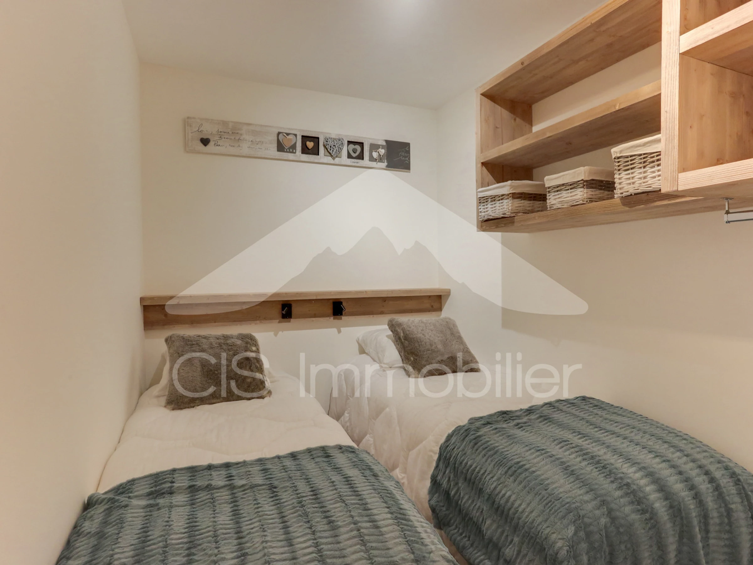A cabin (closed by a sliding door) with 2 single beds (80 cm).