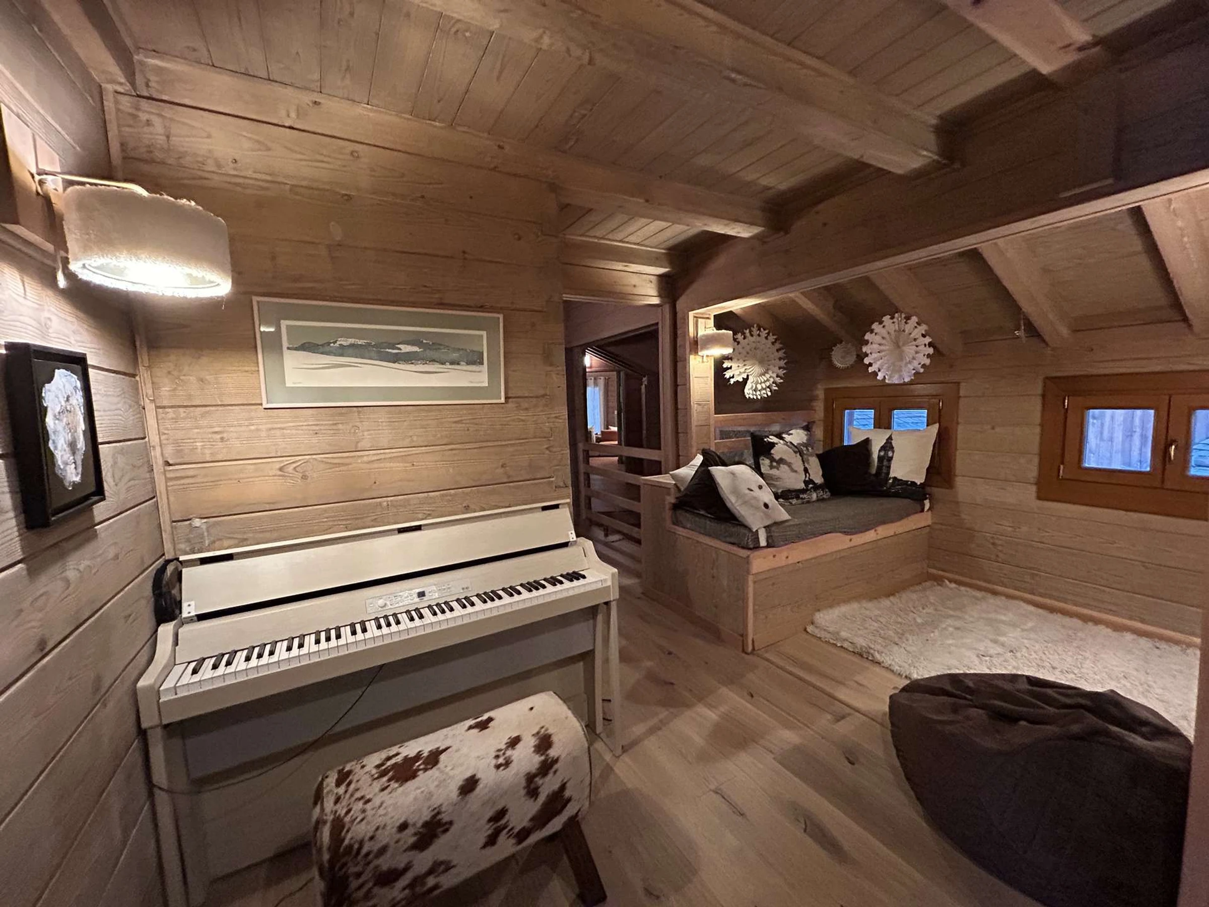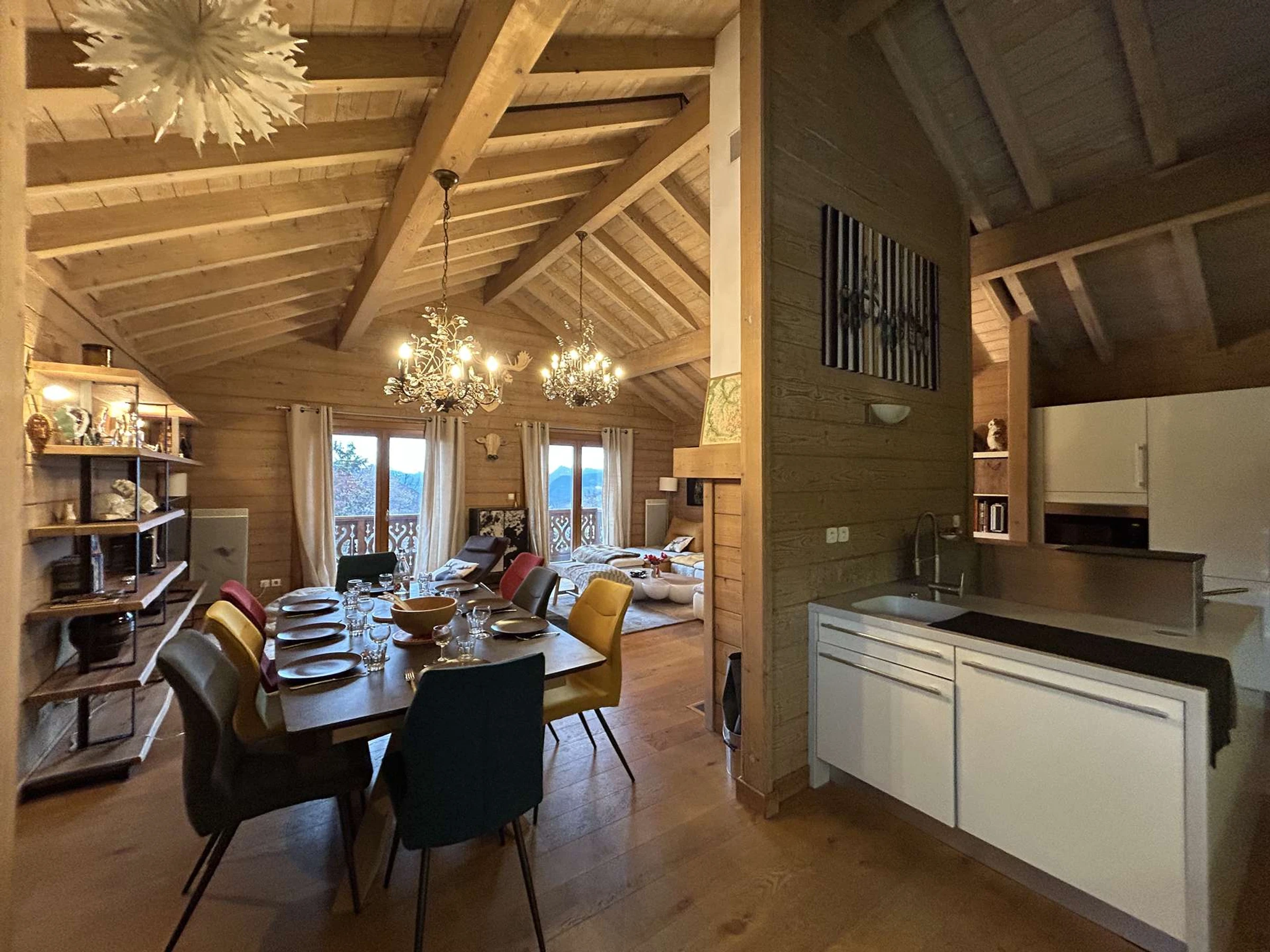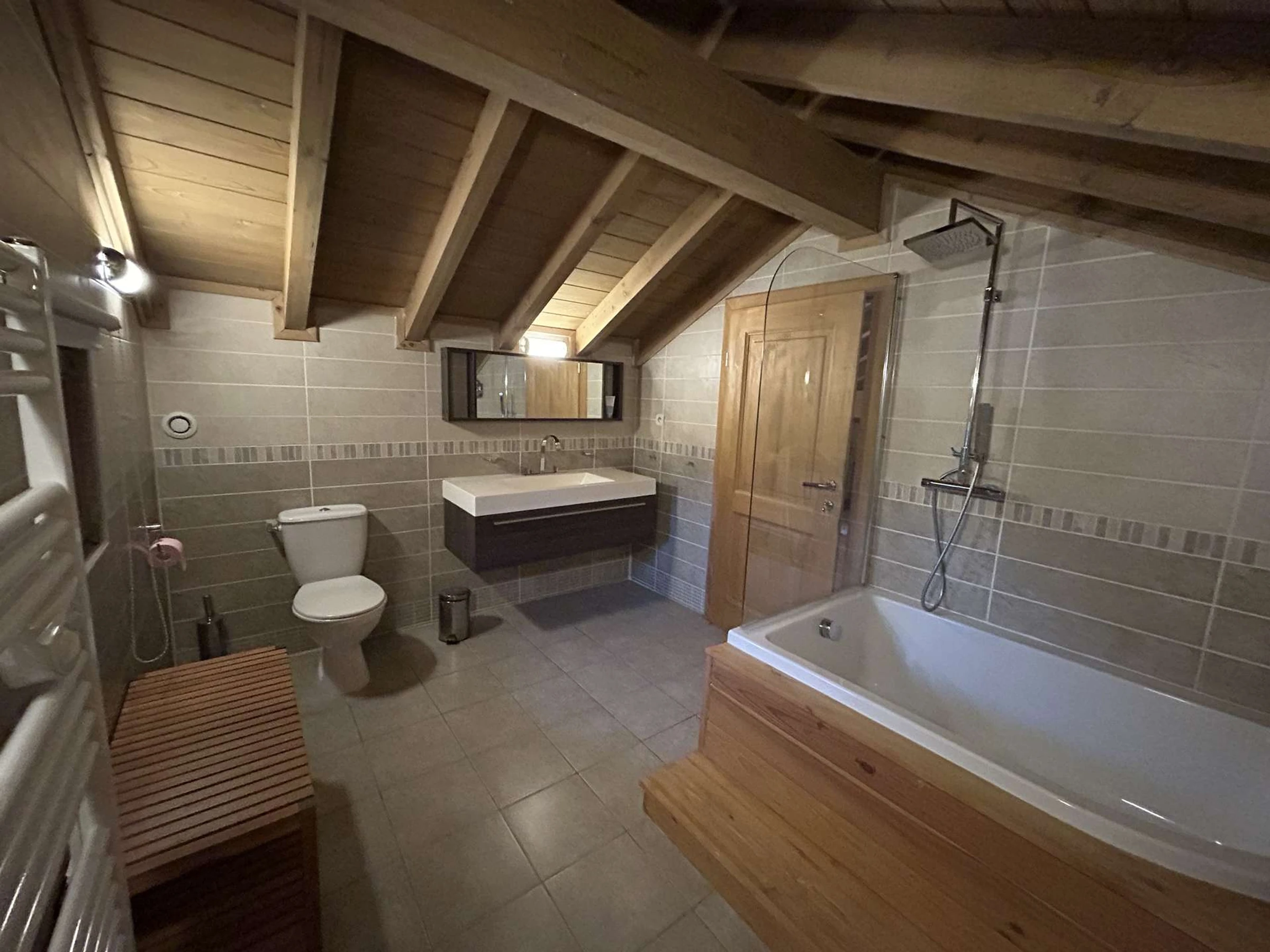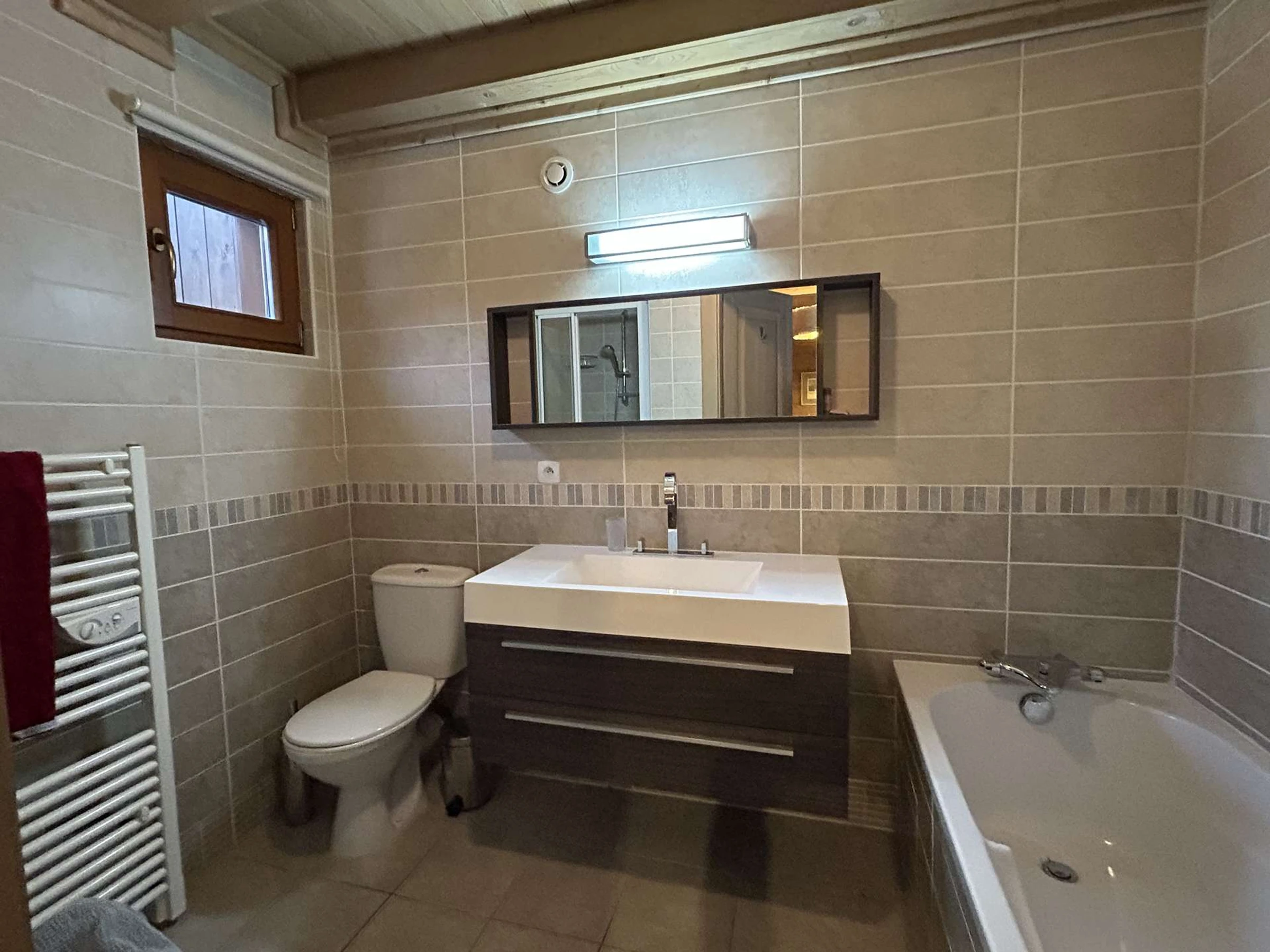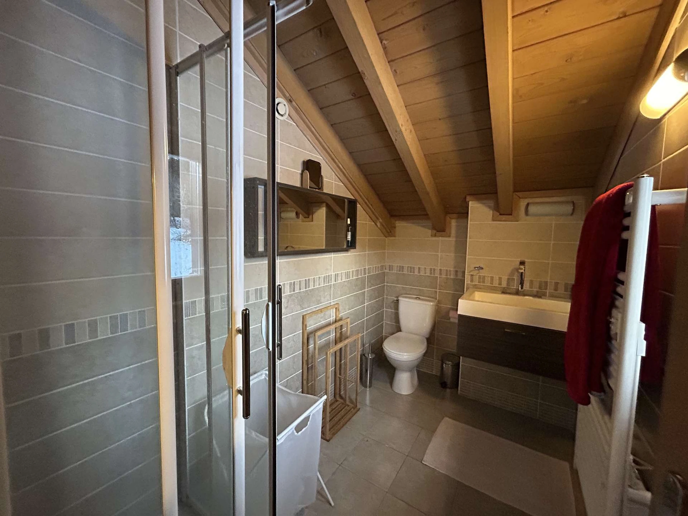 The Le Hameau des Biches residence is located in the quiet Plantin district, 2 km from the shops and restaurants of the Méribel Village ski resort and 4 km from the Méribel resort itself. This beautiful apartment, situated on the first floor, comfortably accommodates 8 people. It features a very spacious living area with a large, fully equipped kitchen opening onto a large living room with a fireplace and a television, leading onto a large west-facing balcony. On the same floor, you will find a bedroom with a king-size bed (180x200 cm) facing south, with an en-suite shower room and toilet; a bedroom with a double bed (140x190 cm) facing south; a bedroom with two single beds (90x190 cm) facing south; a separate bathroom with a shower and toilet; a separate toilet; and a sitting area.