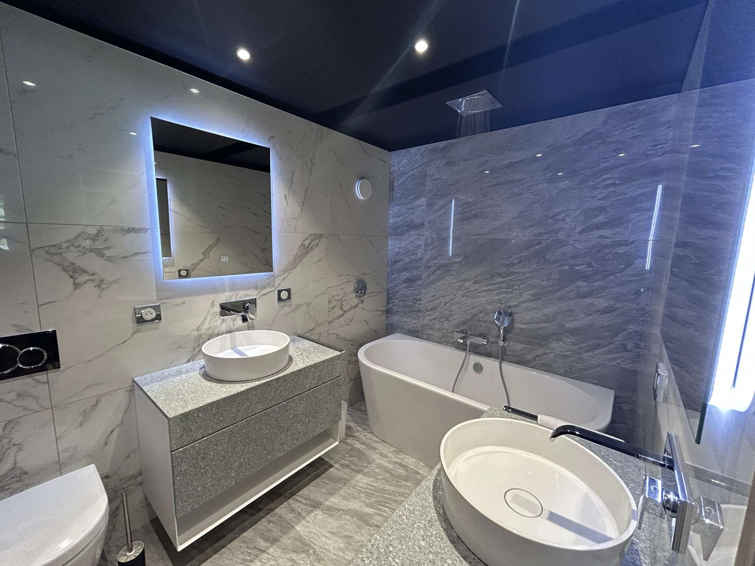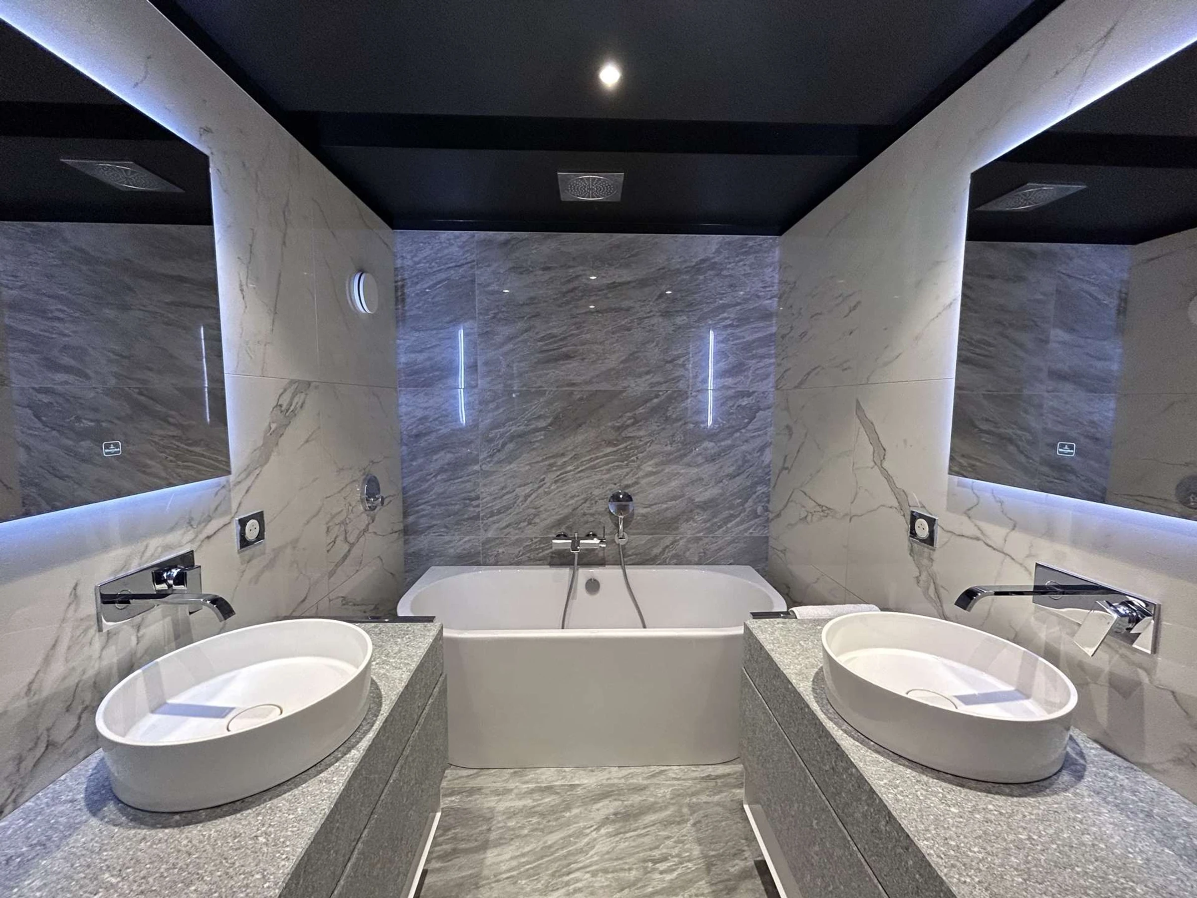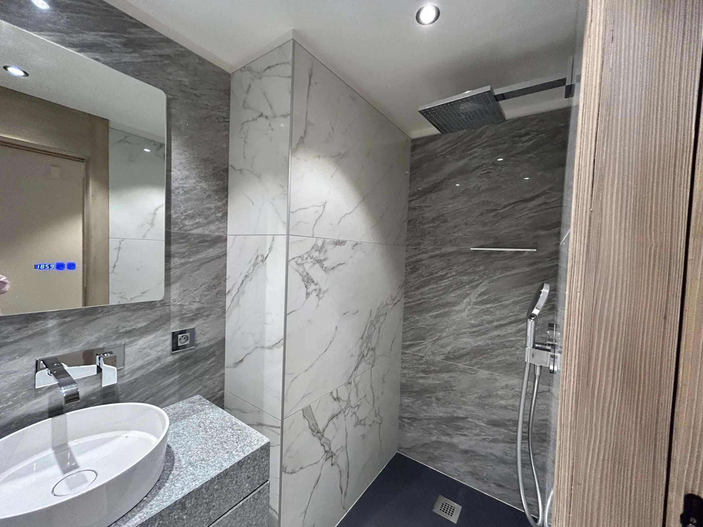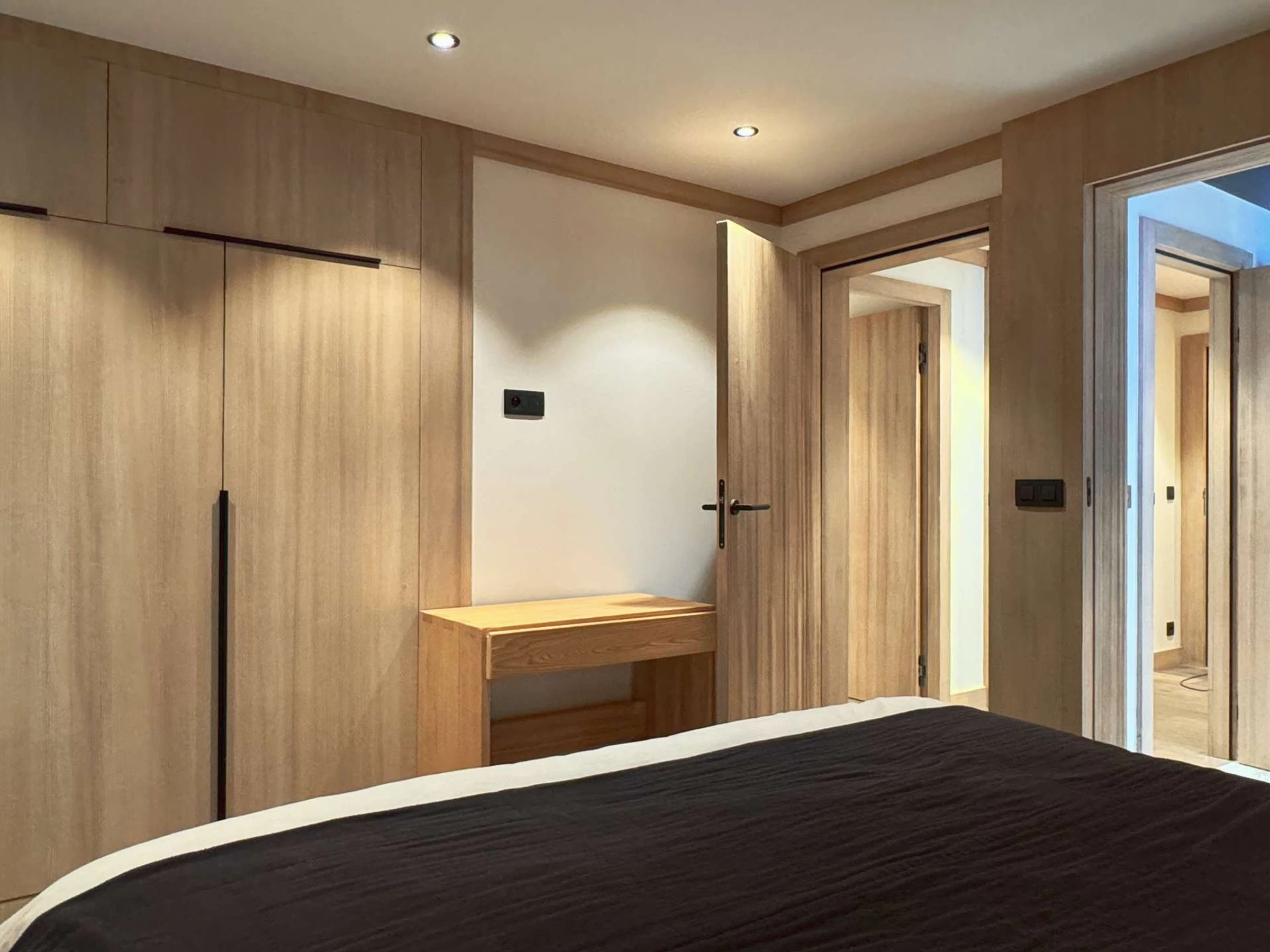 a bedroom with a double bed (180*200), a second bedroom with two single beds (90*190) a third bedroom with a set of bunk beds (90*190), plenty of storage space, a bathroom with a bathtub and a toilet, a shower room, a separate toilet.