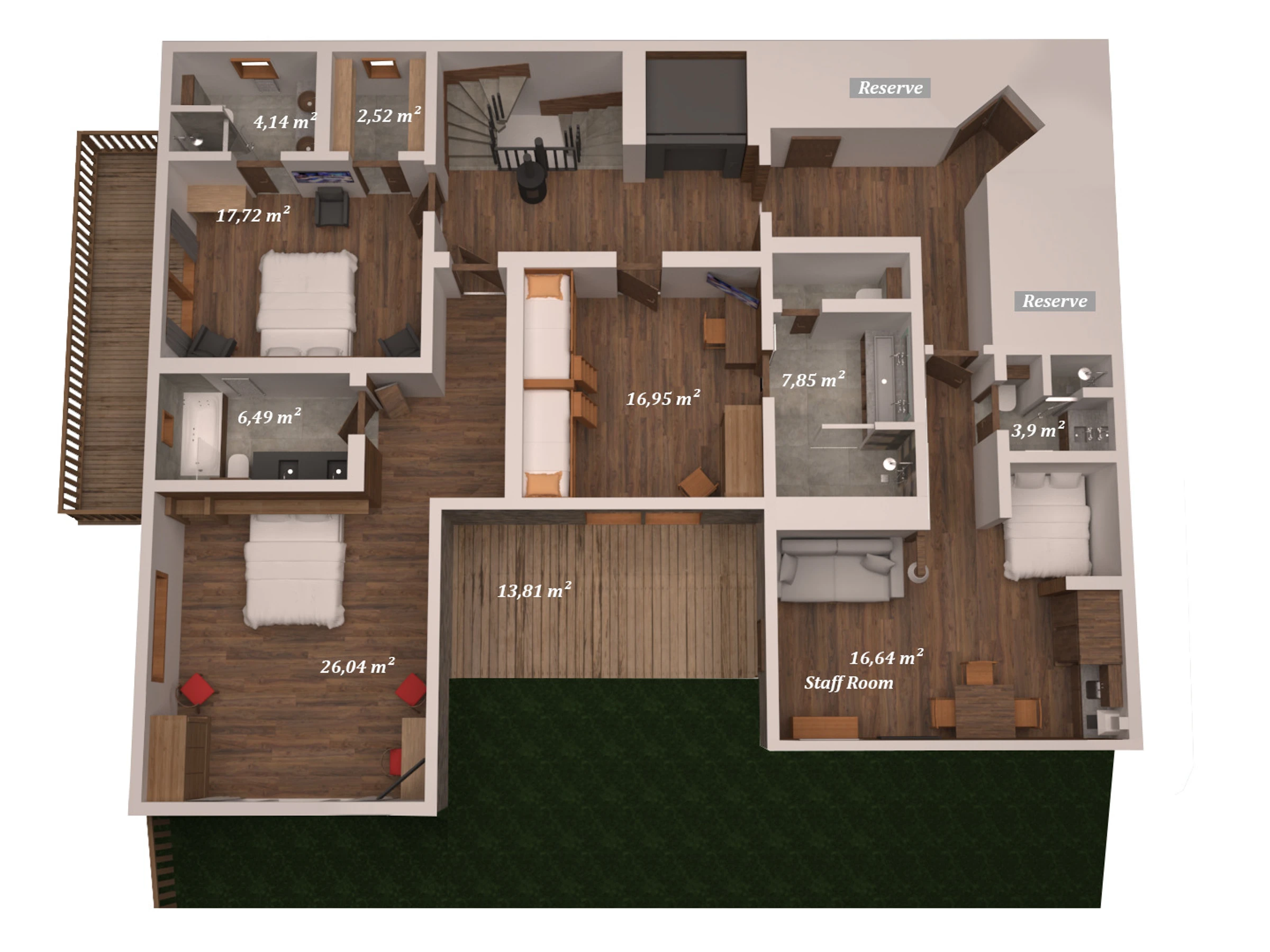 Chalet Queen Mijane is about 660m² with 7 bedrooms for 14/15 people including a studio for 2 guests.
