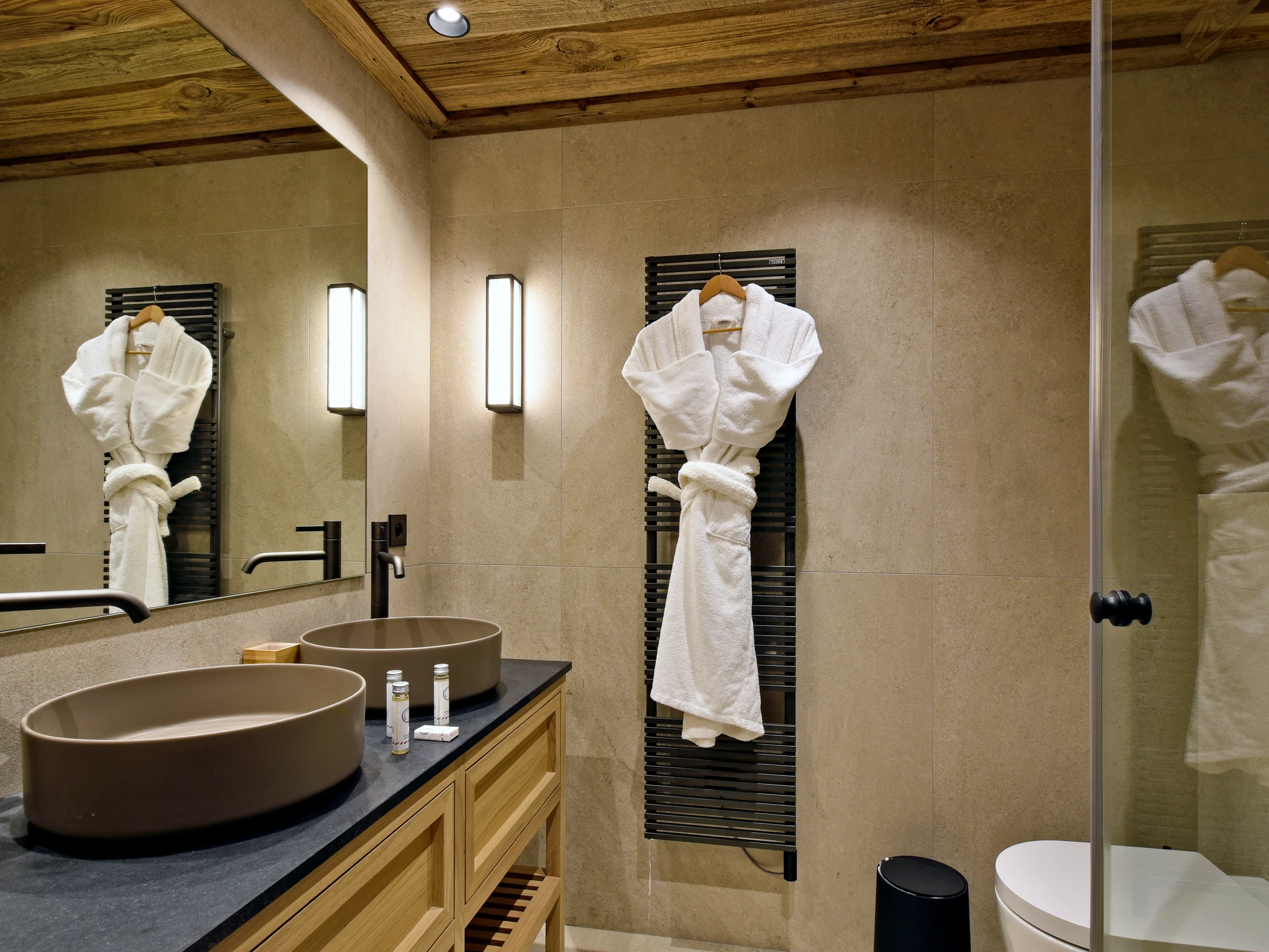 - Shower room, double sinks and toilet