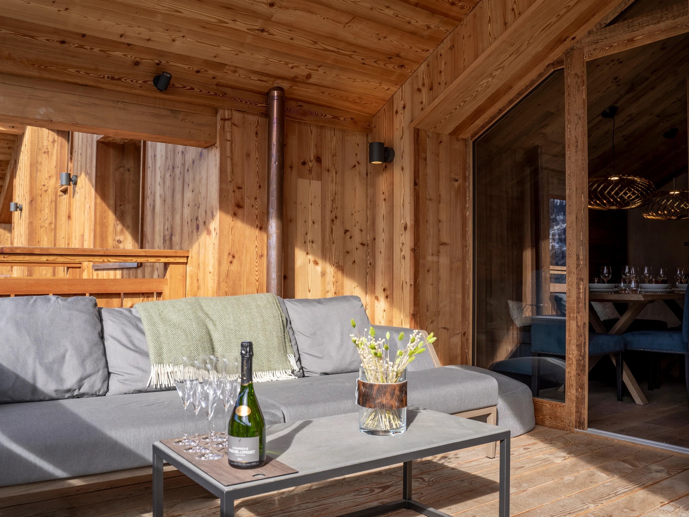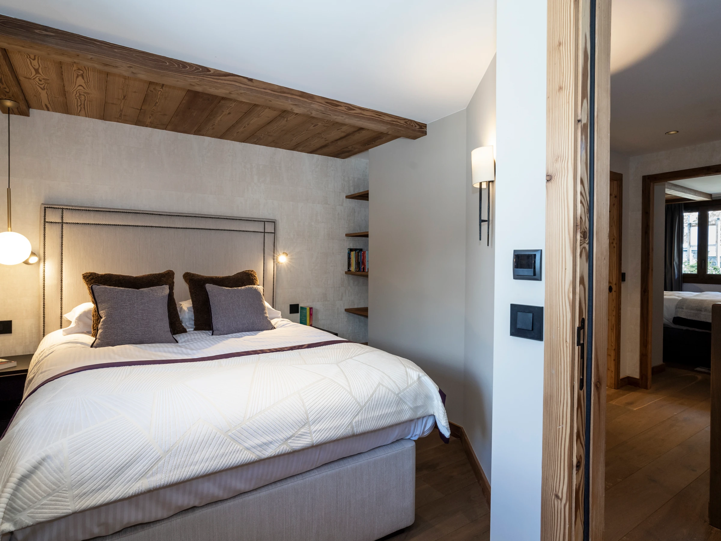 With its exclusive location, the residence offers access to the shops and slopes in just a few minutes on foot. This intimate and charming residence is composed of only 9 flats for the greater calm of its residents. Its west-facing aspect gives it unobstructed views of the valley's peaks and unique sunshine.