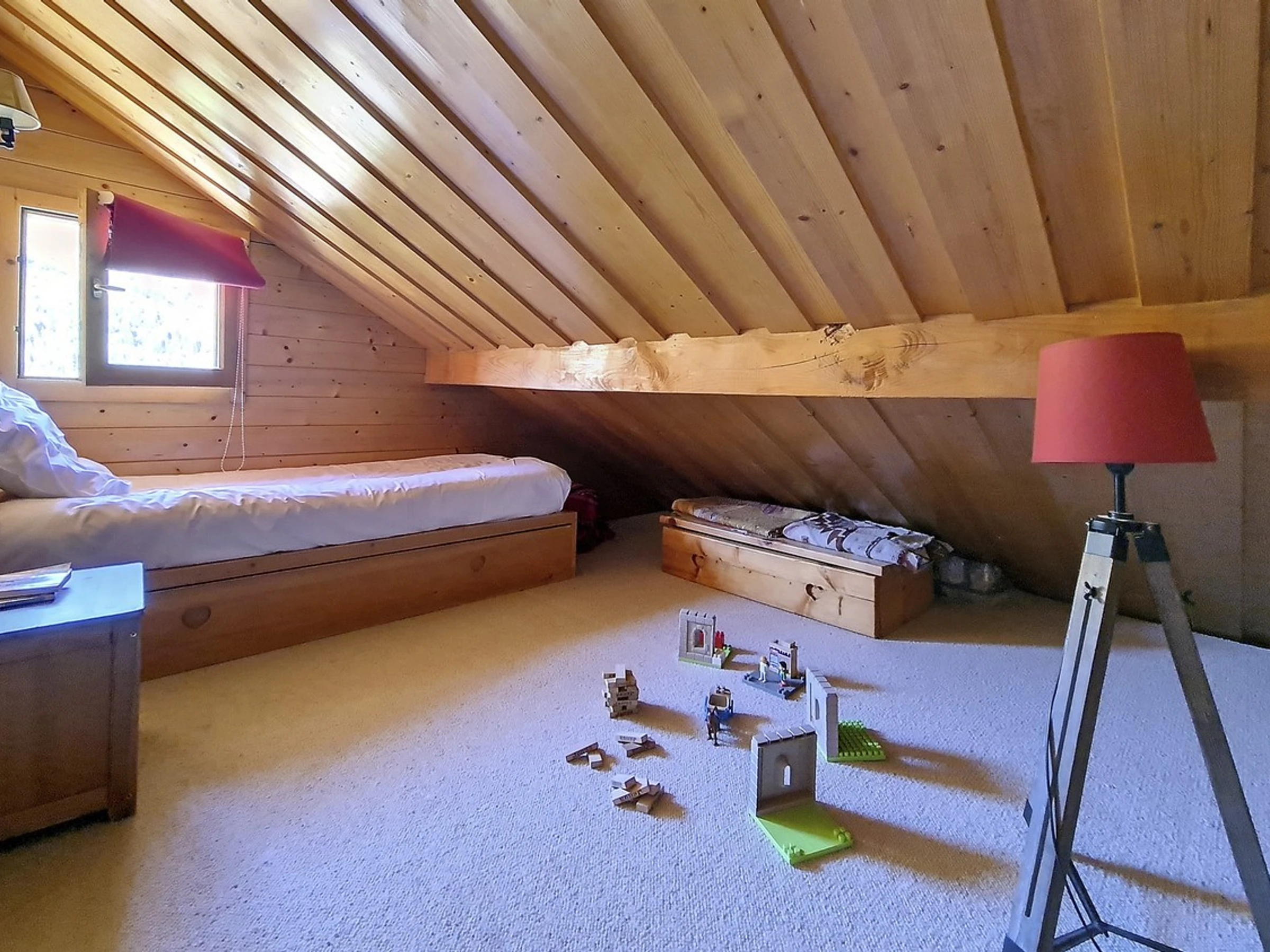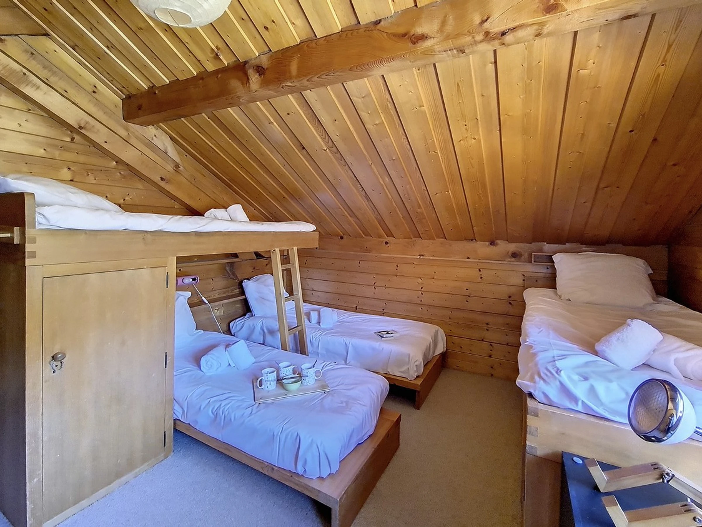 - 1 children's dormitory with 2 single beds + 2 other single beds that can be put together for a double bed (140 cm), bathroom.
