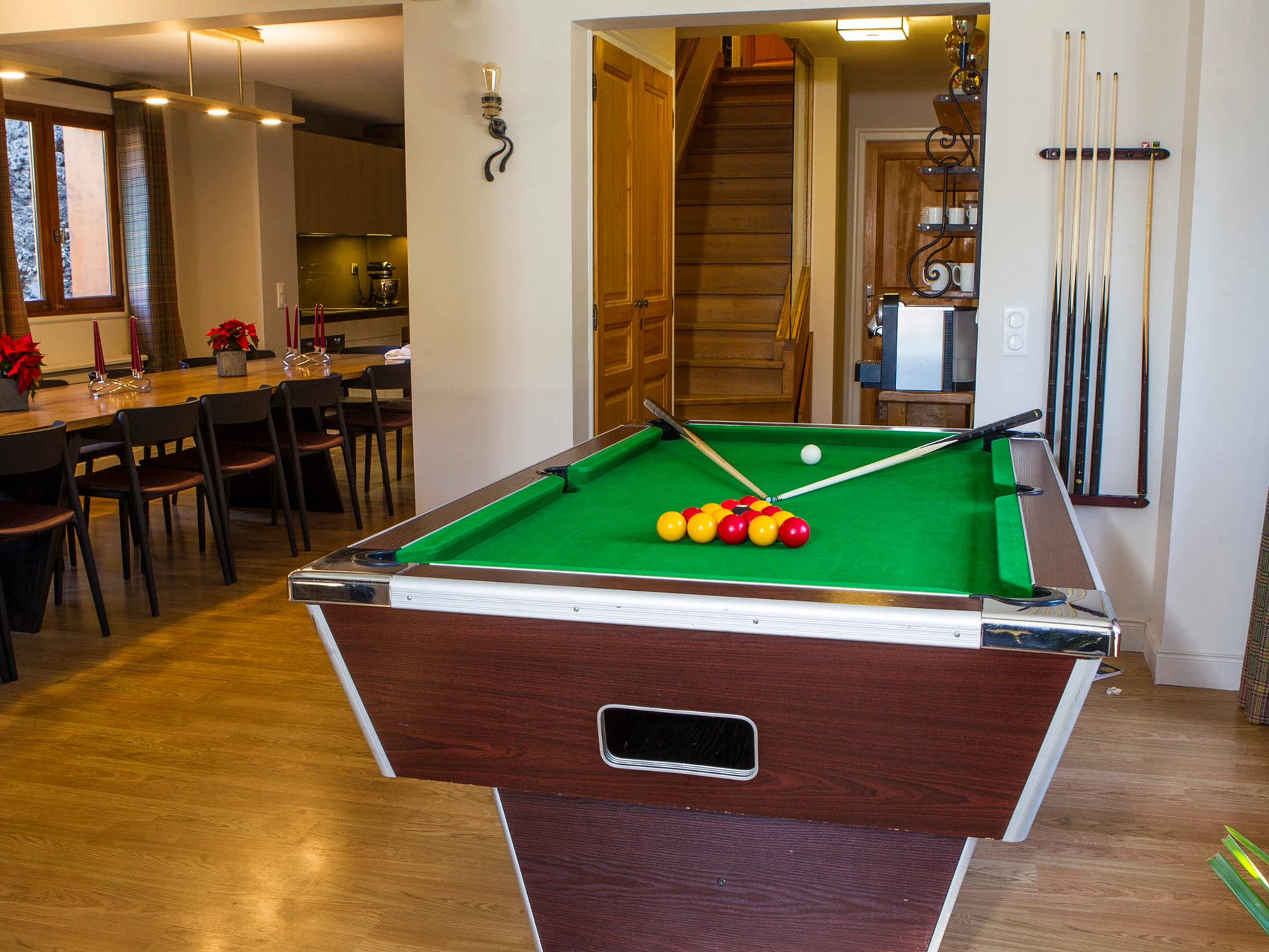 The garage incorporates a ski rack, a heated ski boot machine, and heated racks for clothing and gloves as well as a pool table.