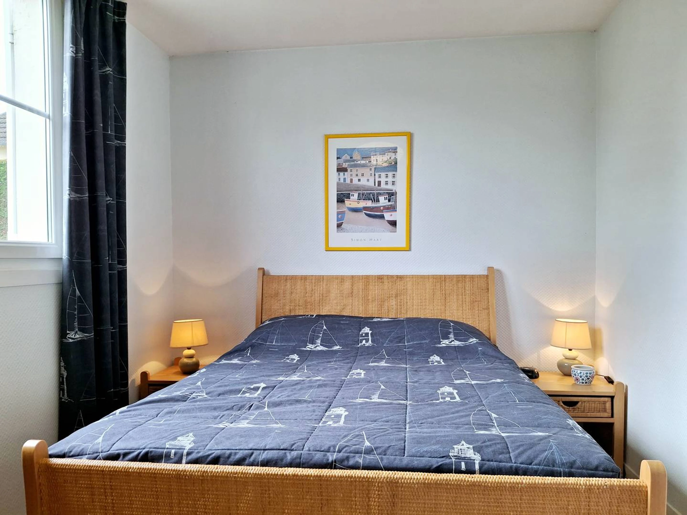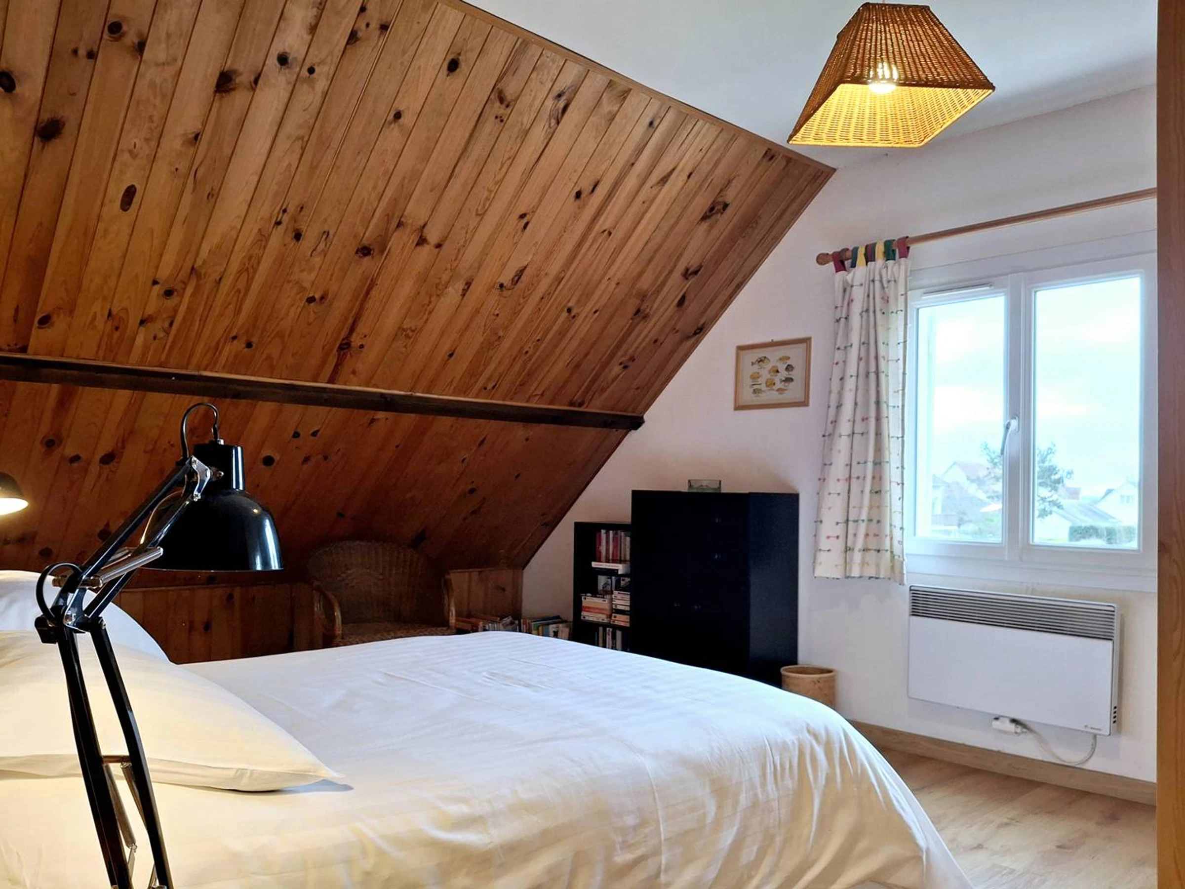 Côté nuit, la maison dispose de trois chambres dont une au rez-de-chaussée (lit 140 x 190). A l'étage, les deux chambres offrent un cocon paisible, l'une avec un lit double (140x190) et l'autre avec un lit double (140x190) et un lit simple. Une salle d'eau vient complété l'étage pour plus de confort.