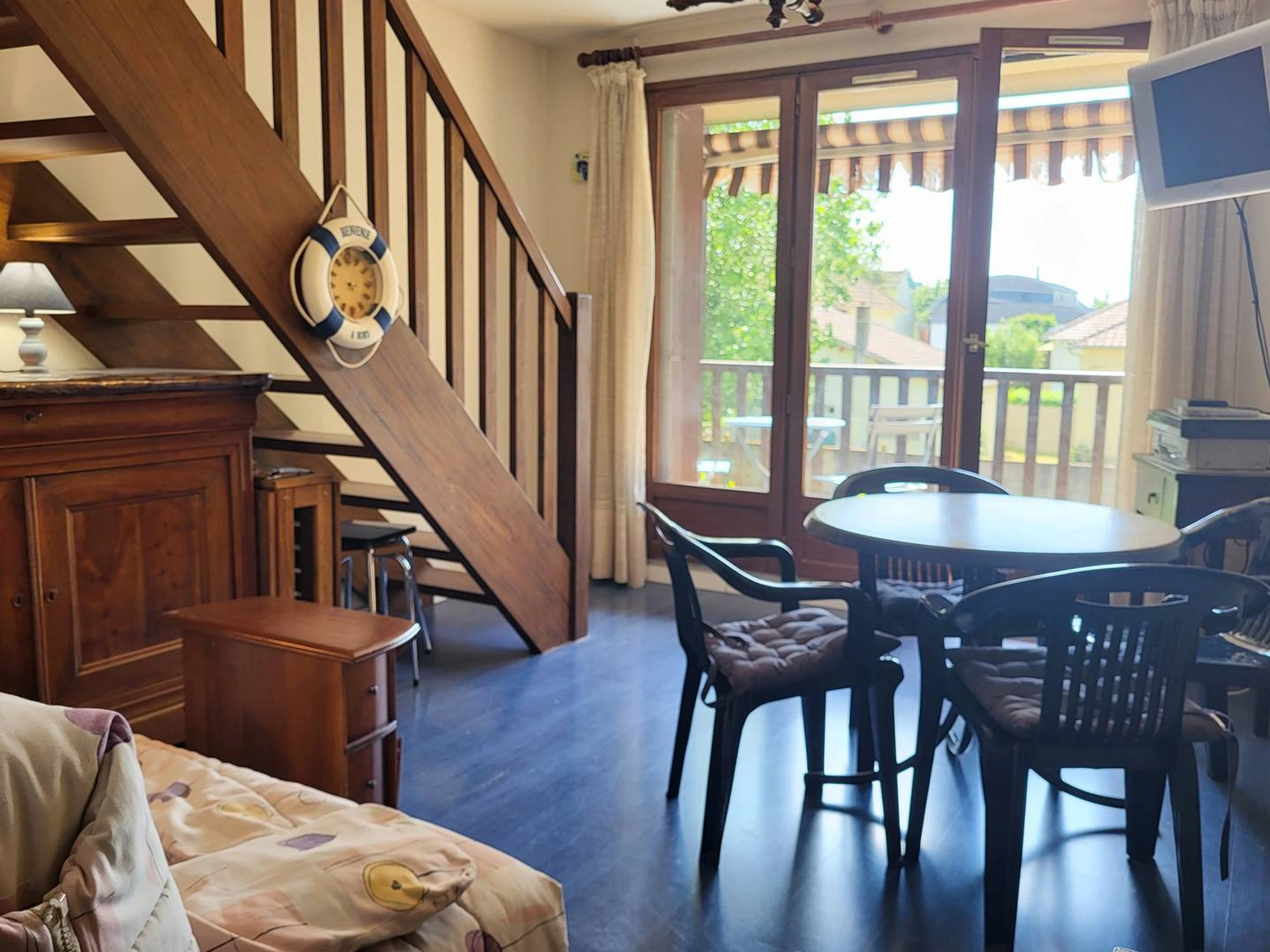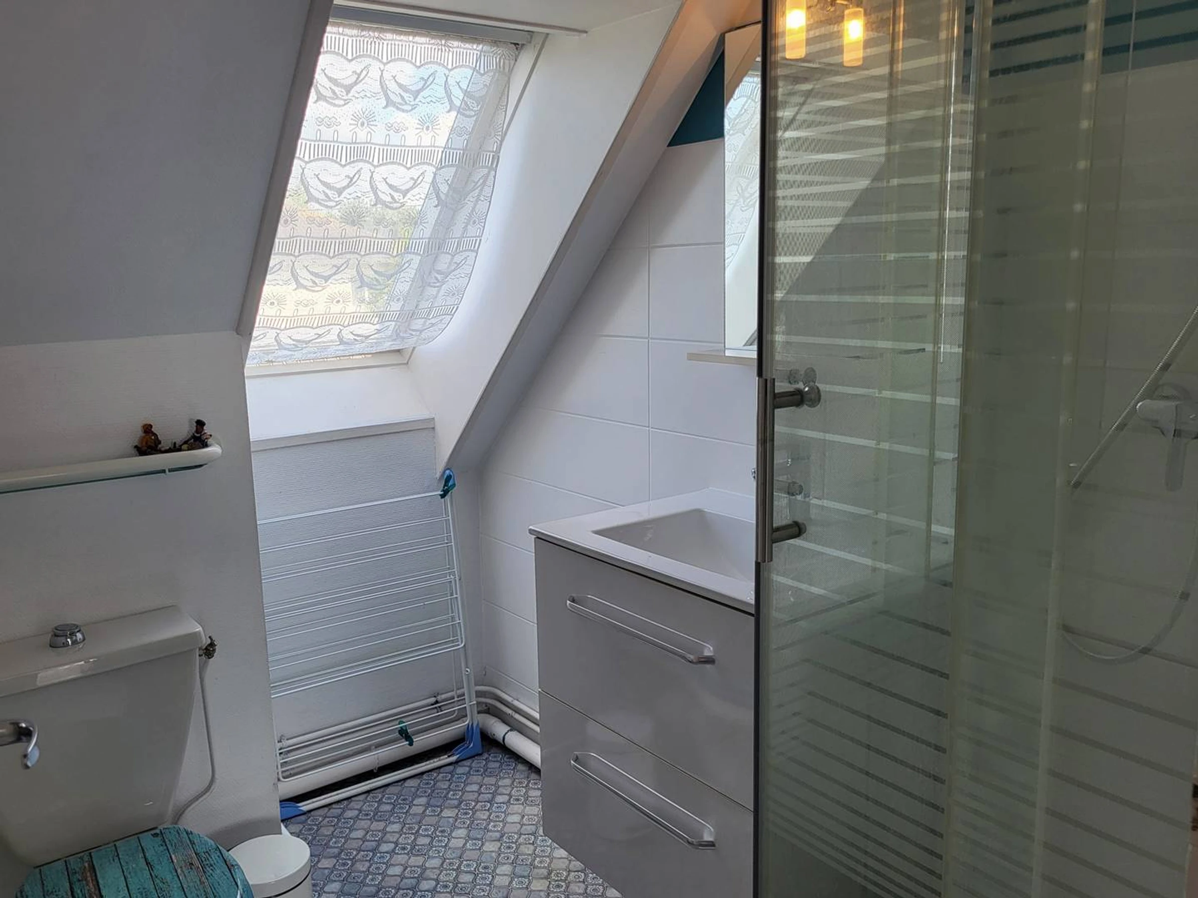 We are pleased to offer a duplex apartment with a bedroom upstairs furnished with two single beds (90 x 190 cm) and a bathroom with toilet.