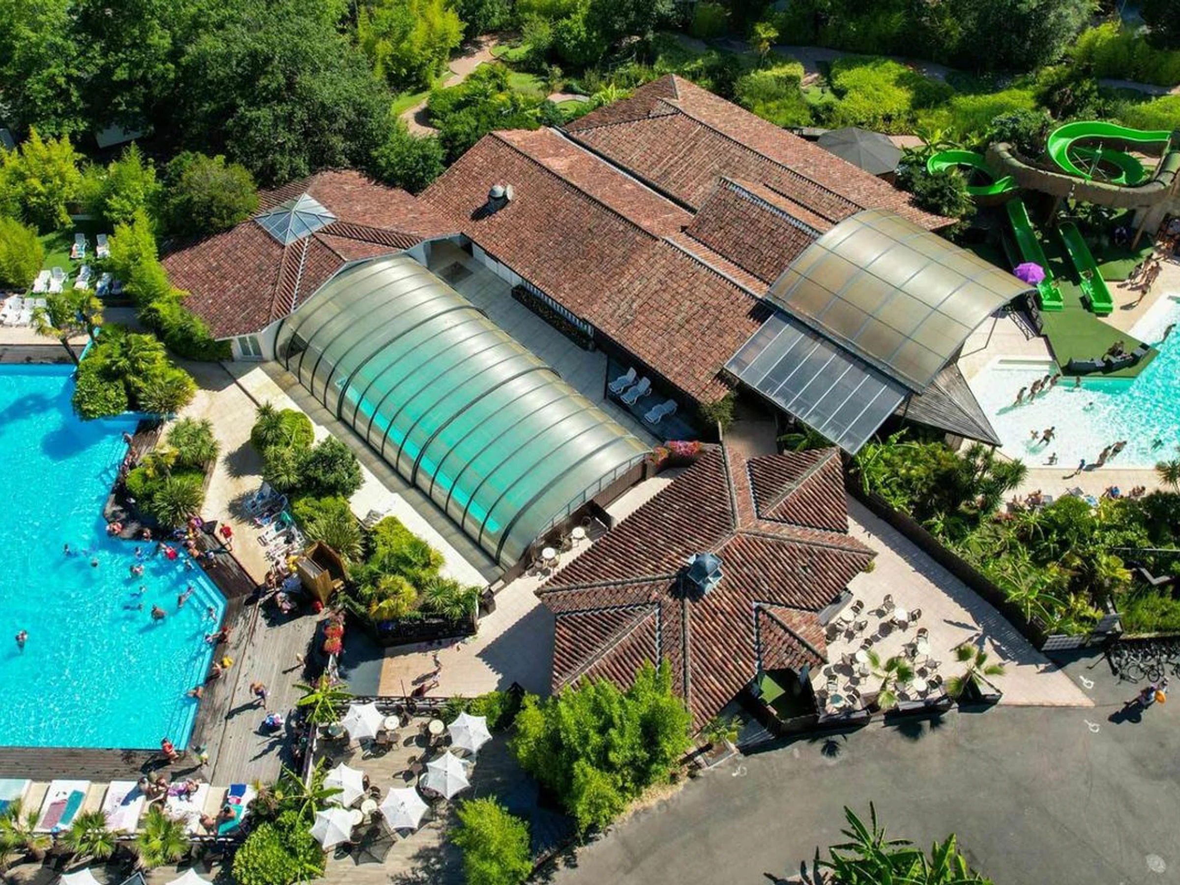 - 2 water slides, 3 swimming pools including one indoor pool, water games, swimming lagoon with its white sand beach. For hygiene and safety reasons, only body-cleaning swimwear specifically designed for swimming (one- or two-piece swimsuits, briefs or swim trunks) is permitted in the aquatic area. Loose or covering clothing (such as shorts, bermudas, t-shirts, dresses, trousers, wetsuits not suitable for swimming, etc.) is prohibited.