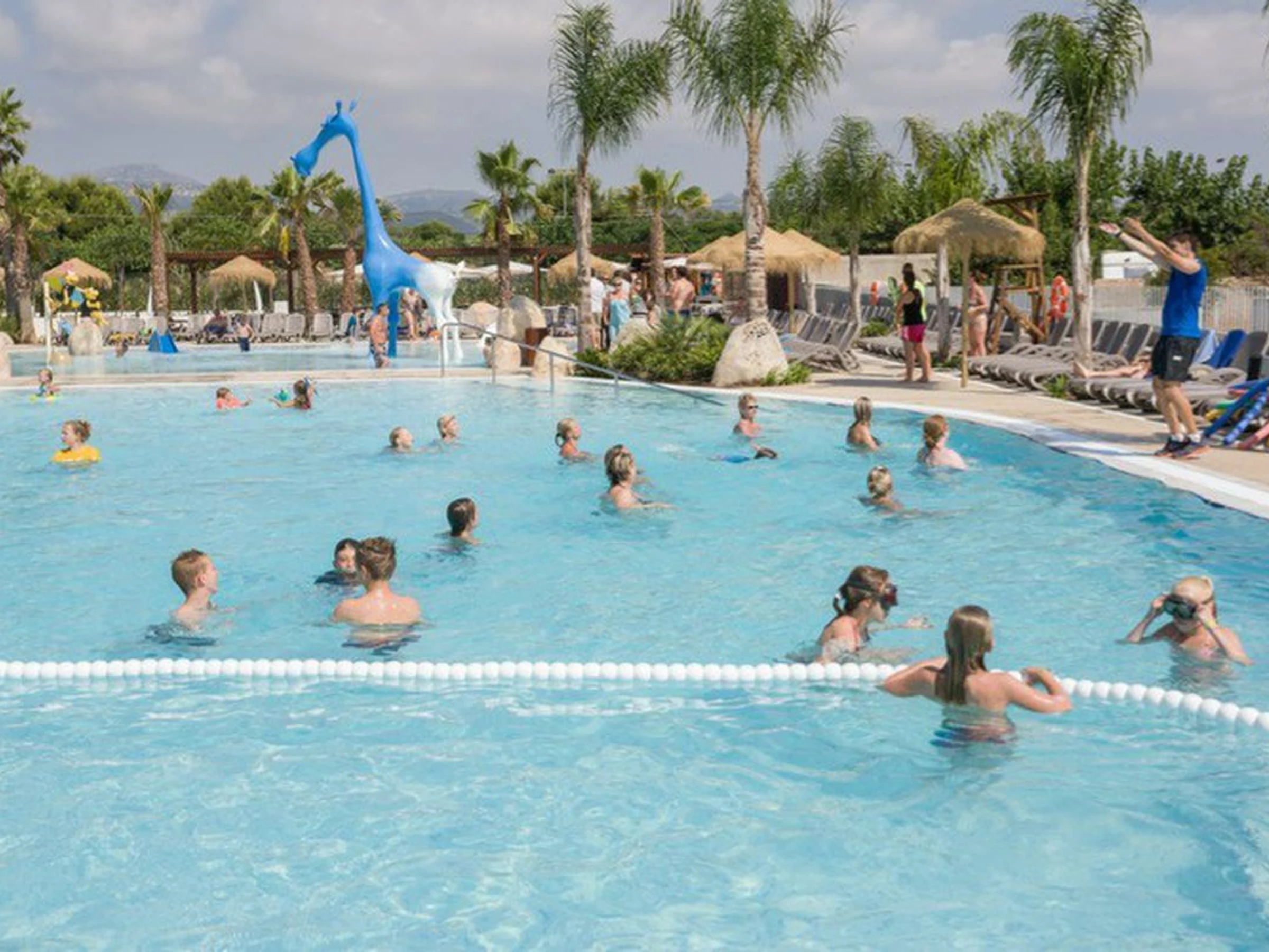 - Three swimming pools: a fun pool with water jets for those over 16; A swimming pool with a triple water slide, suitable for all ages, and a fantastic children's pool with a maximum depth of 0.50 m.