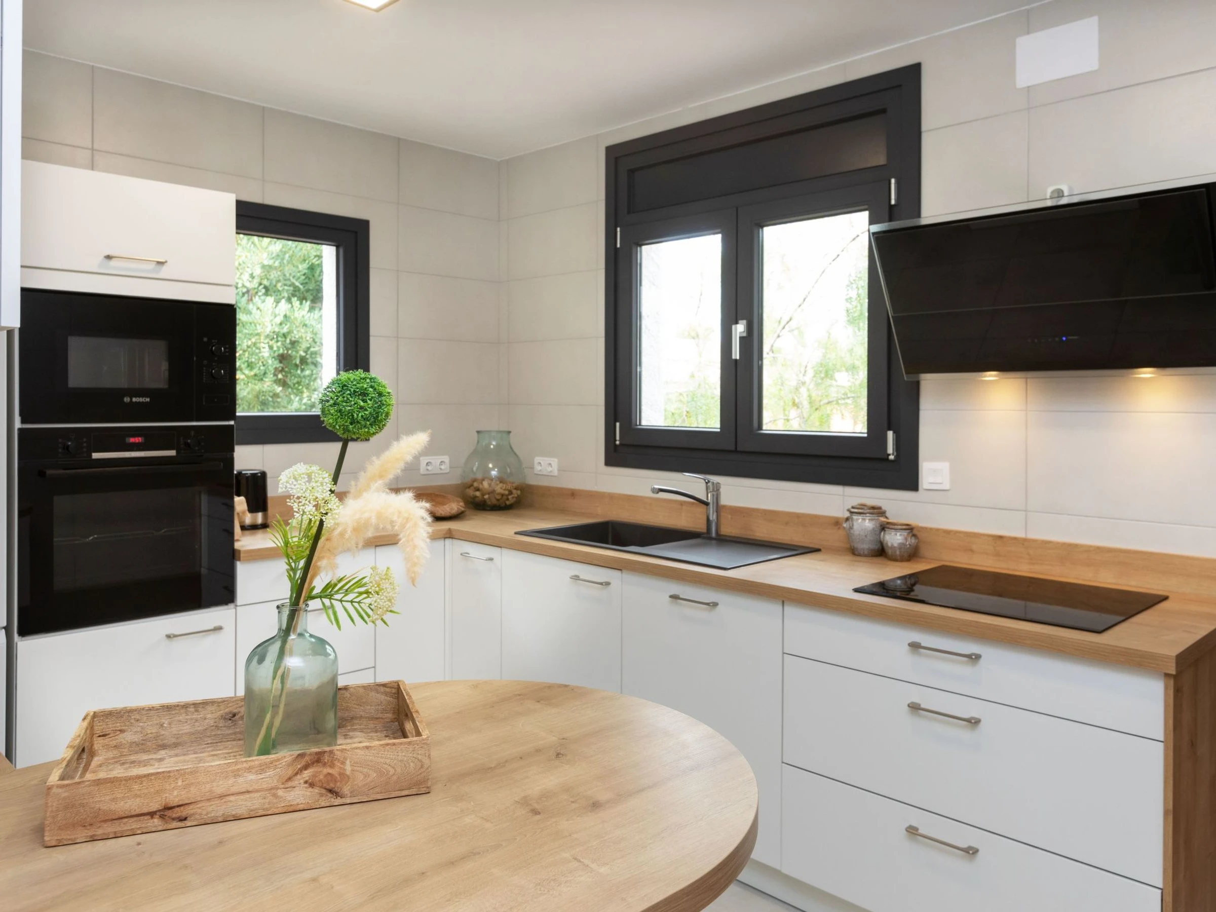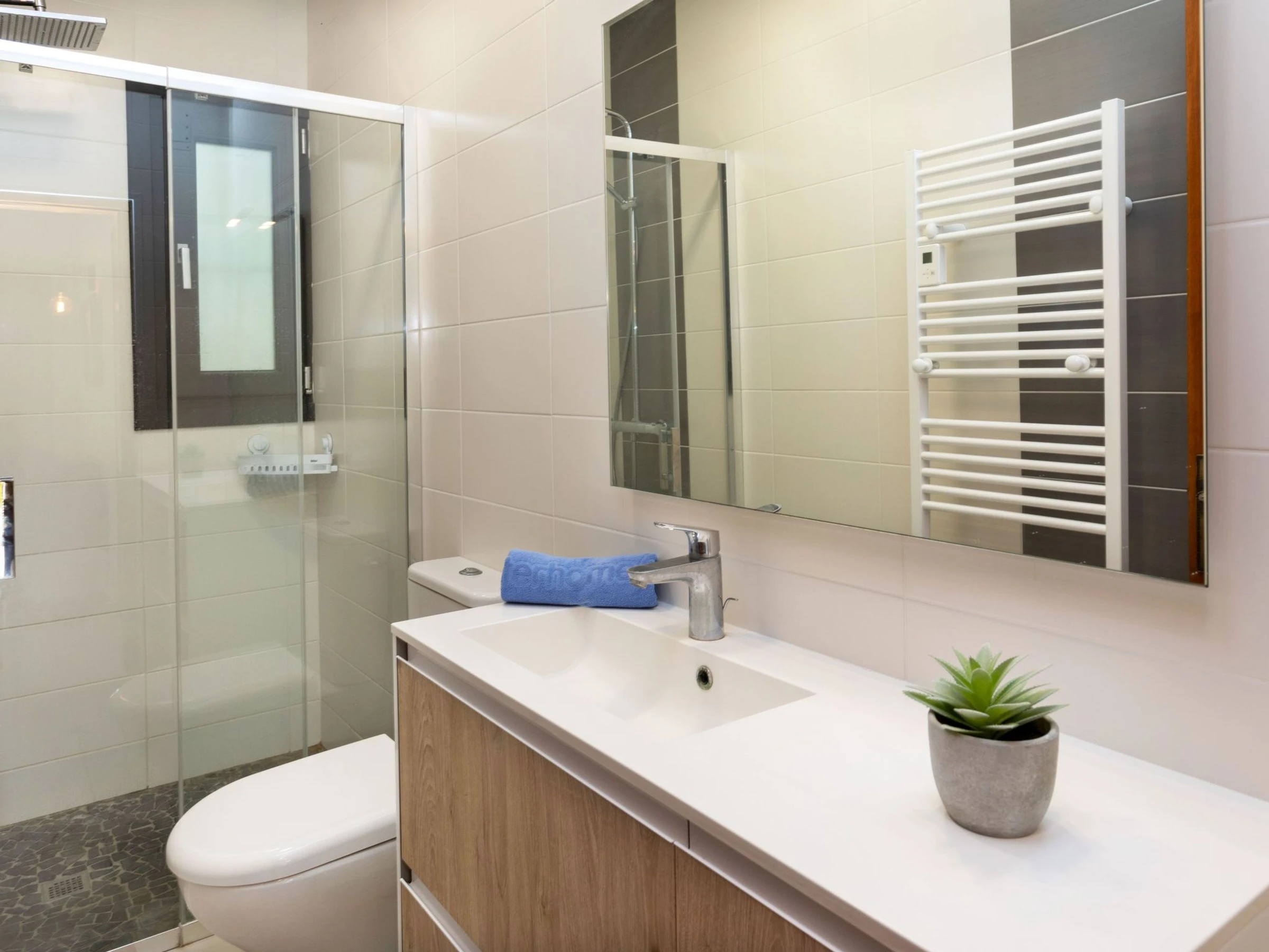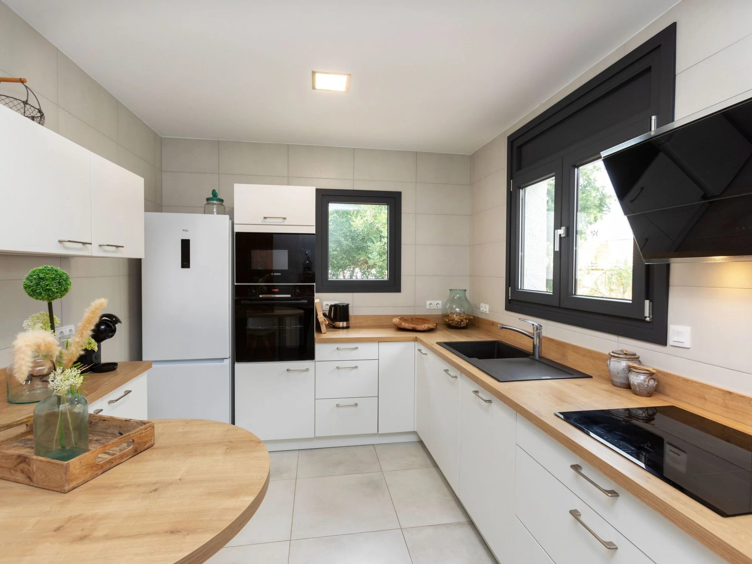 "Villa Gaia", 4-room villa 97 m2. Comfortable and cosy furnishings: living/dining room with dining table, satellite TV and air conditioning. Exit to the patio. 1 room with 1 french bed (135 cm), air conditioning. 2 rooms, each room with 2 beds (90 cm), air conditioning. Kitchen (oven, dishwasher, 3 induction hot plates, kettle, microwave, electric coffee machine, Capsules for coffee machine (Dolce gusto) extra). 2 showers/WC. (120 litres). No heating option. Large terrace, garden. Terrace furniture, barbecue, covered balcony. Facilities: washing machine, iron, hair dryer. Internet (WiFi, free). Parking at the house. Please note: non-smoking house. TV only FR. [hidden] // Reg. Nr.: ESFCTU00004303200000887300000000000000000[hidden]1