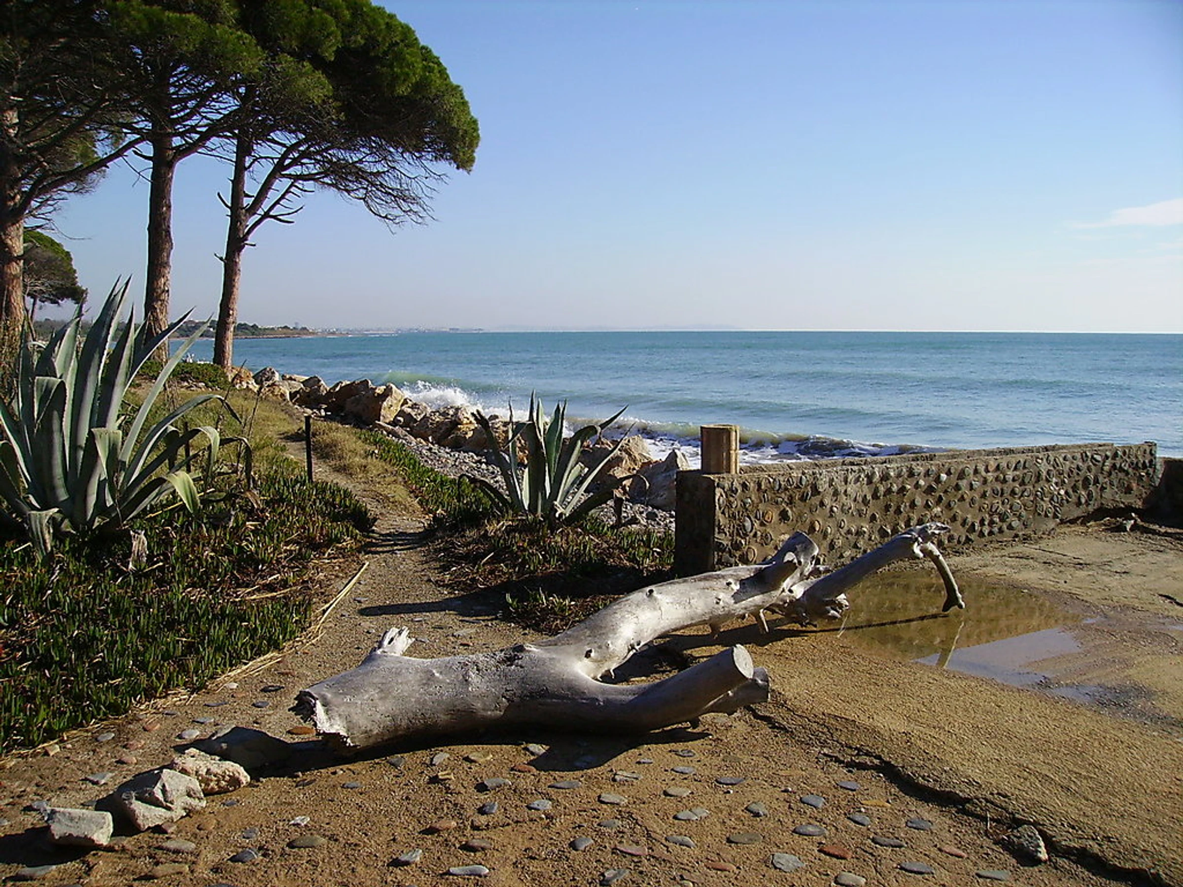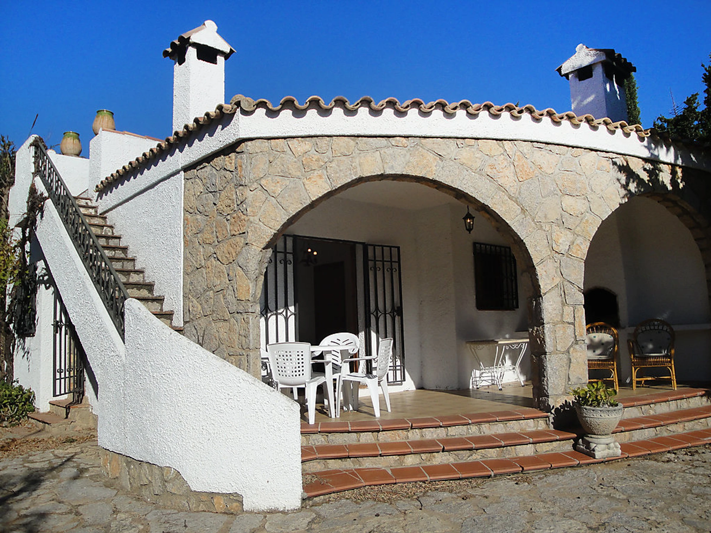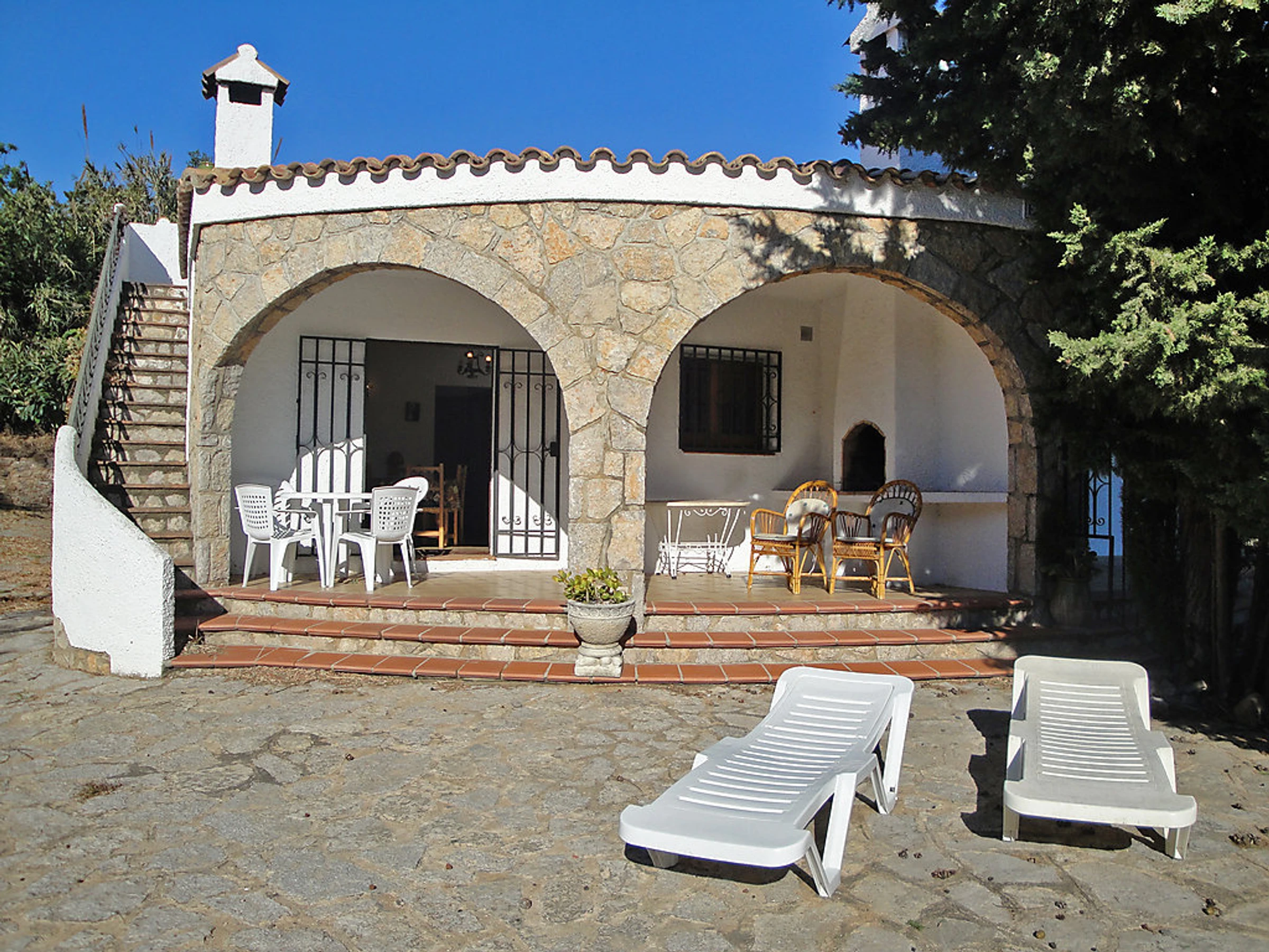 Finca Can Viret 6 km from Miami Platja: Simple semi-detached house "Mont-Roig Bahia 01". Outside the resort, in the district Mont-Roig Badía, in a secluded, quiet, sunny position, 100 m from the sea, 100 m from the beach, south facing position. For shared use: property 15'000 m2, plants and trees. Outdoor shower, tennis. Private: arbour (18 m2), garden furniture, barbecue. Motor access to the house (550 m via unmade road). Grocery 2 km, restaurant 2 km, railway station "Cambrils" 5 km, sandy beach 120 m. Nearby attractions: Parque Portaventura 20 km, parque acuático Aquopolis 23 km, parque Natural del Delta del Ebro 53 km. Please note: car recommended. Groups of teenagers on request only. Covered parking spaces for 2 cars for shared use with "Nispero II.".