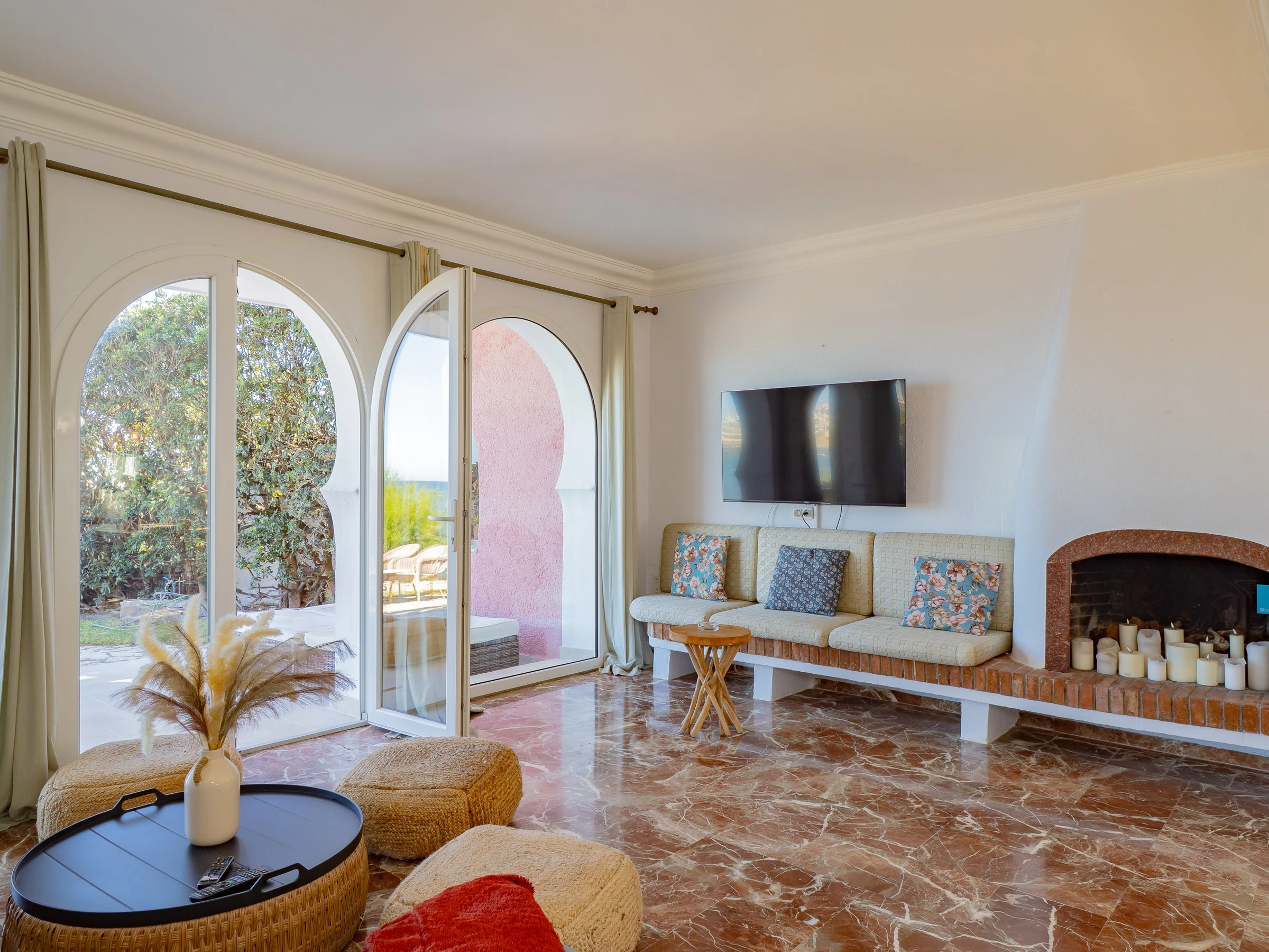 Discover this spectacular villa in Playa del Chaparral, perfect for a family holiday on the Costa del Sol. With direct access to the sea, a spacious 80 m² terrace and a private garden and pool with impressive views, this accommodation invites you to enjoy every moment surrounded by nature and comfort. The fenced plot offers space to park two vehicles, a highly valued luxury in the area.