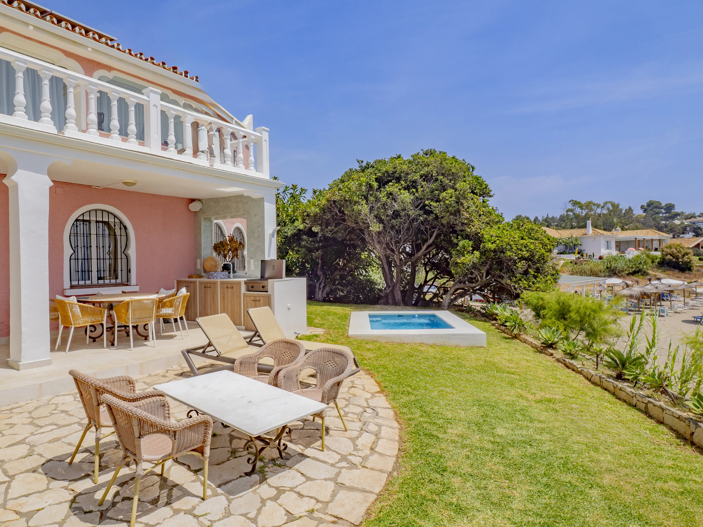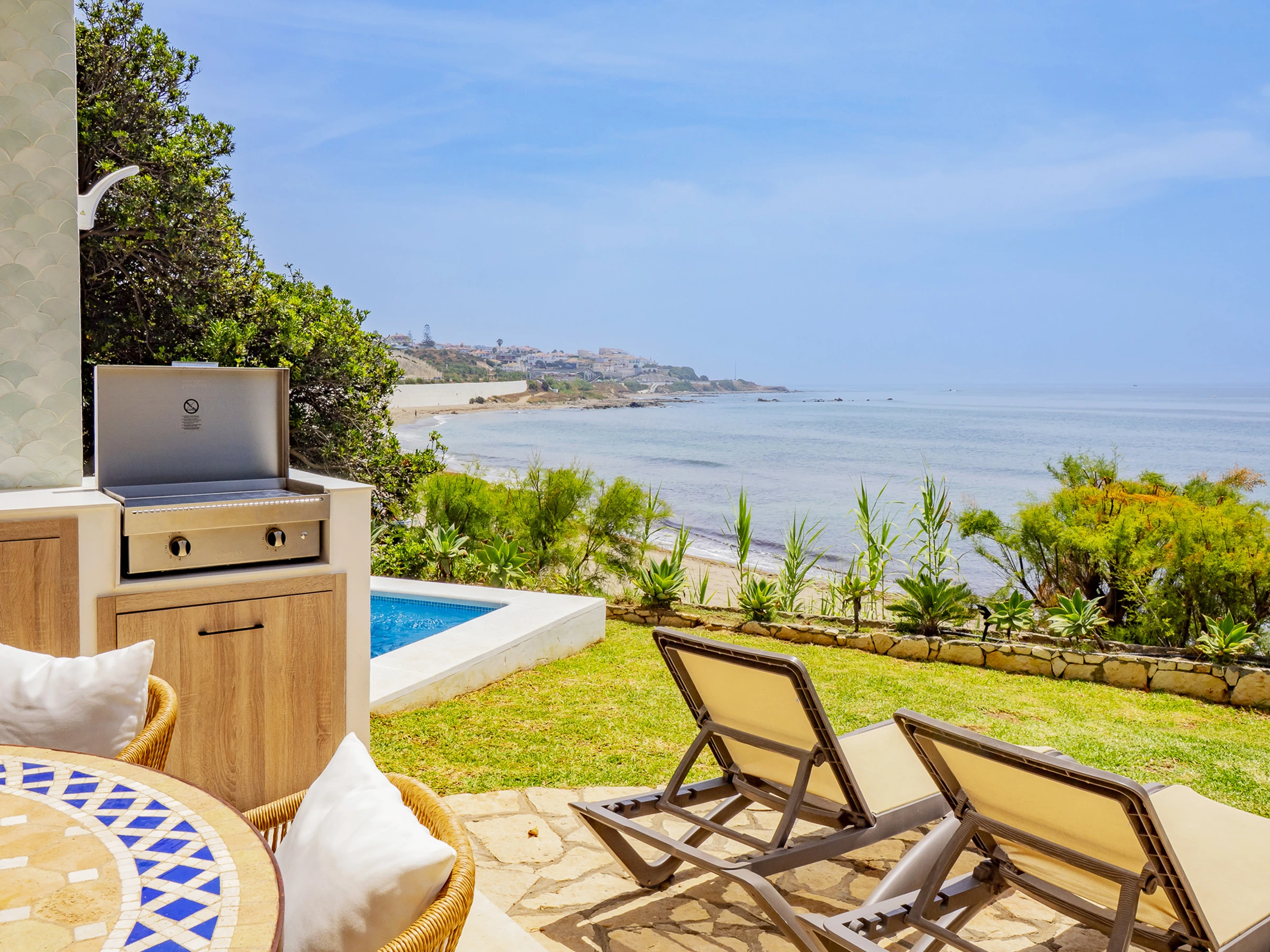 Holiday villa by the beach in Mijas Costa with sea views and private pool as well as direct beach access for an unforgettable family getaway 🌊🏡