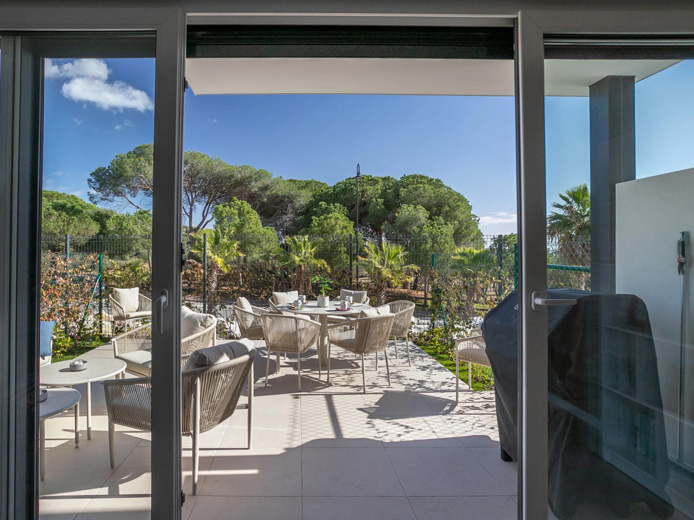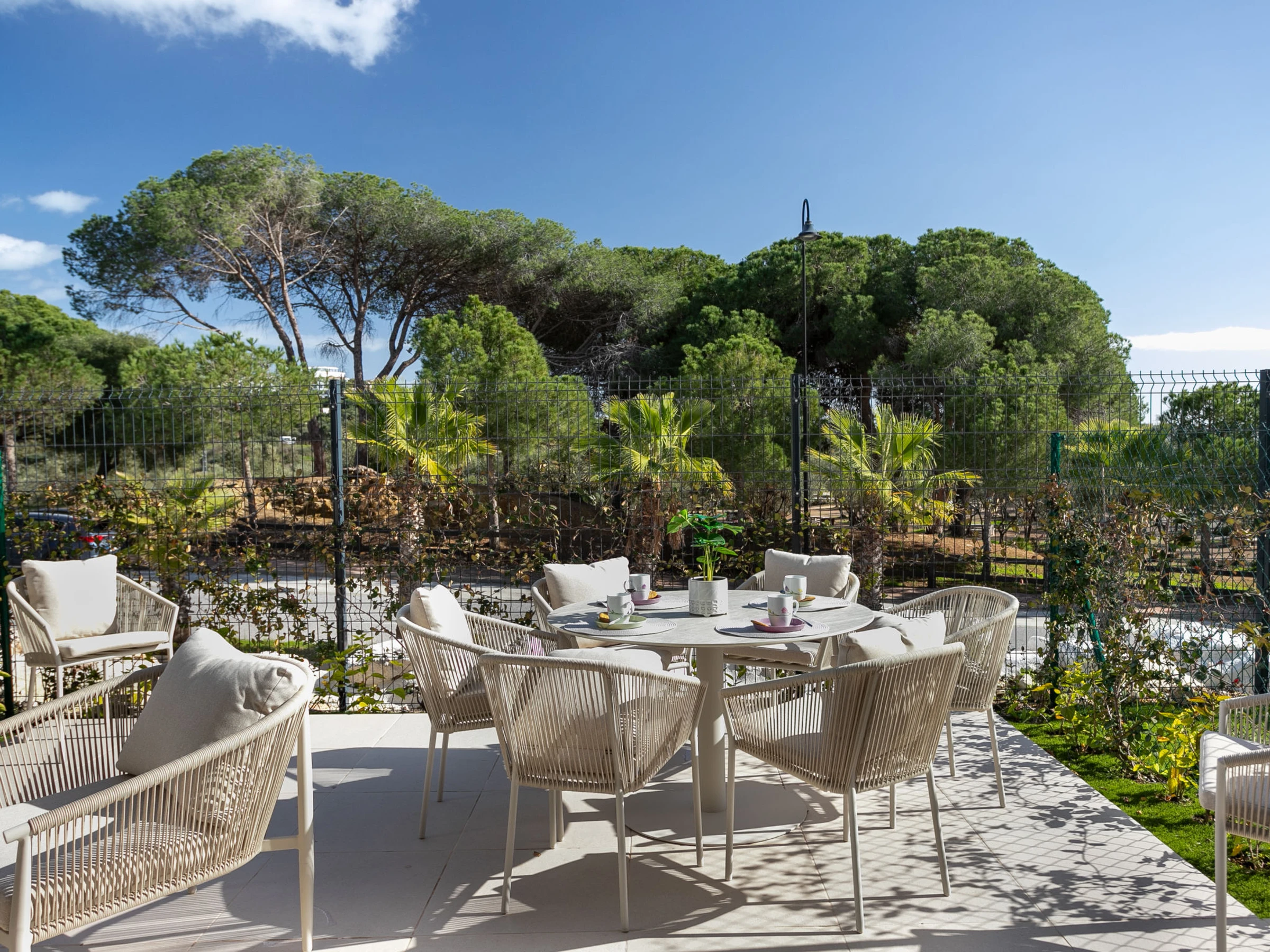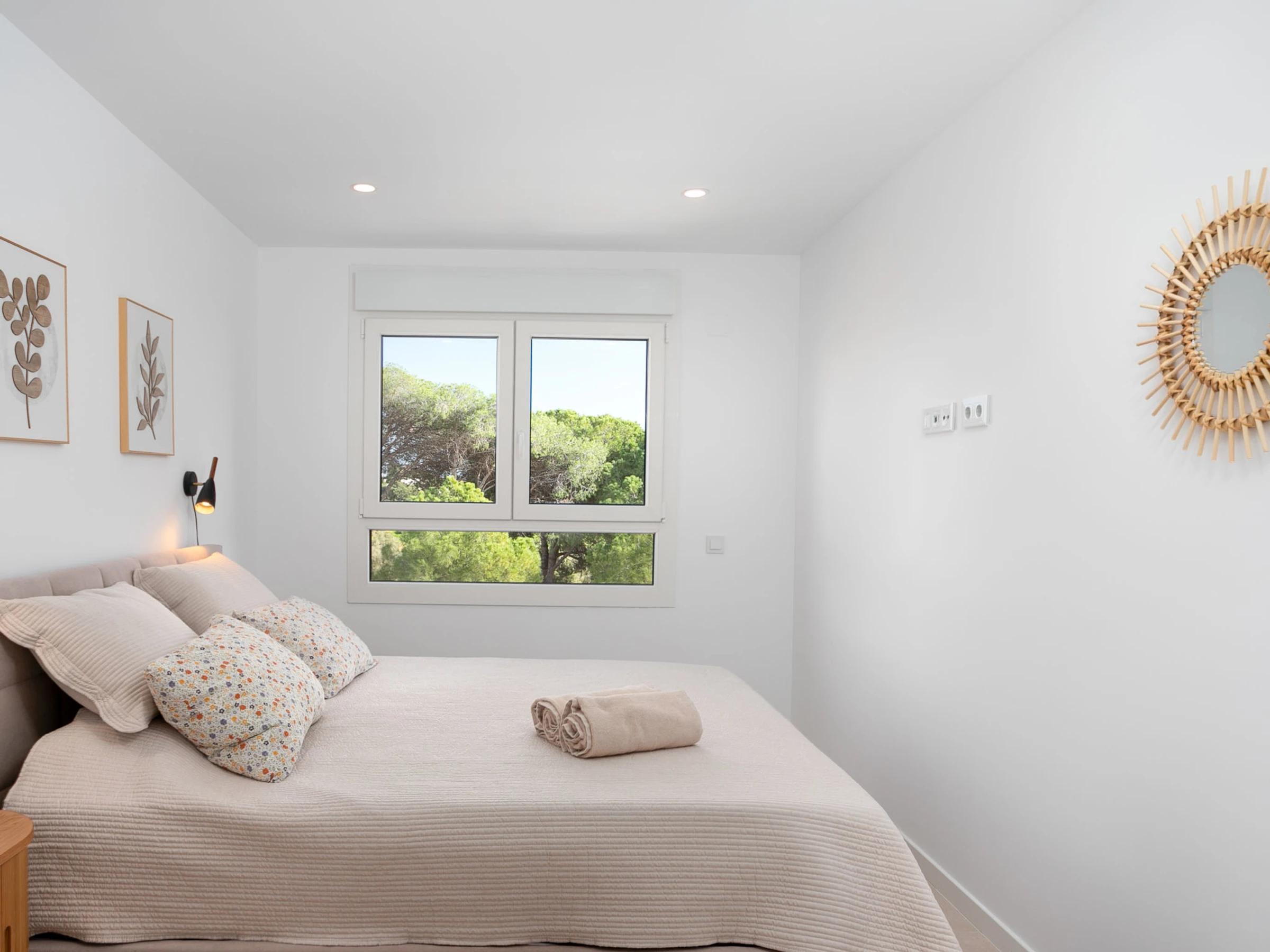 "Cala Serena Village", 5-room terraced house 120 m2, south facing position. Object suitable for 8 adults. Spacious and bright, very modern and cosy furnishings: living/dining room with bar, separate WC, TV, flat screen and air conditioning. Exit to the patio. Large, open kitchen (dishwasher, 3 ceramic glass hob hotplates, toaster, kettle, microwave, freezer, electric coffee machine, combination microwave). Air-conditioning, forced-air heating. Upper floor: 2 large rooms, each room with 1 french bed (1 x 160 cm, length 200 cm). 1 large room with 1 french bed (1 x 180 cm, length 200 cm), shower/WC. 1 room with 1 french bed (180 cm, length 200 cm). Shower/WC. Air-conditioning, forced-air heating. Large patio 28 m2. Terrace furniture, barbecue, deck chairs (4), sitting area. Very beautiful view of the sea and the forest. Facilities: washing machine, dryer, children's high chair, baby cot, hair dryer. Internet (WiFi, free). Computer (extra). Parking space n 21. E-charging station. Please note: non-smoking house. [hidden] // Reg. Nr.: ESFCTU0000290440009995490000000000000000[hidden]8