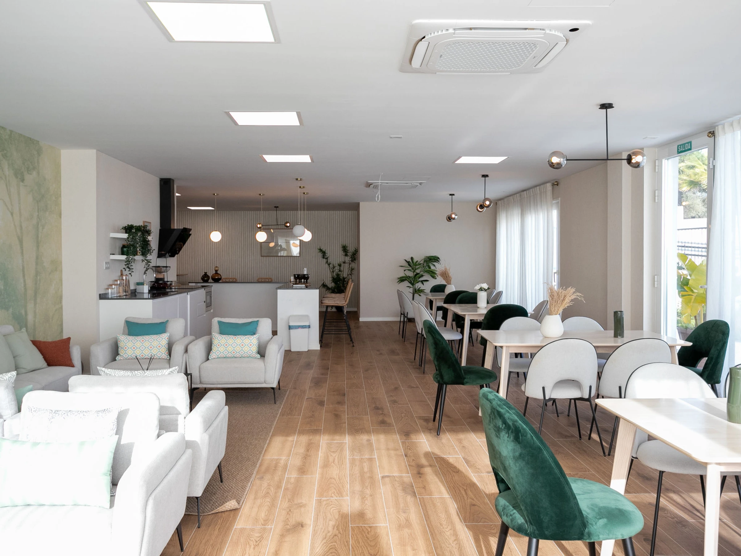 Large, very modern, very comfortable terraced house "Cala Serena Village", 2 storeys, built in 2025. 90 houses in the resort. In a quiet, sunny position residential area (villas), excellent location: right in the centre but still quiet, traffic calmed area, 1 km from the sea, 1 km from the beach. For shared use: terraced garden, swimming pool kidney-shaped (10 x 5 m, 5 m2, depth 180 cm, seasonal availability: [hidden] - [hidden] WC in the pool area. In the house: reception, lounge with TV, internet access, WiFi, sauna, fitness room, solarium, hamam, lift, air conditioning, washing machine, tumble dryer. Roofed, parking at the house. Shop 200 m, supermarket 300 m, shopping centre 7 km, bus stop 200 m.
