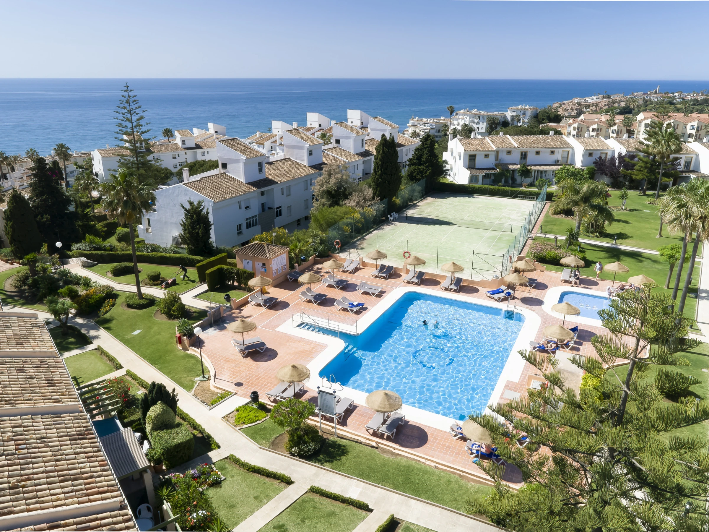 Lovely bright apartment situated in Mijas Costa, very close to the beach and with large sunny terrace. Fully equipped, with independent kitchen in a holiday complex with all kind of facilities, children's playground, tennis court, heating, air conditioning, children's pool, outdoor parking in the same house, 1 TV, satellite TV (Languages: Spanish, English, German, French). High speed wifi.