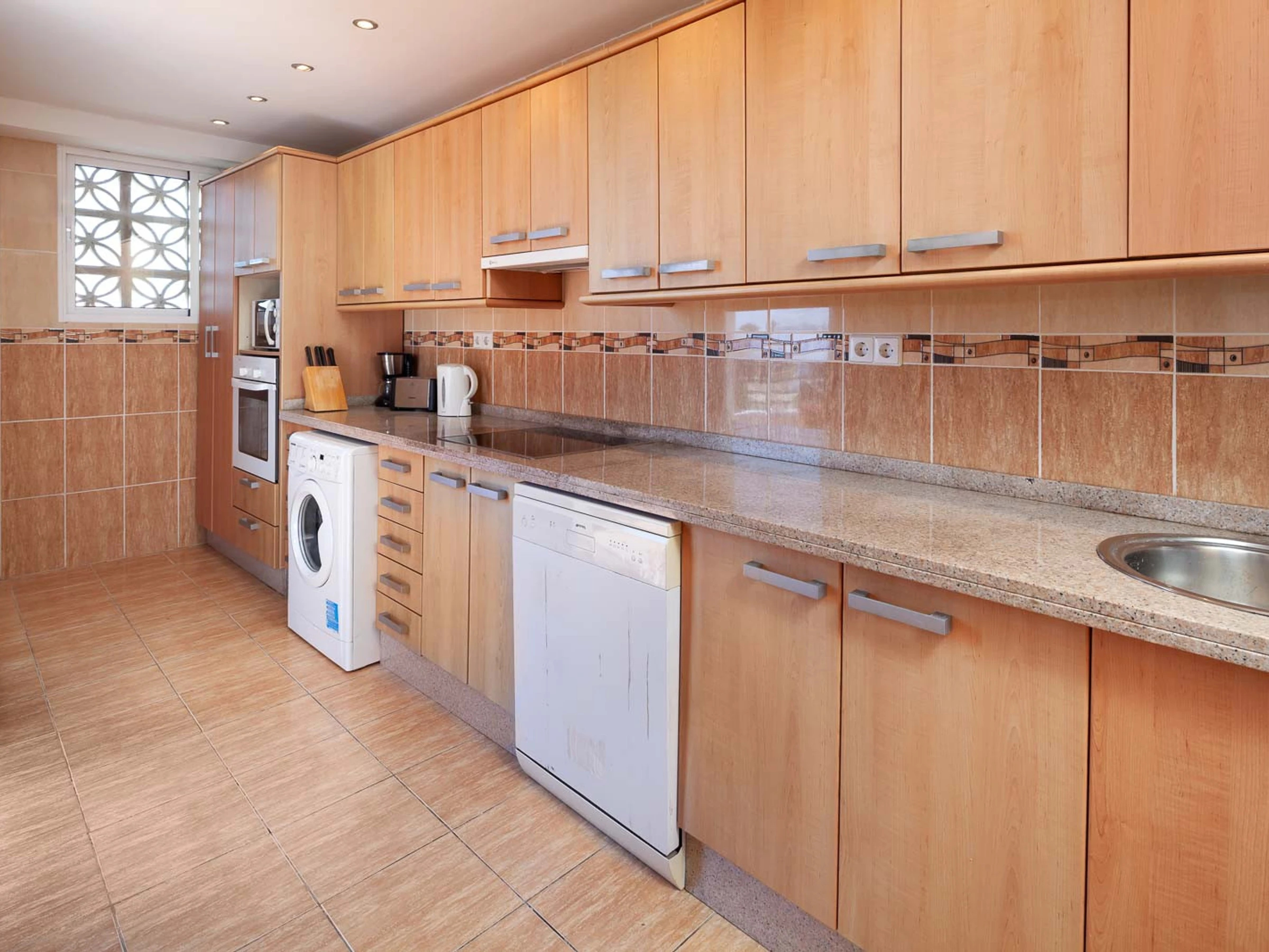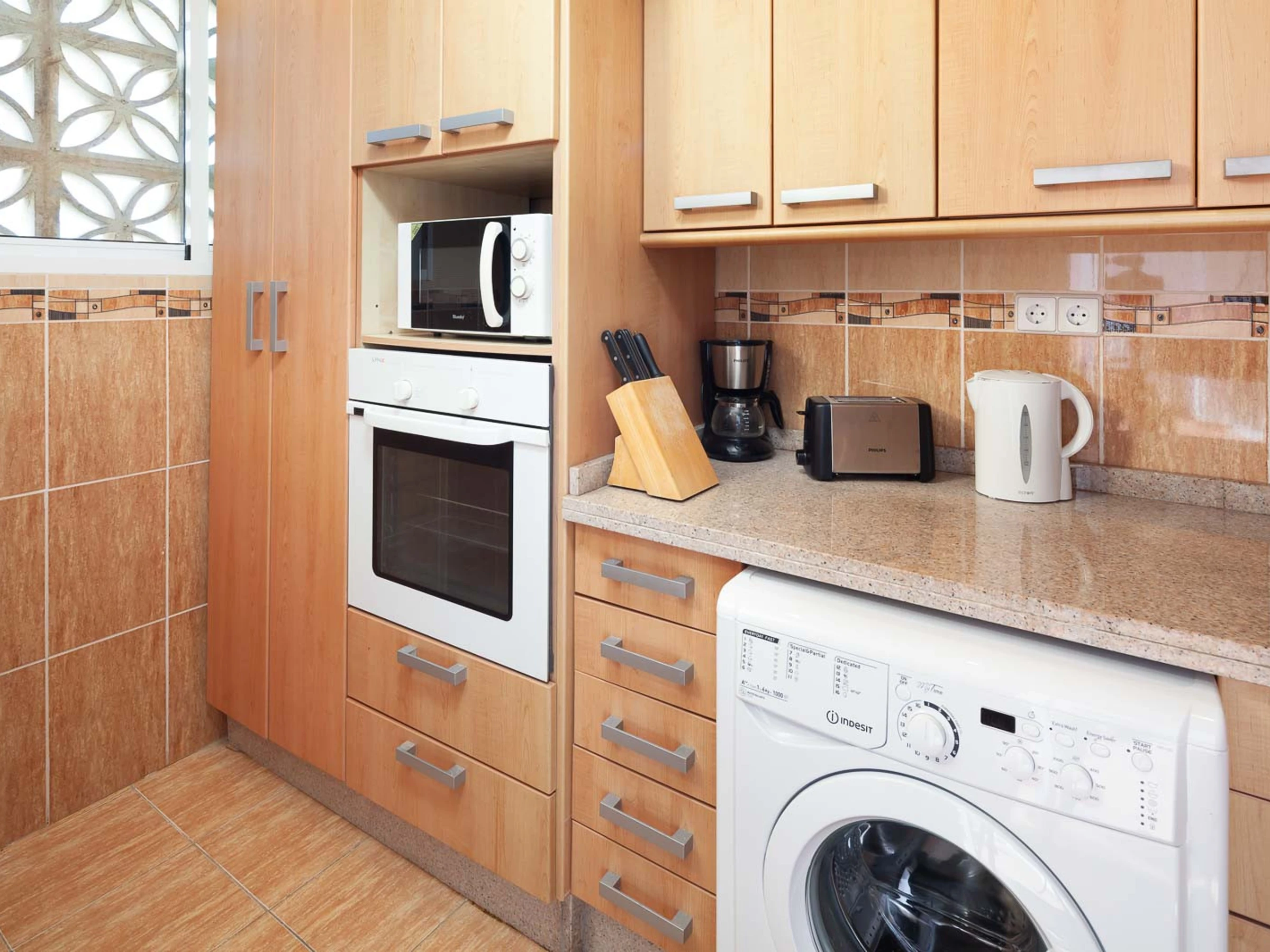 Discover your new home in this charming one-bedroom flat on the third floor, with stunning views of the pool! This flat offers a warm and comfortable atmosphere, perfect for relaxing. Located on the third floor, you will enjoy unobstructed views of the pool, creating a peaceful and relaxing atmosphere. The flat has been tastefully decorated, offering a cozy and comfortable space that will make you feel at home from the very first moment. A large terrace allows plenty of natural light to flood in, enhancing the warmth of the flat and providing a feeling of spaciousness. Equipped with modern, high quality appliances, it ensures that all your daily needs are met with efficiency and style.