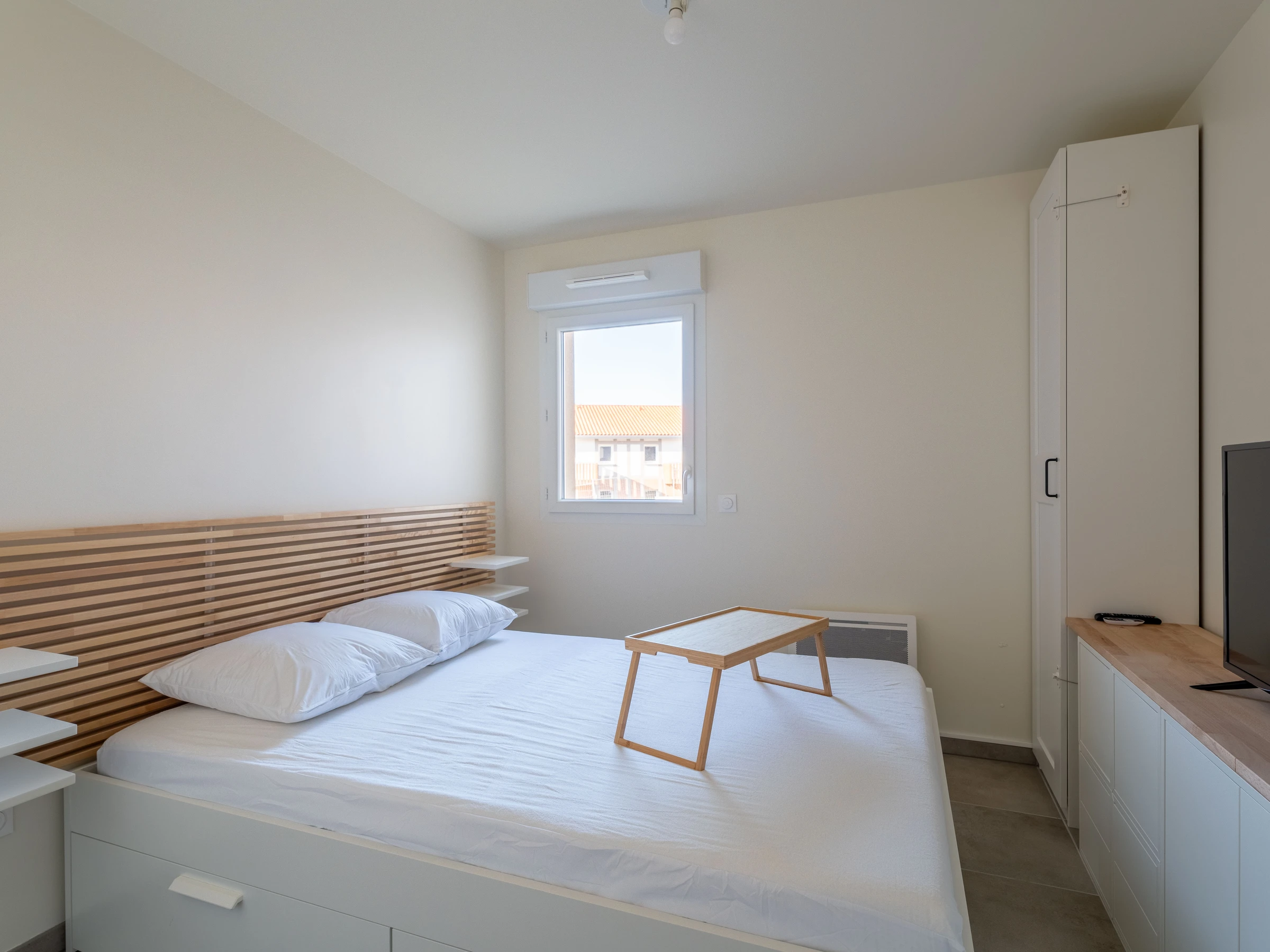 The master bedroom offers a 140 cm double bed, as well as a television.