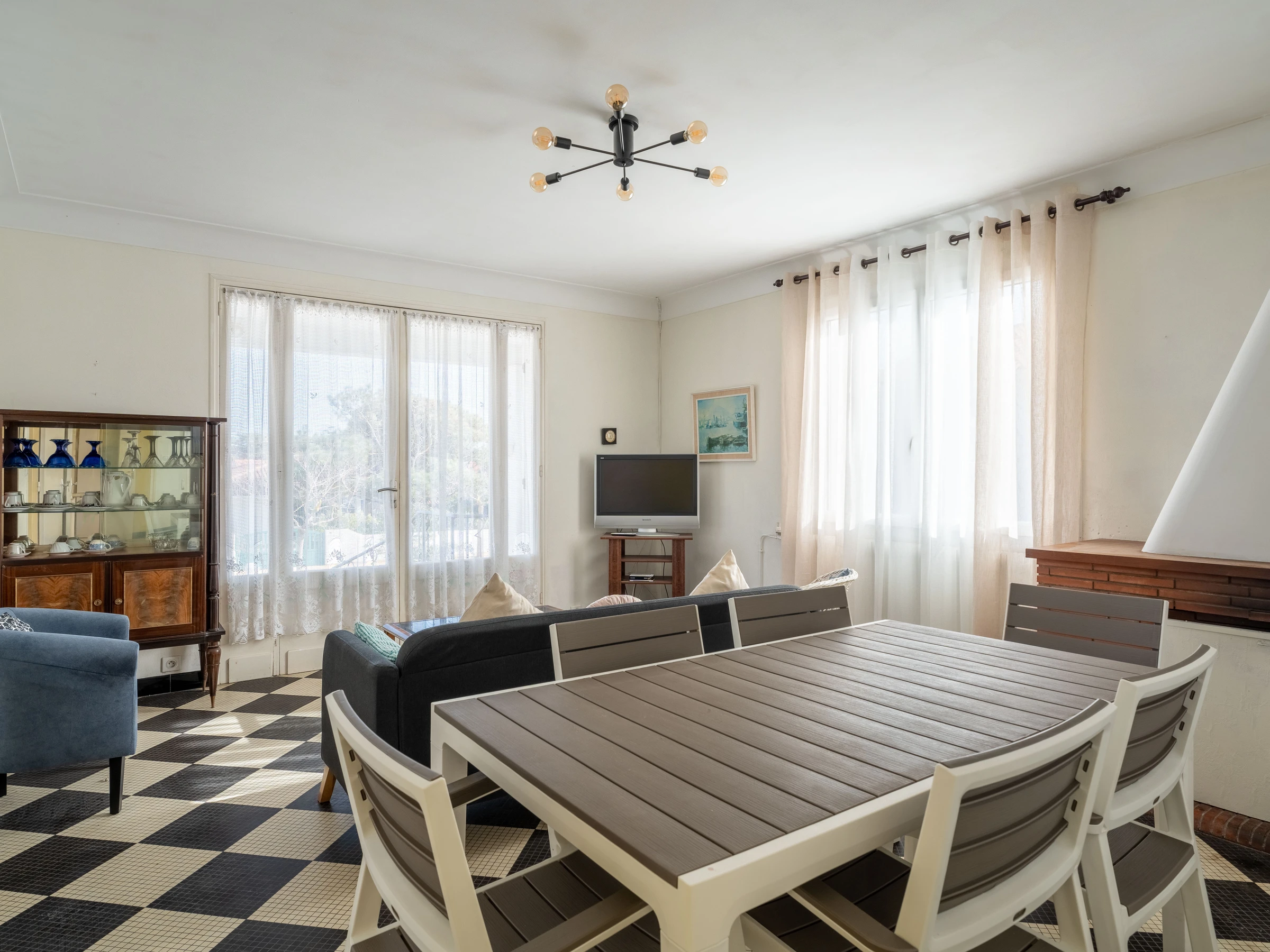 The house features a living/dining room with a television, and a spacious, separate, fully equipped kitchen (refrigerator, oven, microwave, 3-burner induction cooktop, dishwasher, washing machine, filter coffee maker, kettle, toaster, etc.). You will also find a bedroom with two 90cm beds, as well as two additional bedrooms with 140cm beds. The bathroom has a shower (the bathtub shown in the photos is no longer available) and a separate toilet for added comfort.