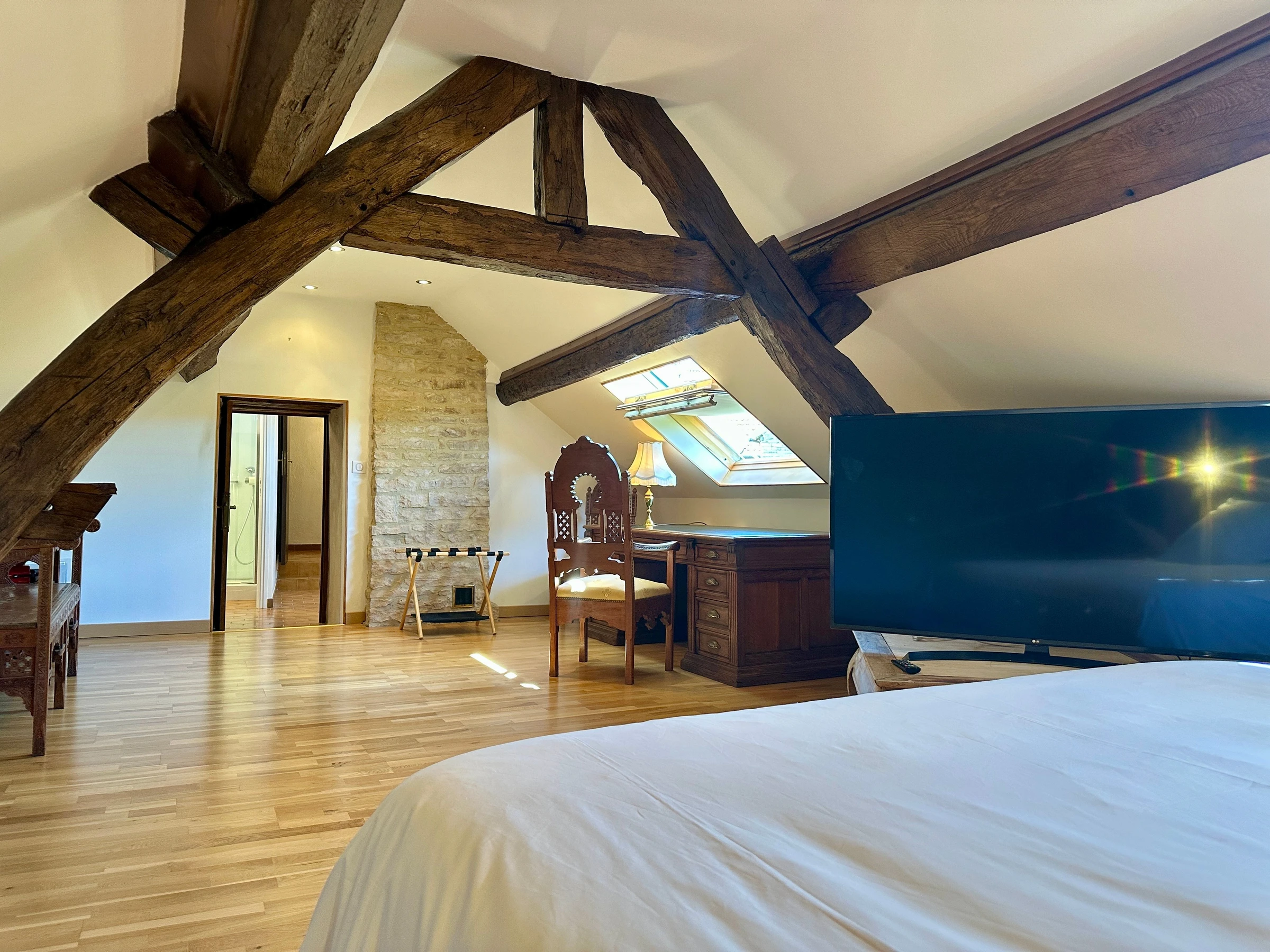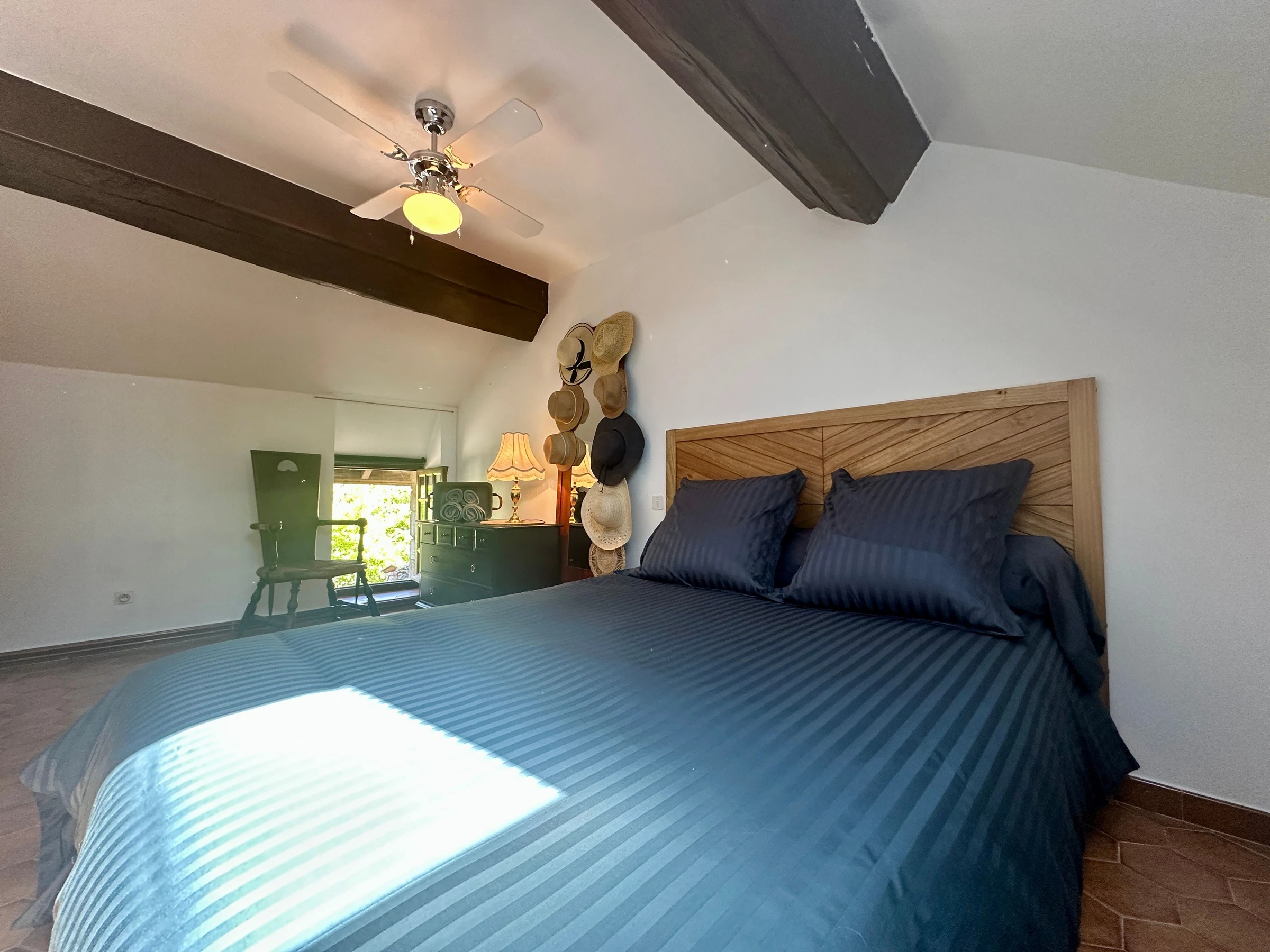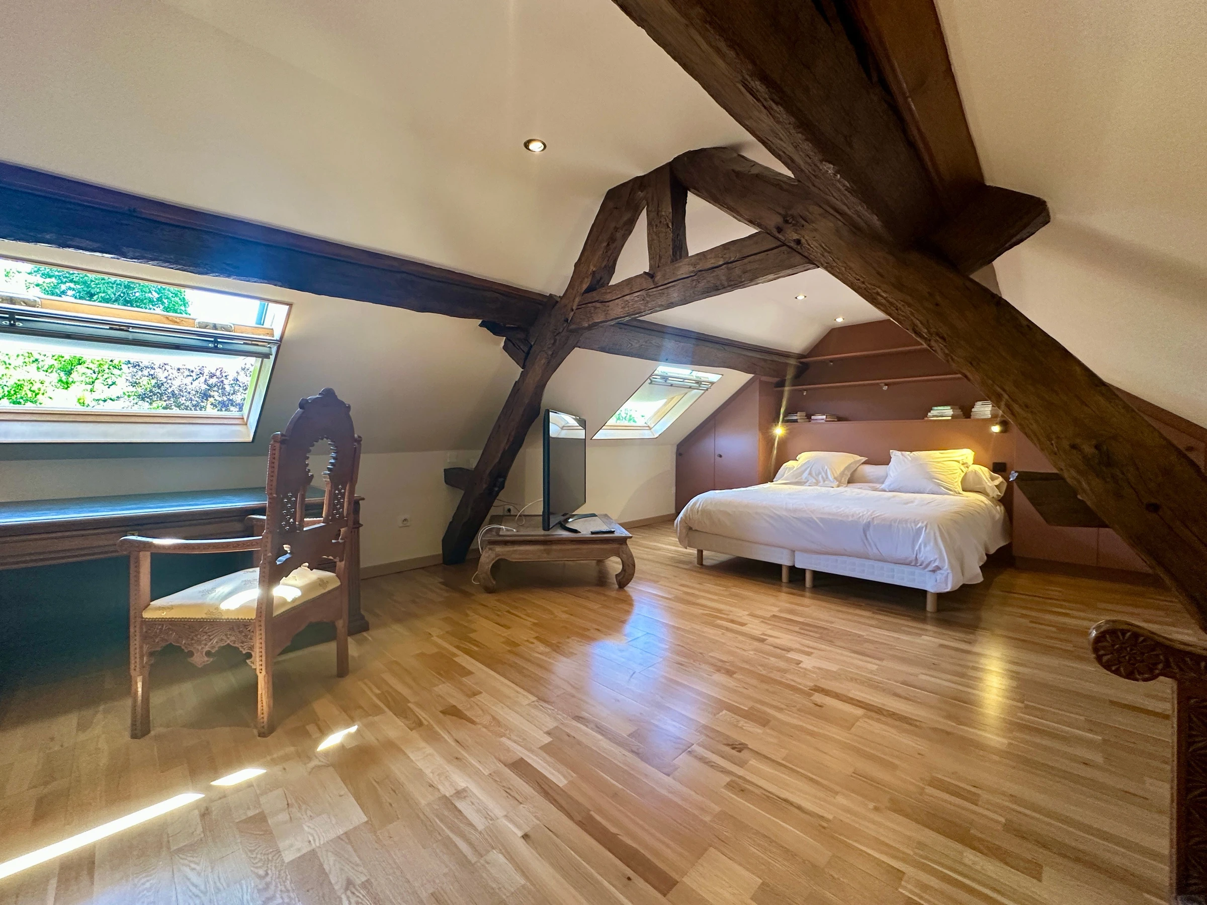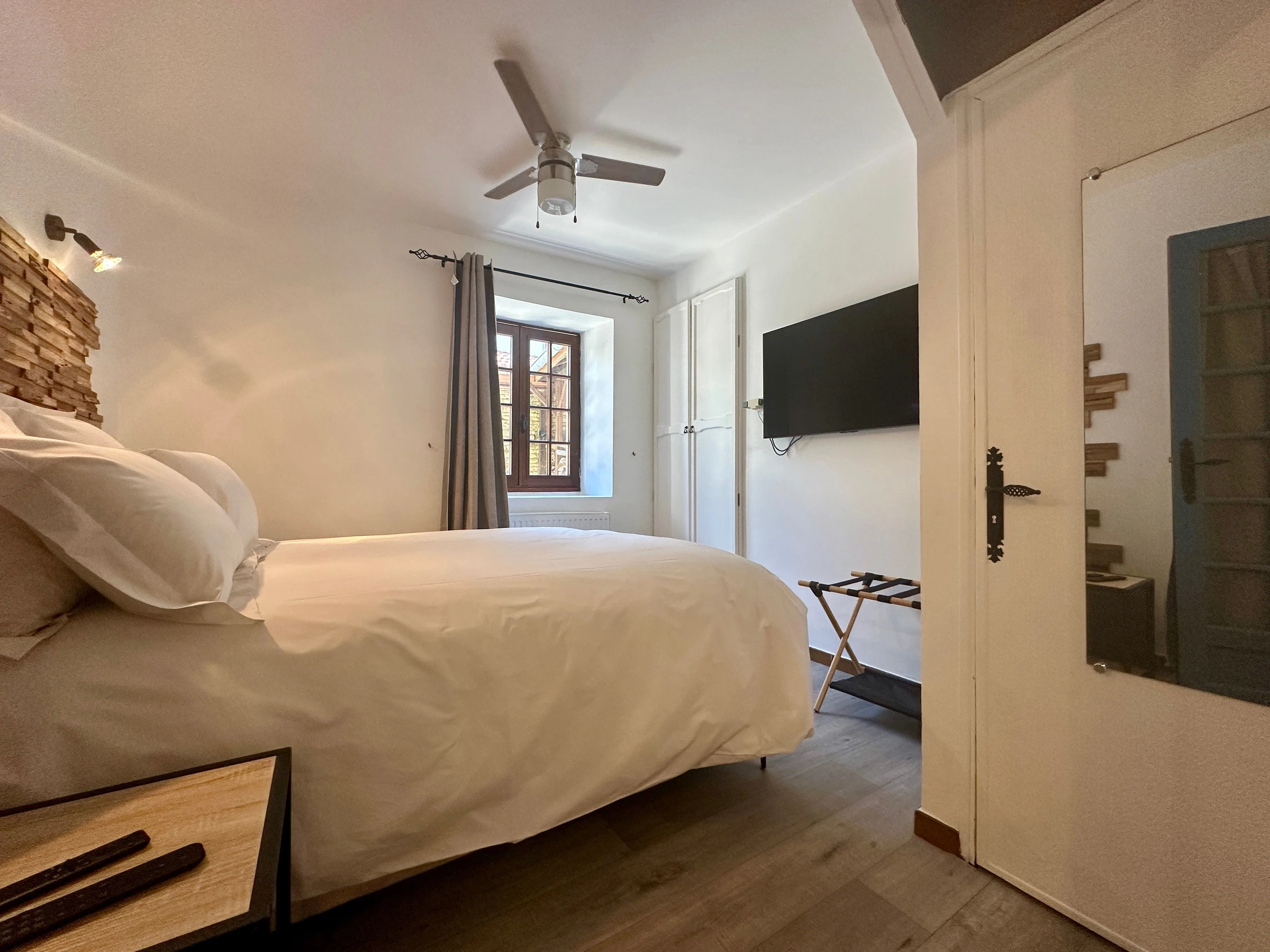 Upstairs, two bedrooms are available, one with a 140x200cm bed, the other with two 90x200cm mattresses forming a king-size bed. They feature a flat-screen TV (NETFLIX subscription), a minibar, a courtesy tray, and a walk-in closet. There is a shower room with a toilet.