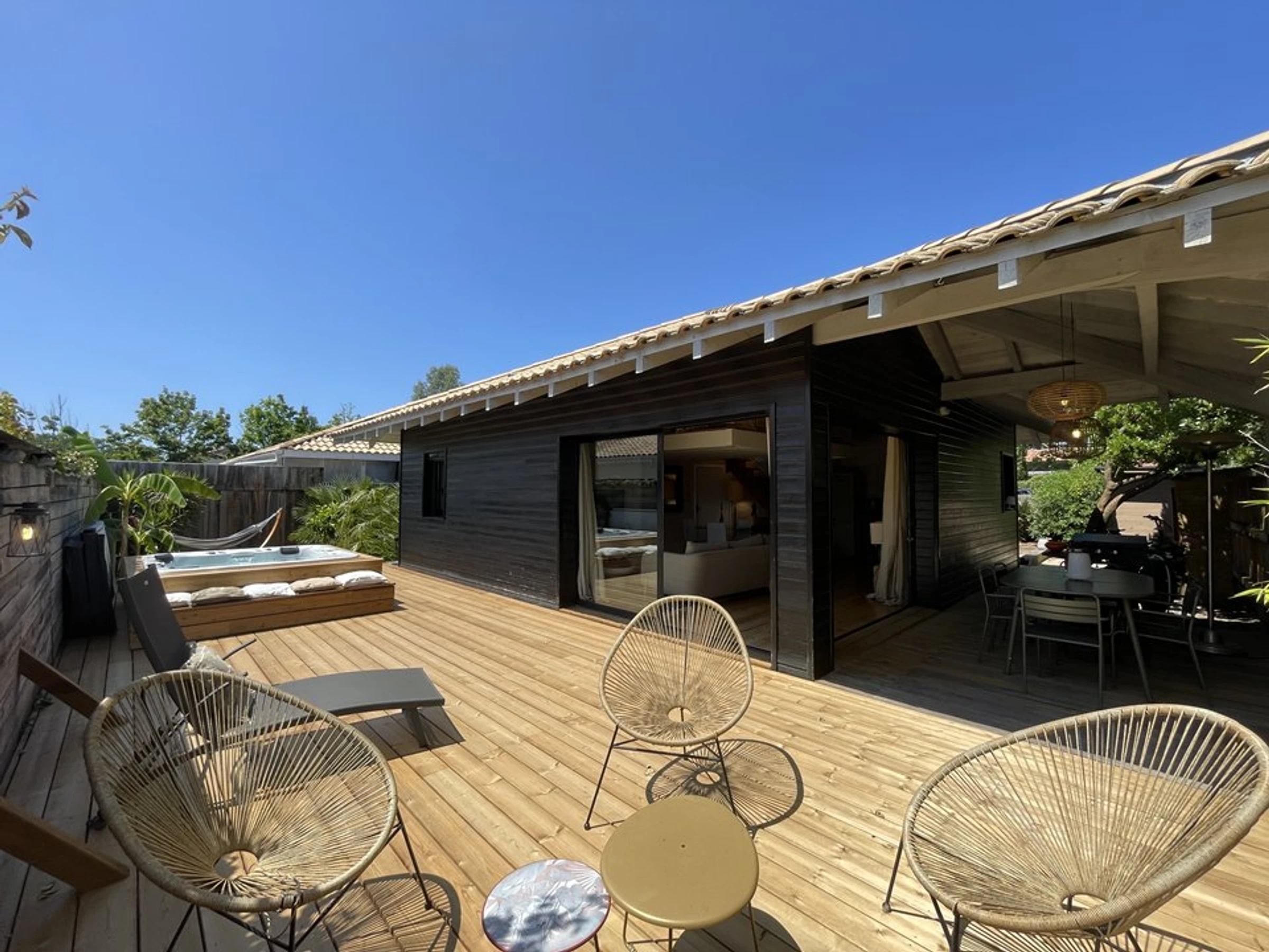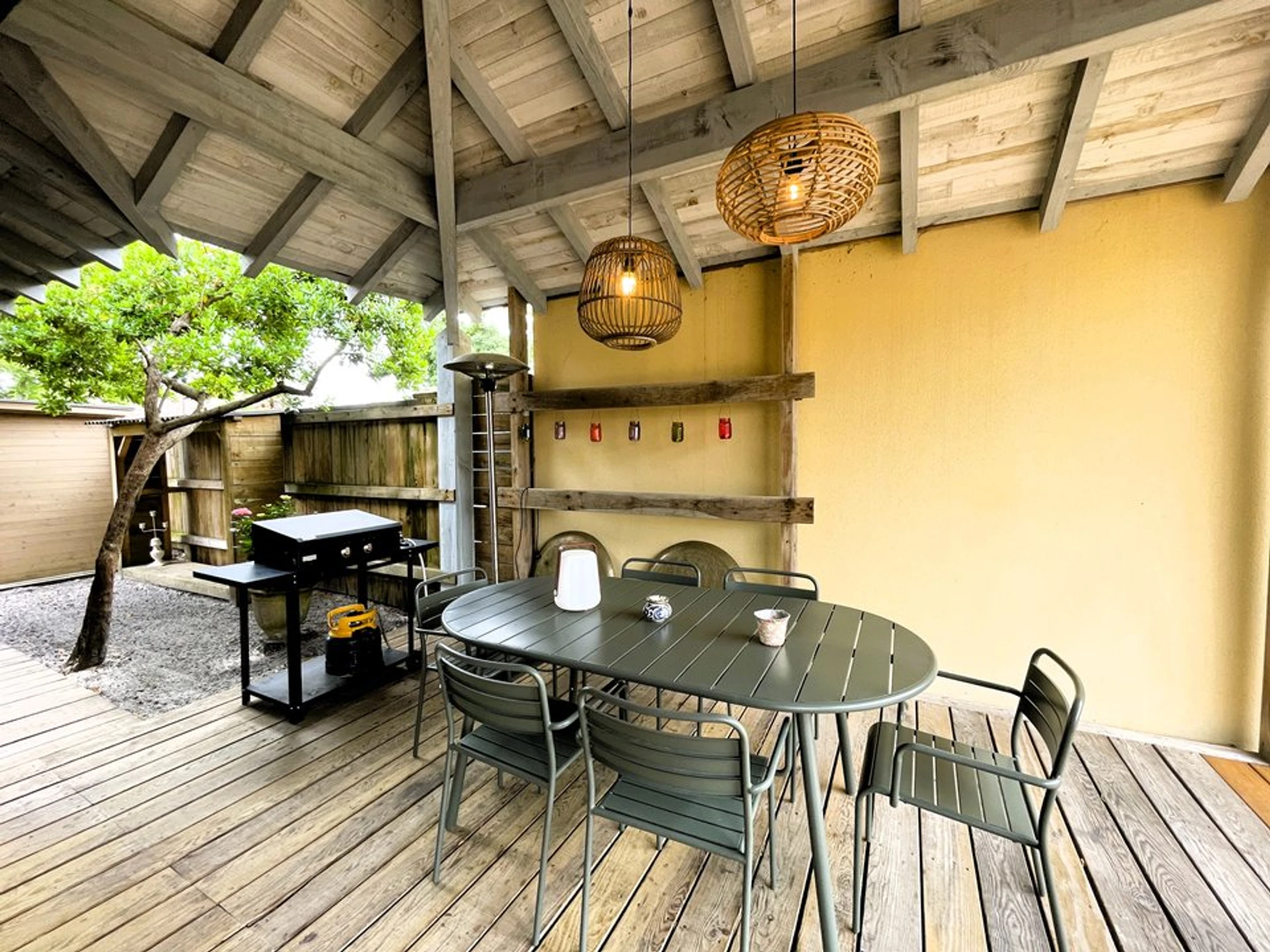 Charcoal BBQ, gas plancha, deckchairs, summer lounge.
