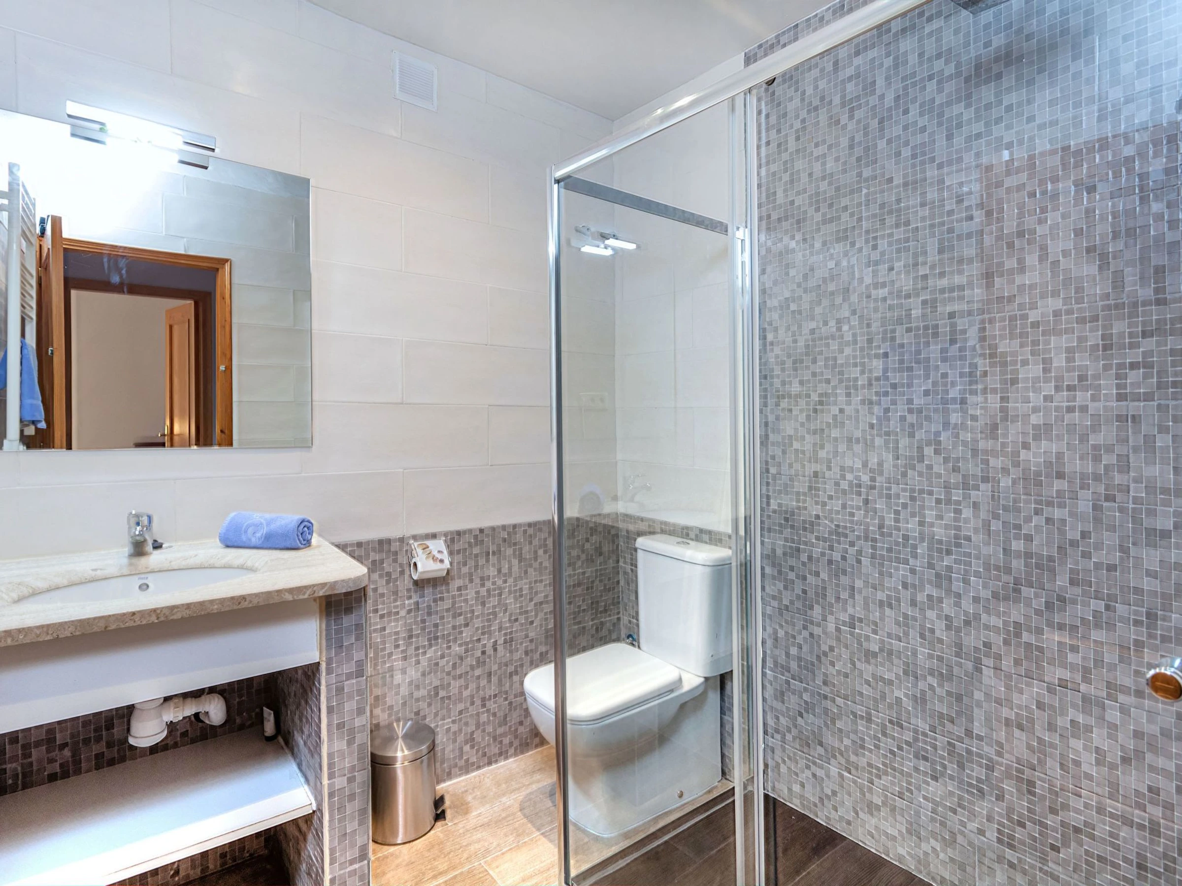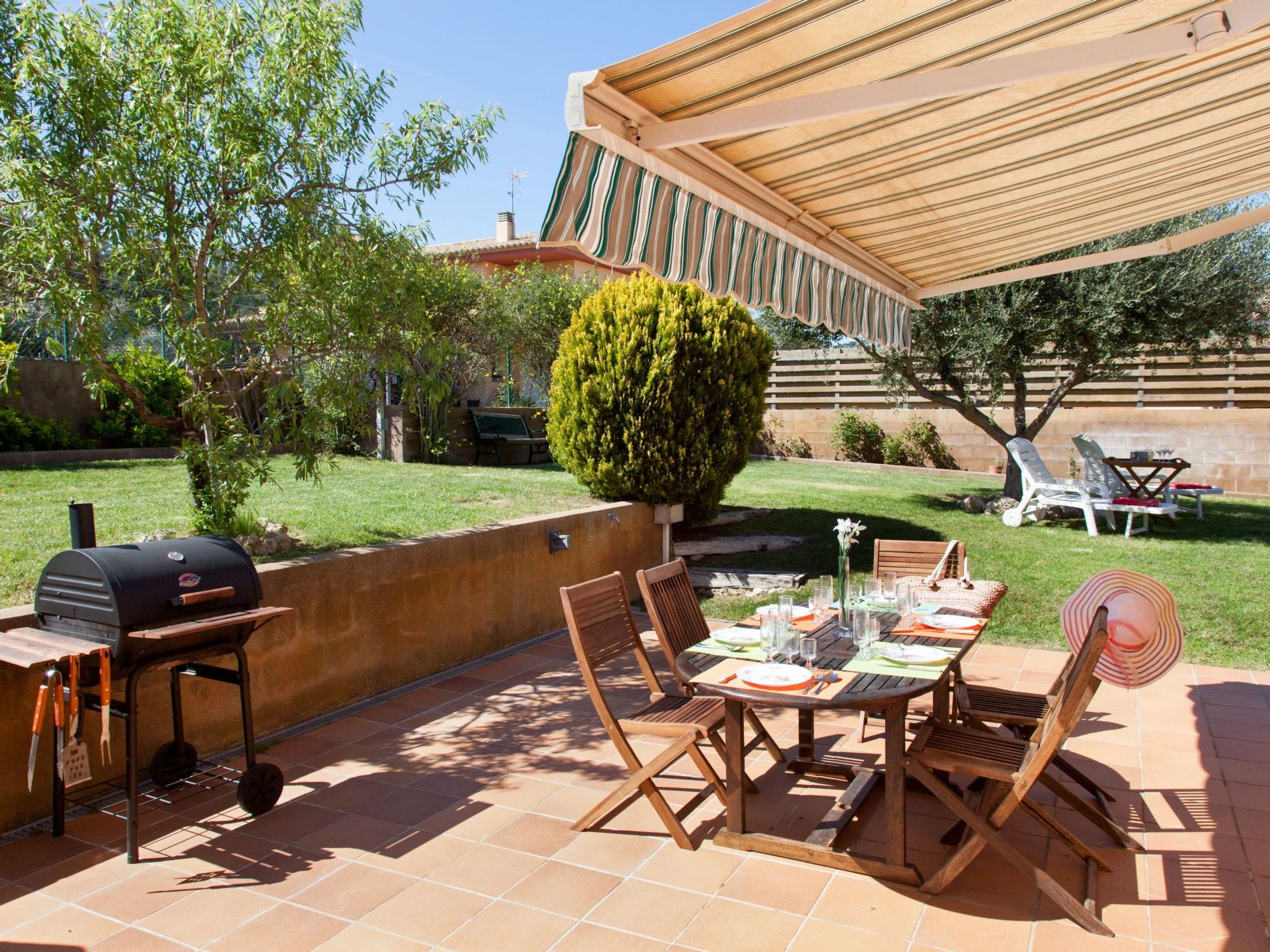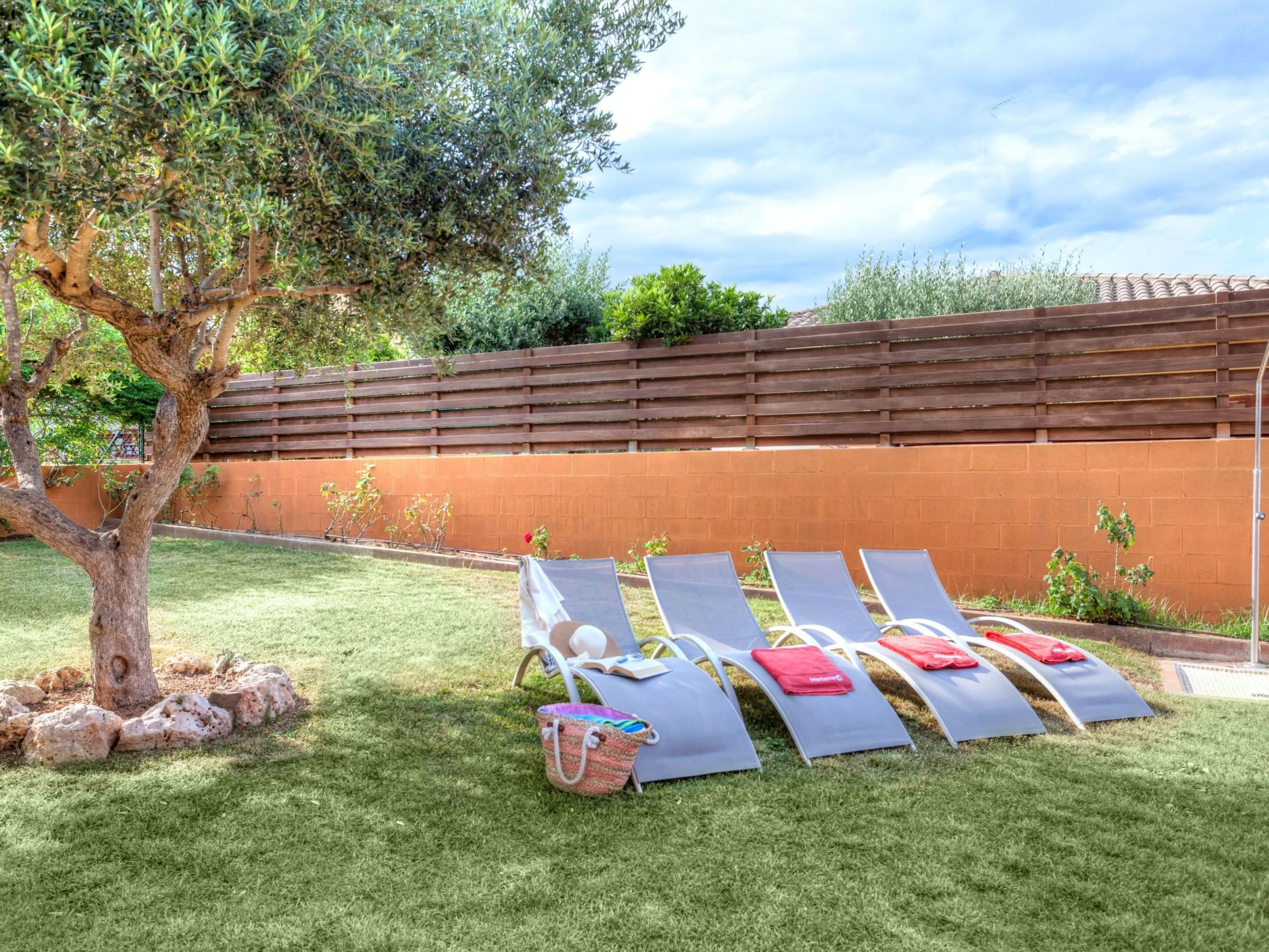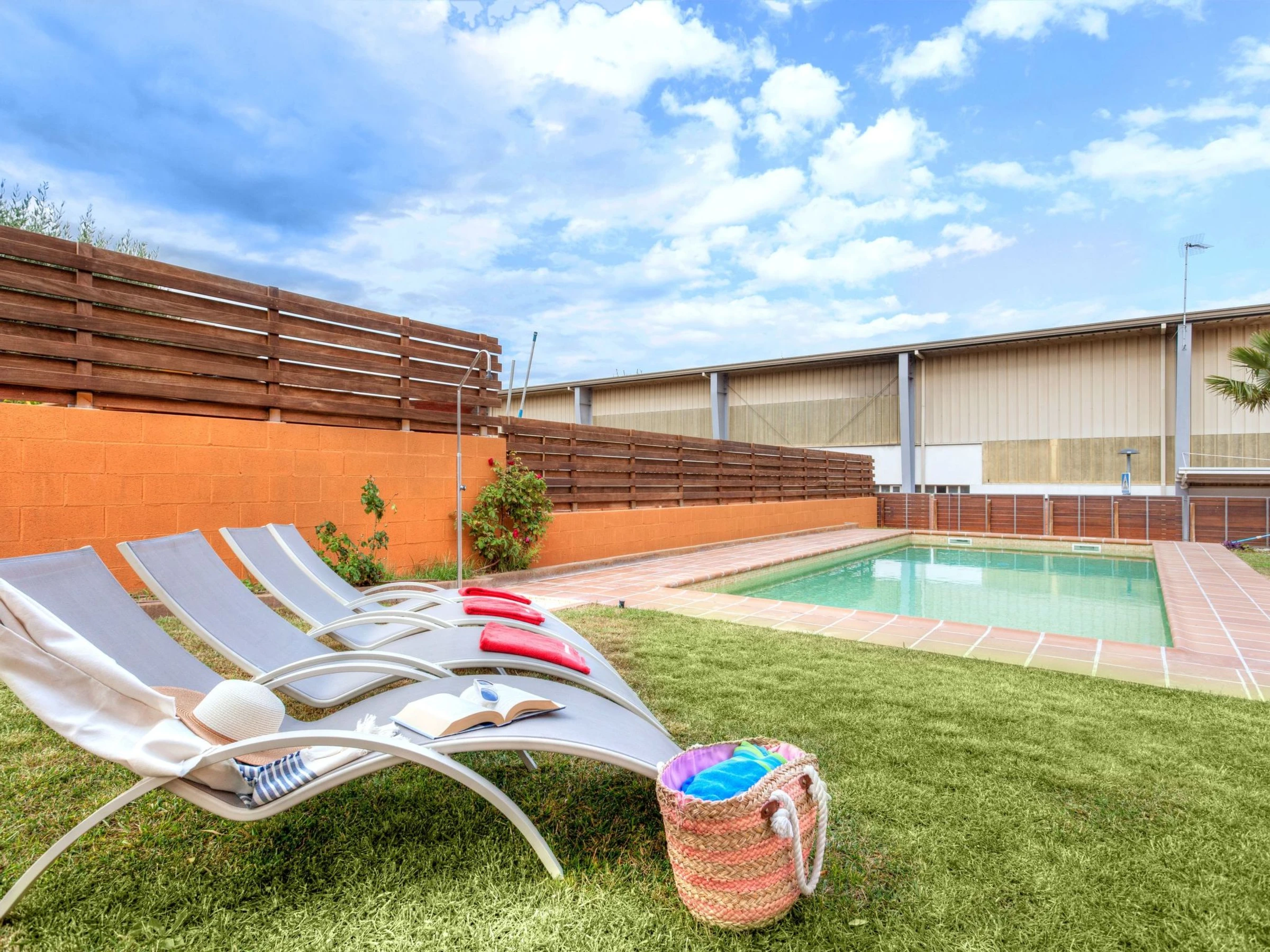 "Villa Chari", 5-room terraced house on 2 levels. Comfortable and beautiful furnishings: living/dining room with TV (flat screen), air conditioning. Exit to the patio, to the swimming pool. Kitchen (oven, dishwasher, 4 induction hot plates, microwave, freezer, grill, electric coffee machine). Sep. WC. No heating option. Upper floor: 3 rooms, each room with 1 french bed. 1 room with 2 beds (90 cm, length 190 cm). 2 showers/WC. Patio, garden, lawn. Terrace furniture, barbecue (portable), deck chairs. Facilities: washing machine. Internet (WiFi, free). Garage. Please note: 2 pets/ dogs allowed. TV only ES. [hidden]