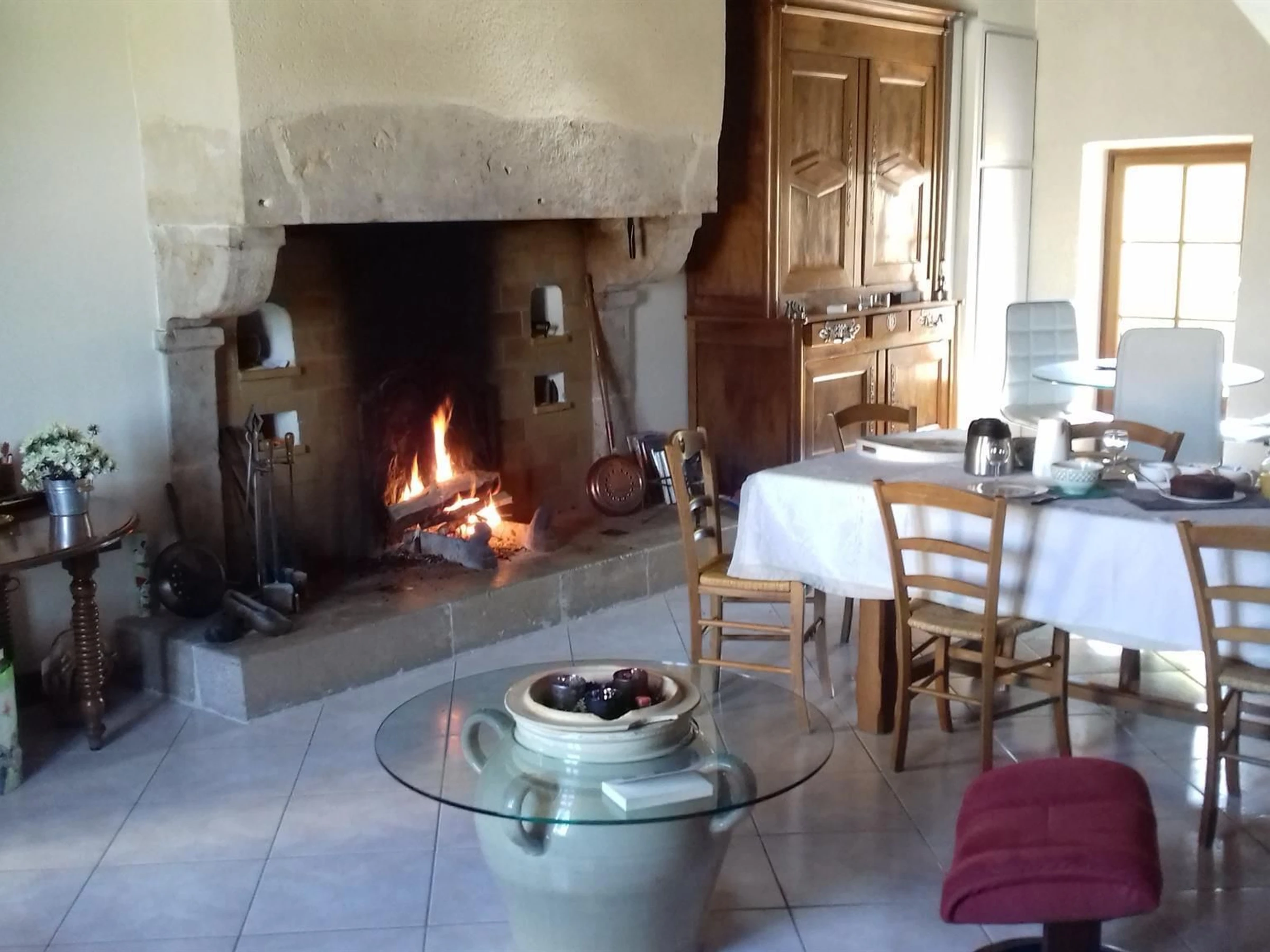 Here eat local! Eat farm! at our table. Welcome to our guest house to experience the farm up close in our spacious and comfortable rooms. Elisabeth and Bernard will make sure your stay is enjoyable and our goats will appreciate your visit. Independent entrance, room on the ground floor, ideal for a small family or couple of 20 m² (bathroom included) equipped with a round table, an armchair, a double bed (160) and a single bed (90), baby bed on request. Spacious and comfortable Jacinthe in pastel colors has access to the terrace.