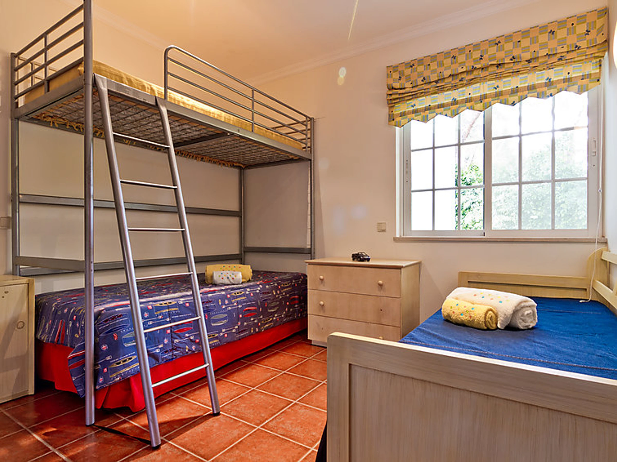 6-room villa. Comfortable and modern furnishings: living/dining room with open-hearth fireplace, TV and satellite TV (flat screen), DVD. 1 room with 1 bed and 1 x 2 bunk beds. Kitchen (oven, dishwasher, 4 ceramic glass hob hotplates, microwave) with bar. Shower/WC, sep. WC. Boiler (180 litres). Upper floor: 1 room with 1 french bed, bath/shower/WC and TV. 1 room with 1 french bed and shower/WC. 1 room with 1 french bed. Patio. Terrace furniture, barbecue, deck chairs (4). View of the swimming pool and the garden. Facilities: washing machine, children's high chair, baby cot for up to 2 year olds (extra). Included: Final cleaning, Laundry (initial supply of bed linen and towels) Available on site with supplement: Cot (up to 2 years) & Highchair 11.0EUR per day