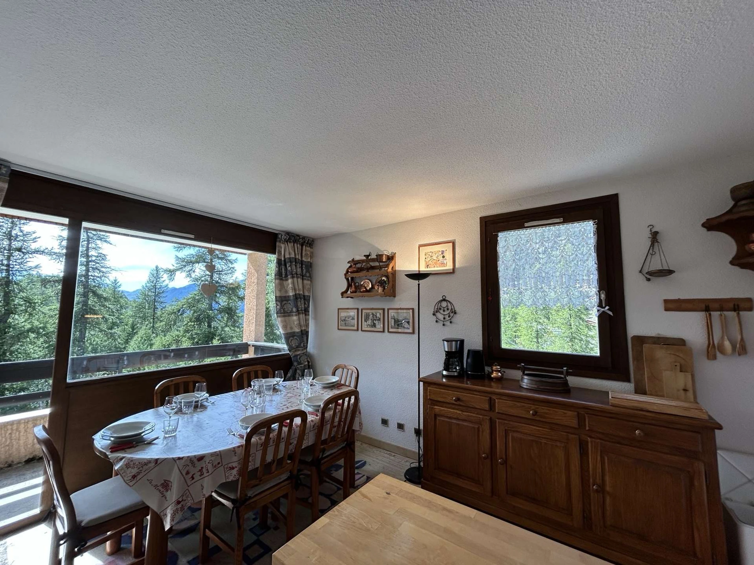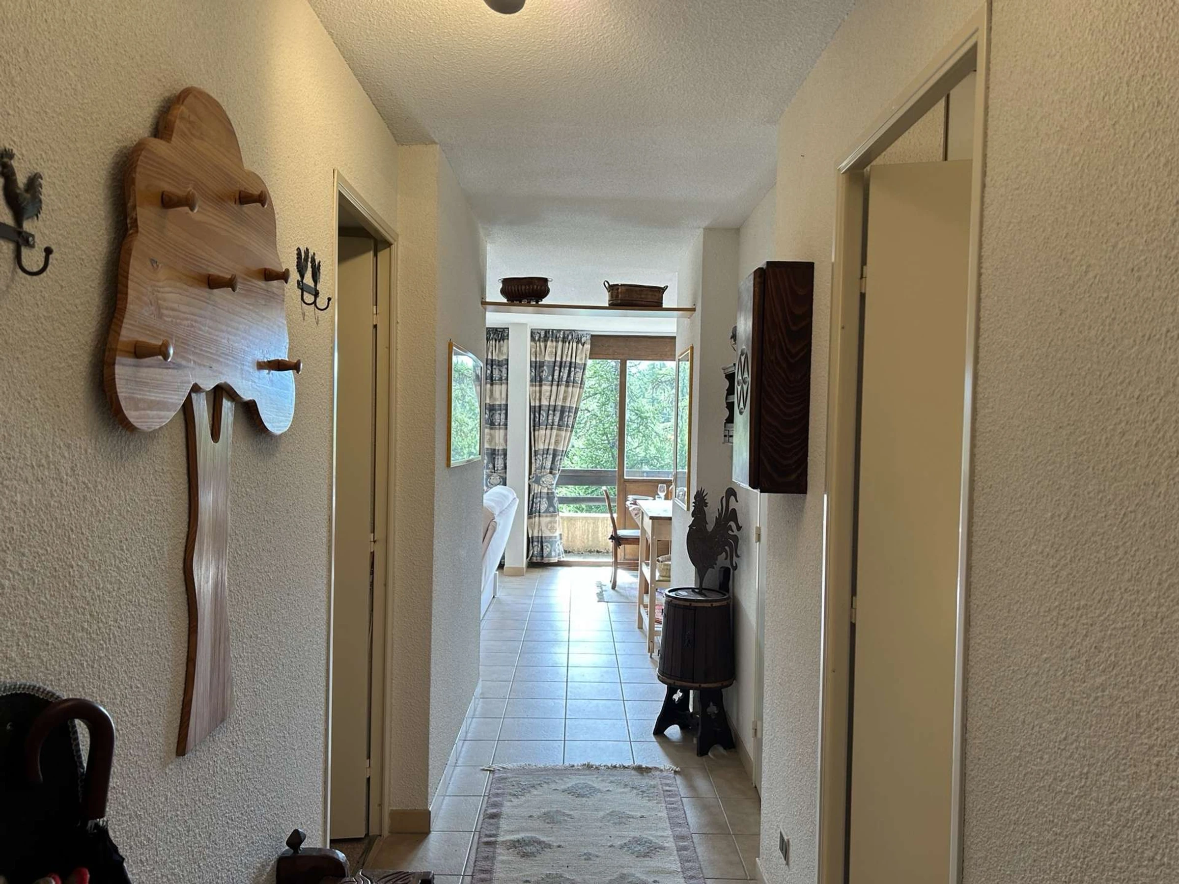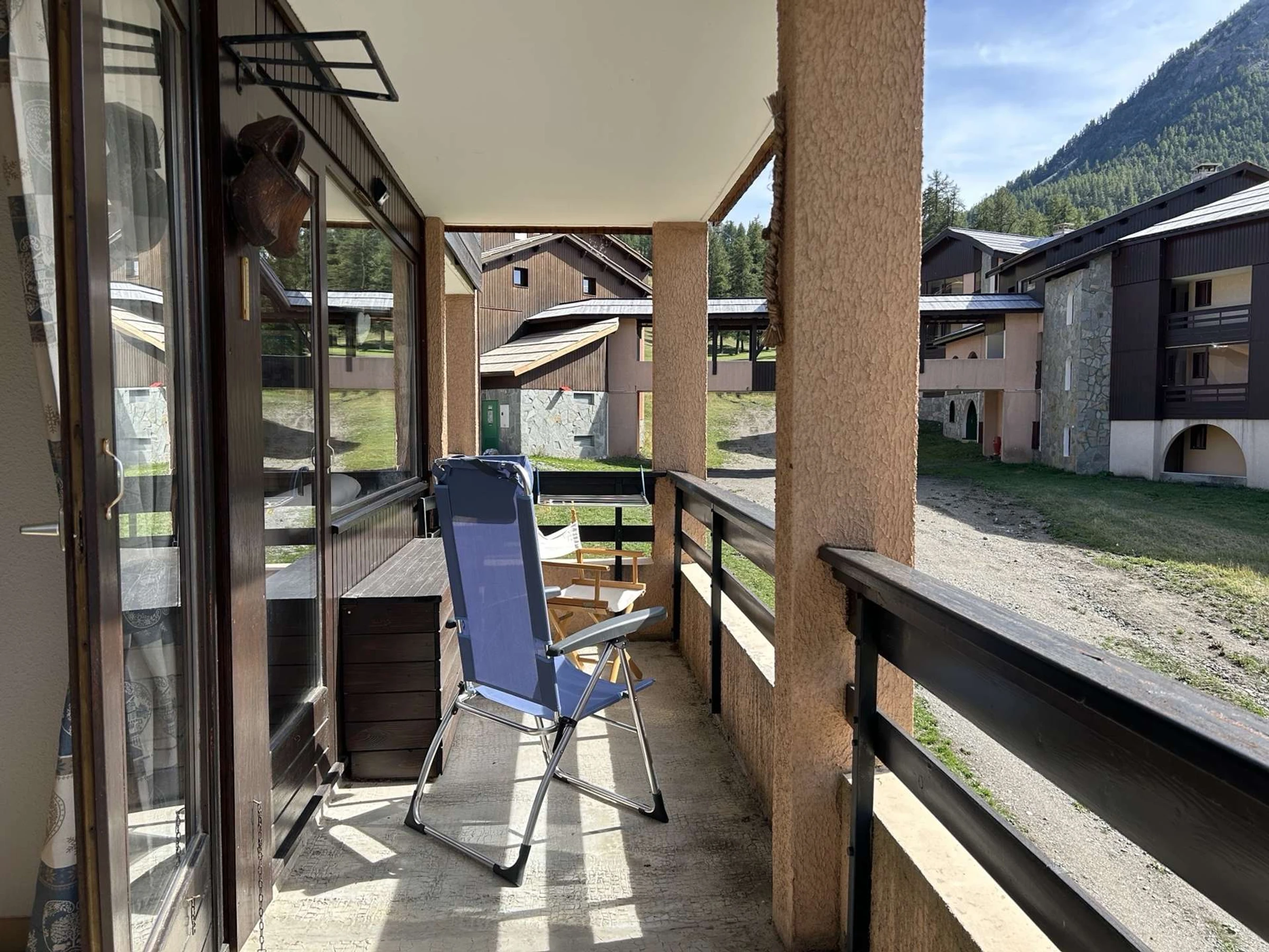 - a living room with a 120cm sofa bed and a television, opening onto the west-facing balcony.