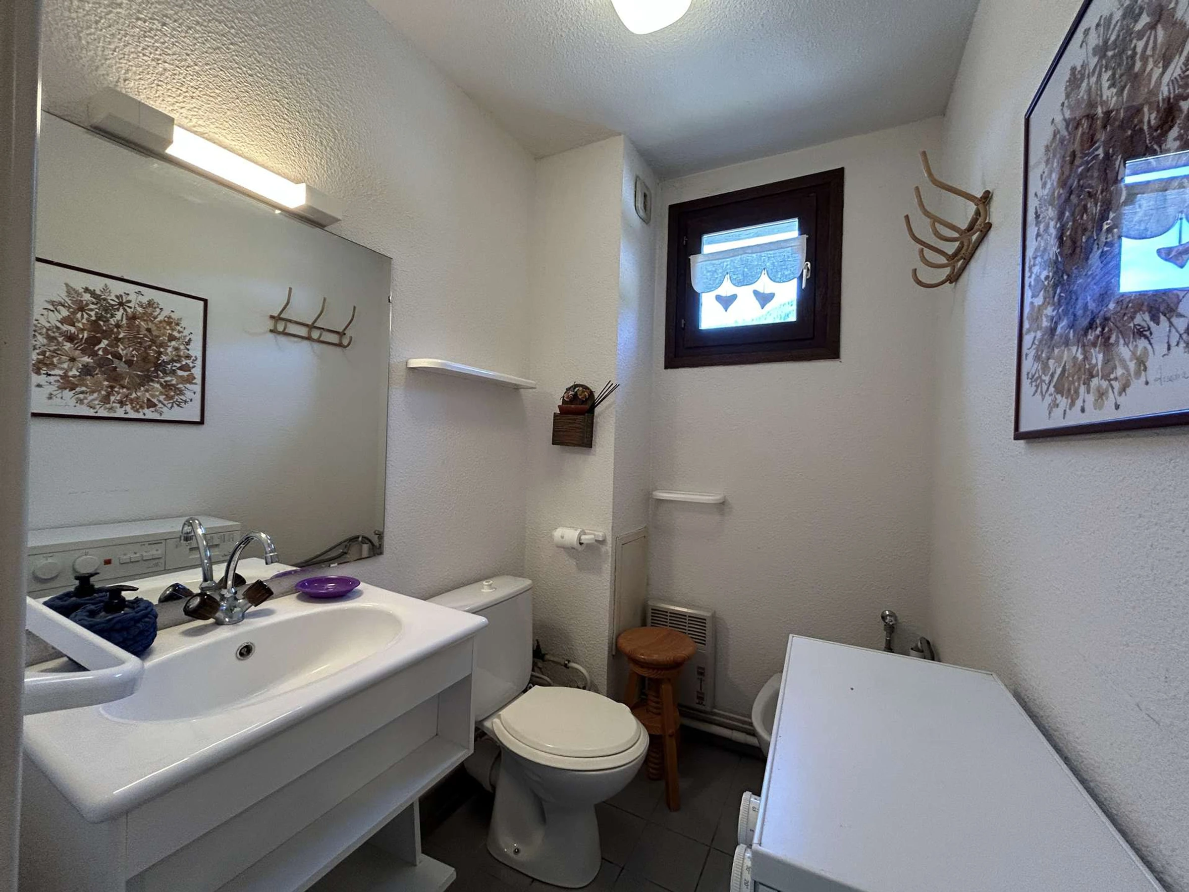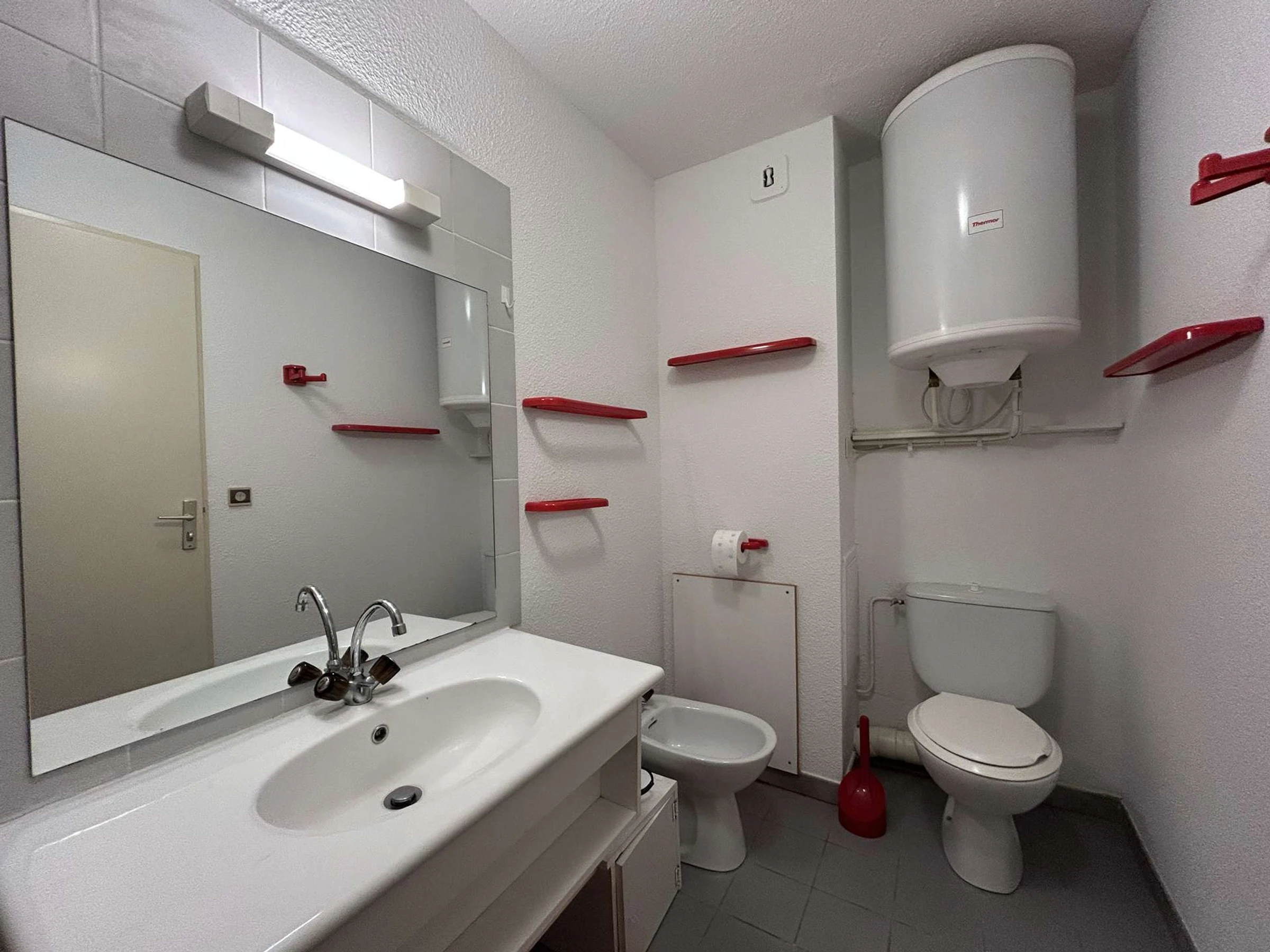 From this bedroom, you access the bathroom with shower, sink, toilet, and bidet.