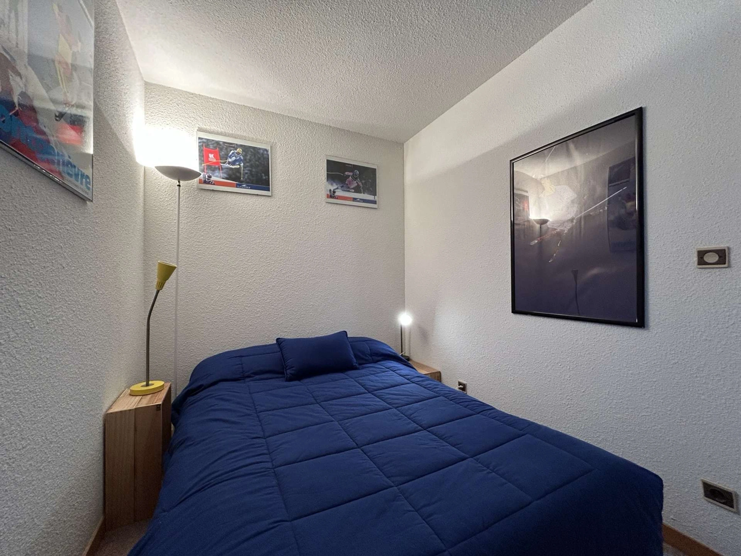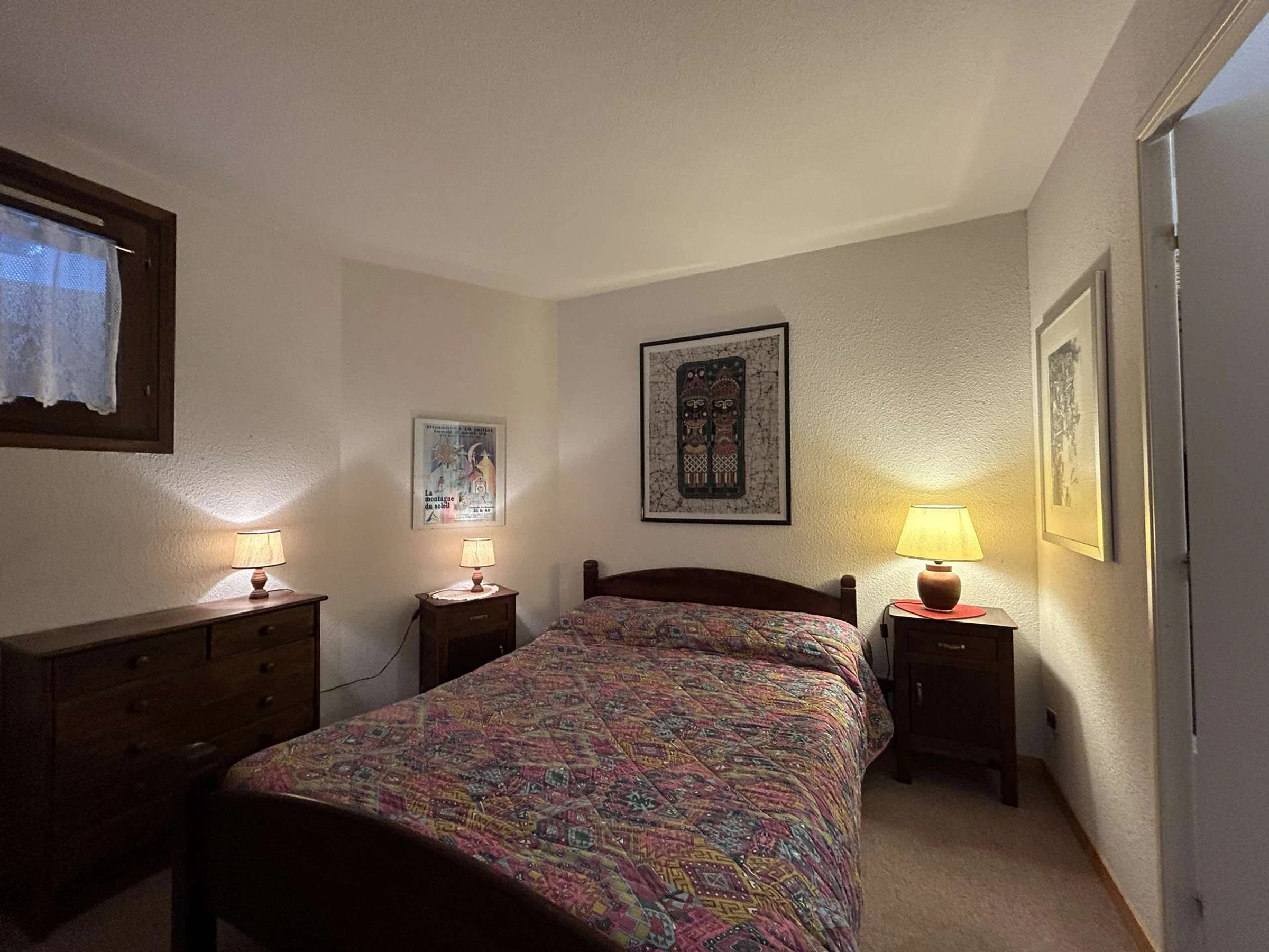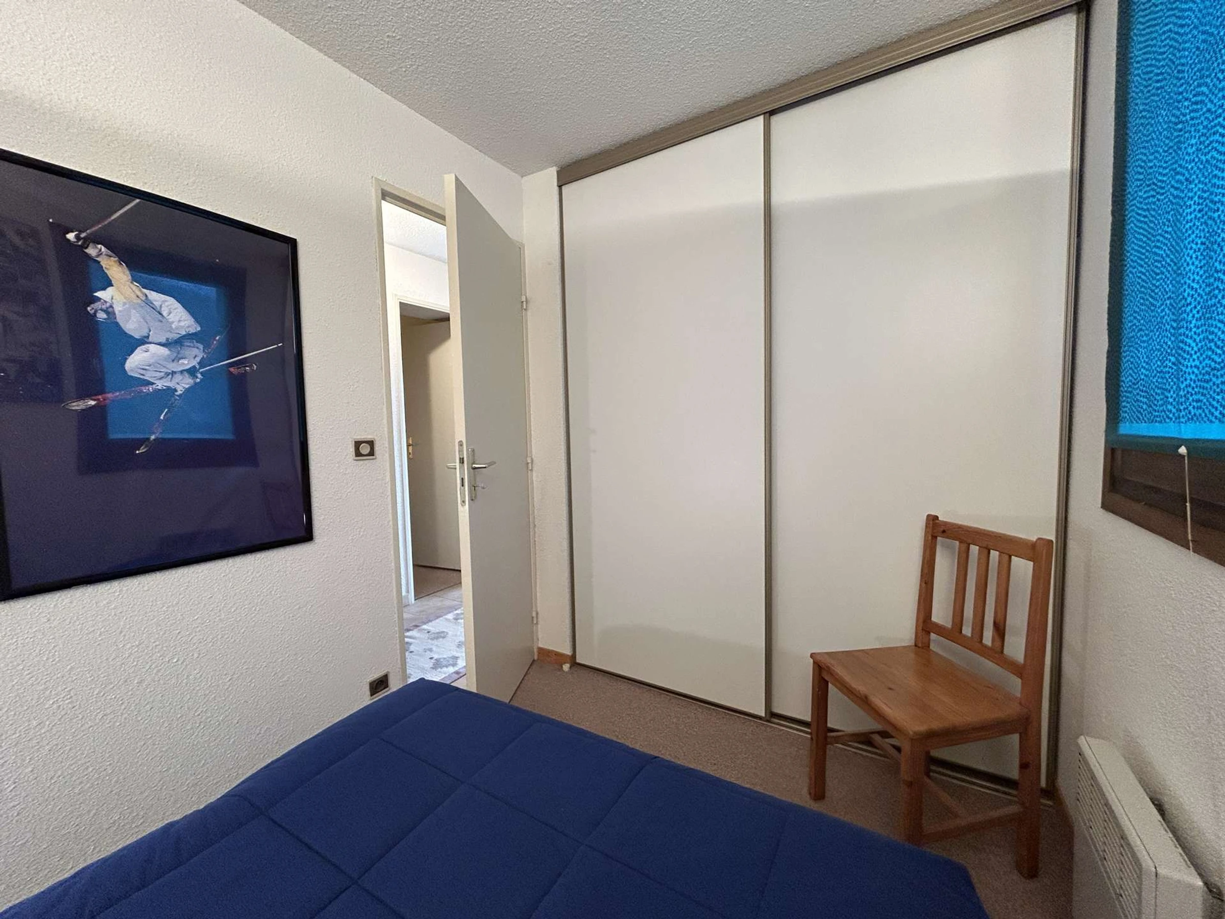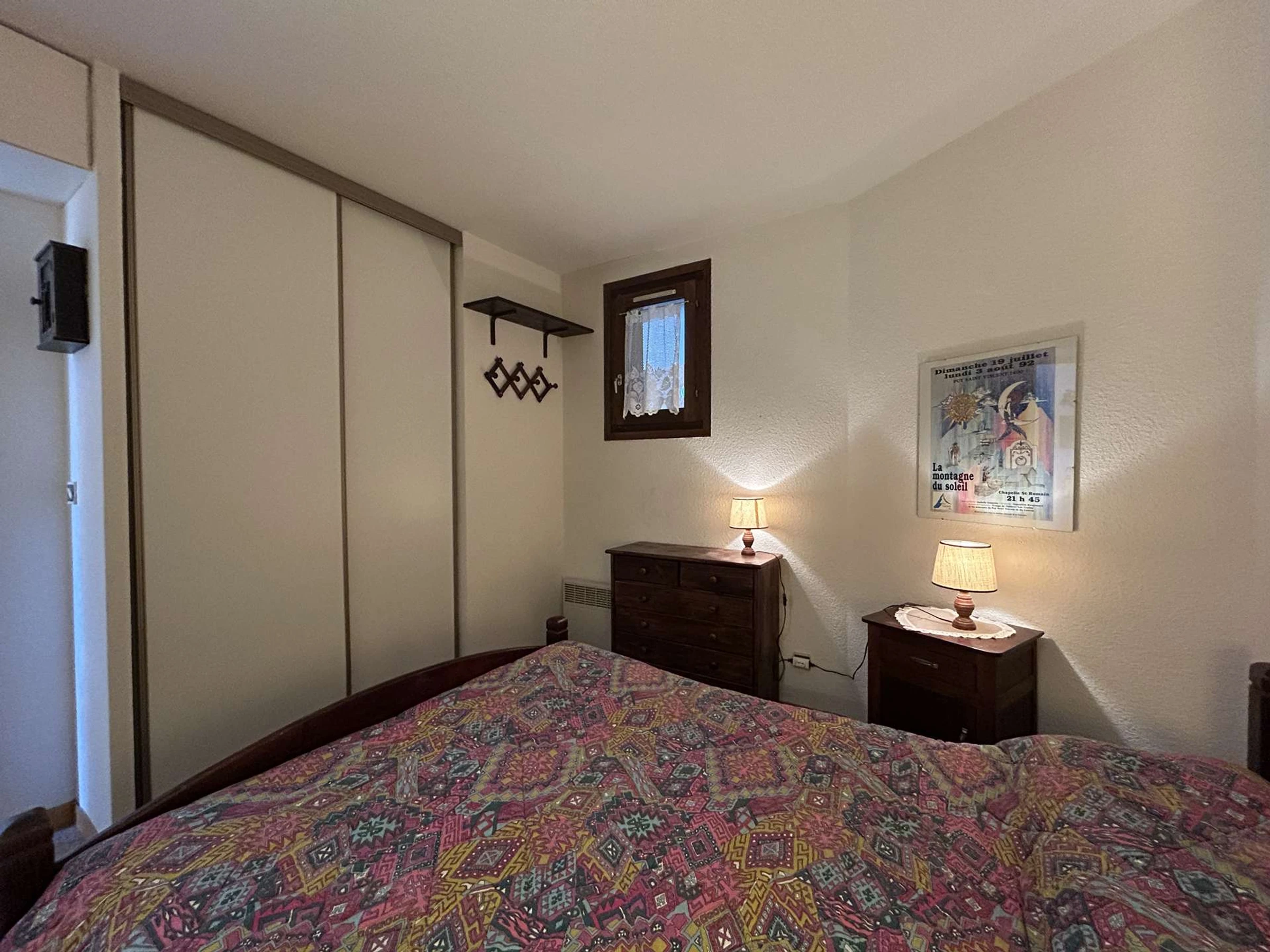 - a bedroom with a 140cm double bed and a built-in closet.