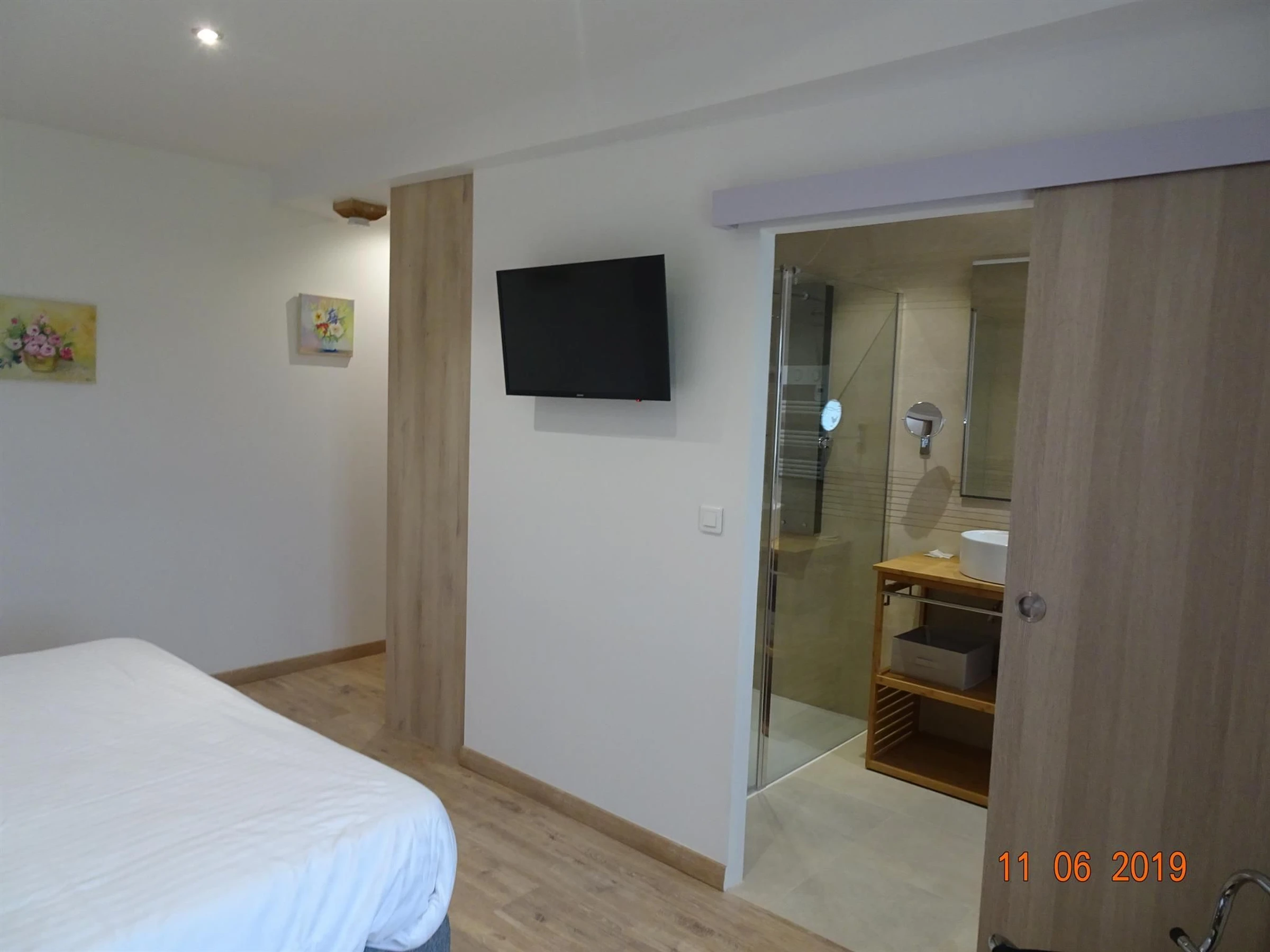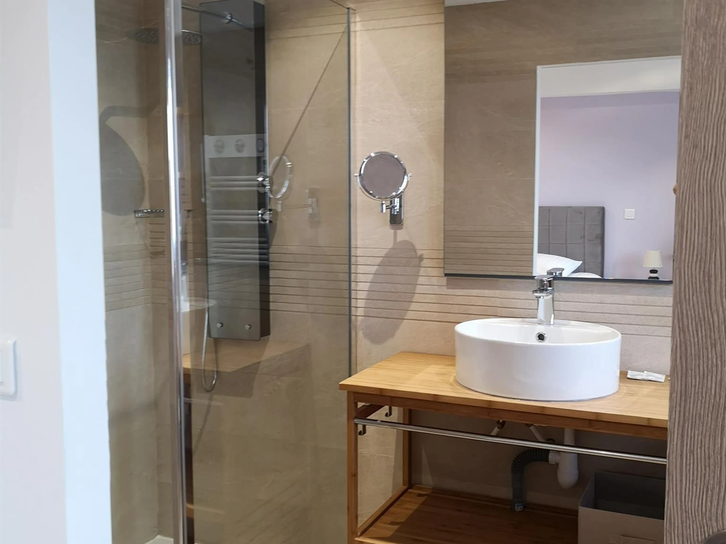 One king-size bed (or two single beds (90x200)) with a private bathroom. Walk-in shower and toilet.