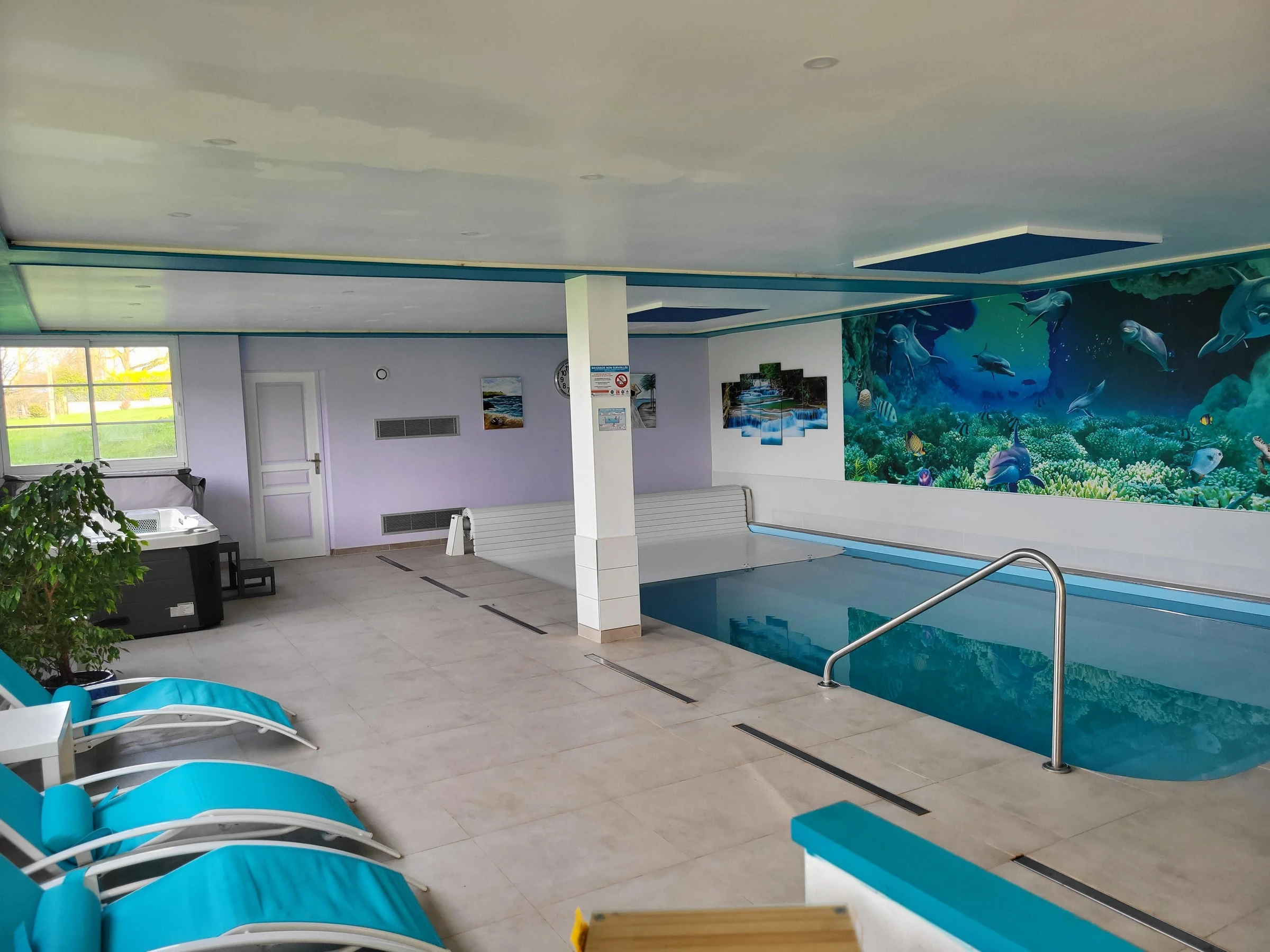 Cozy guest rooms with covered pool, billiards, and jacuzzi in Montillot