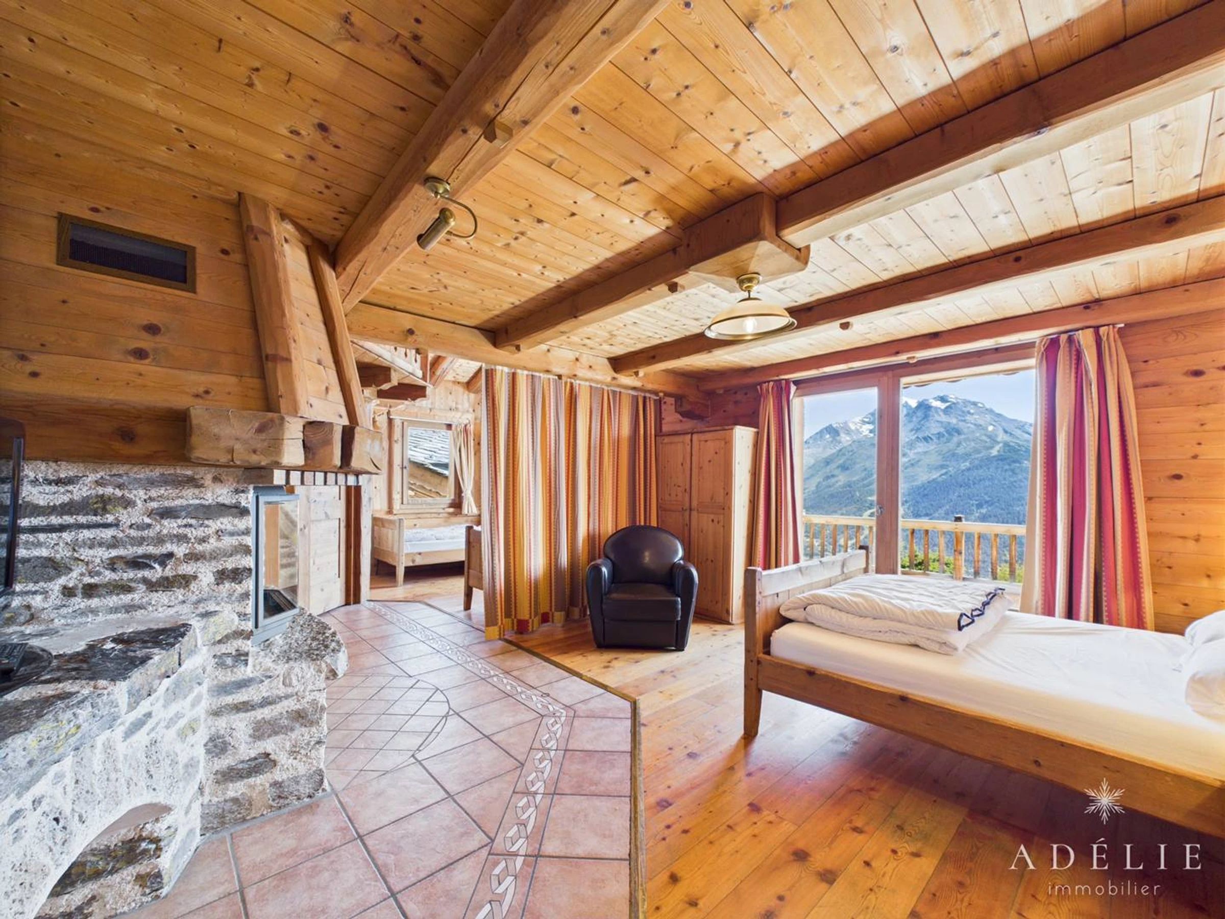 Living room with fireplace for evenings by the fire. Stunning south-facing views of the Haute-Tarentaise Valley. Bedroom 1: Two 90cm x 200cm beds / en-suite shower room with WC / TV