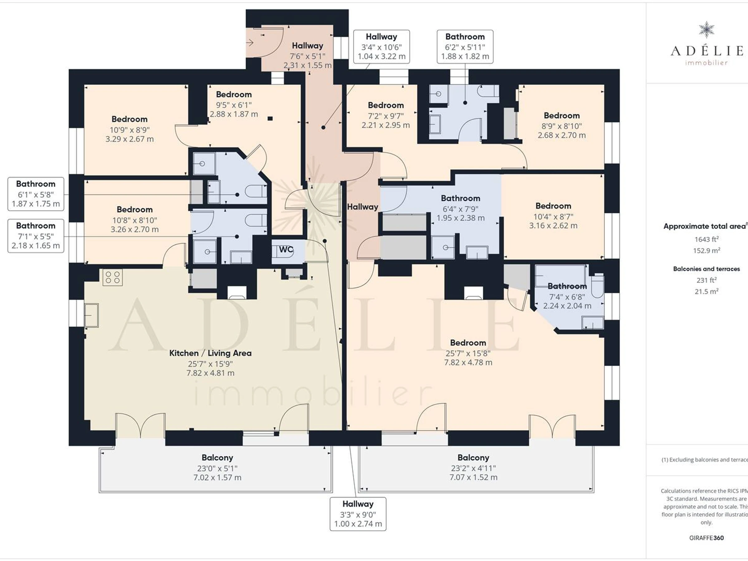 Bedroom 5: One 140cm x 190cm bed / Two 90cm x 190cm beds / Bathroom and WC / TV / Fireplace