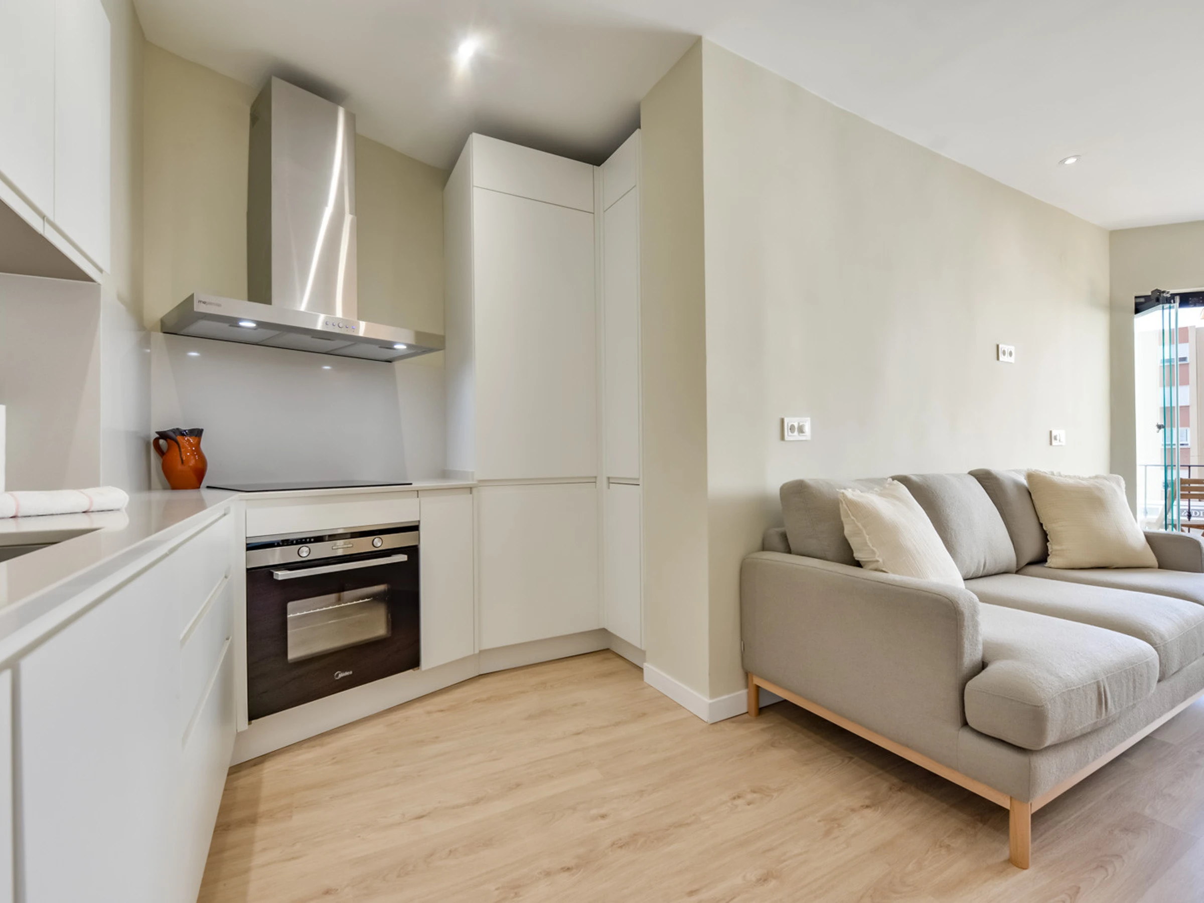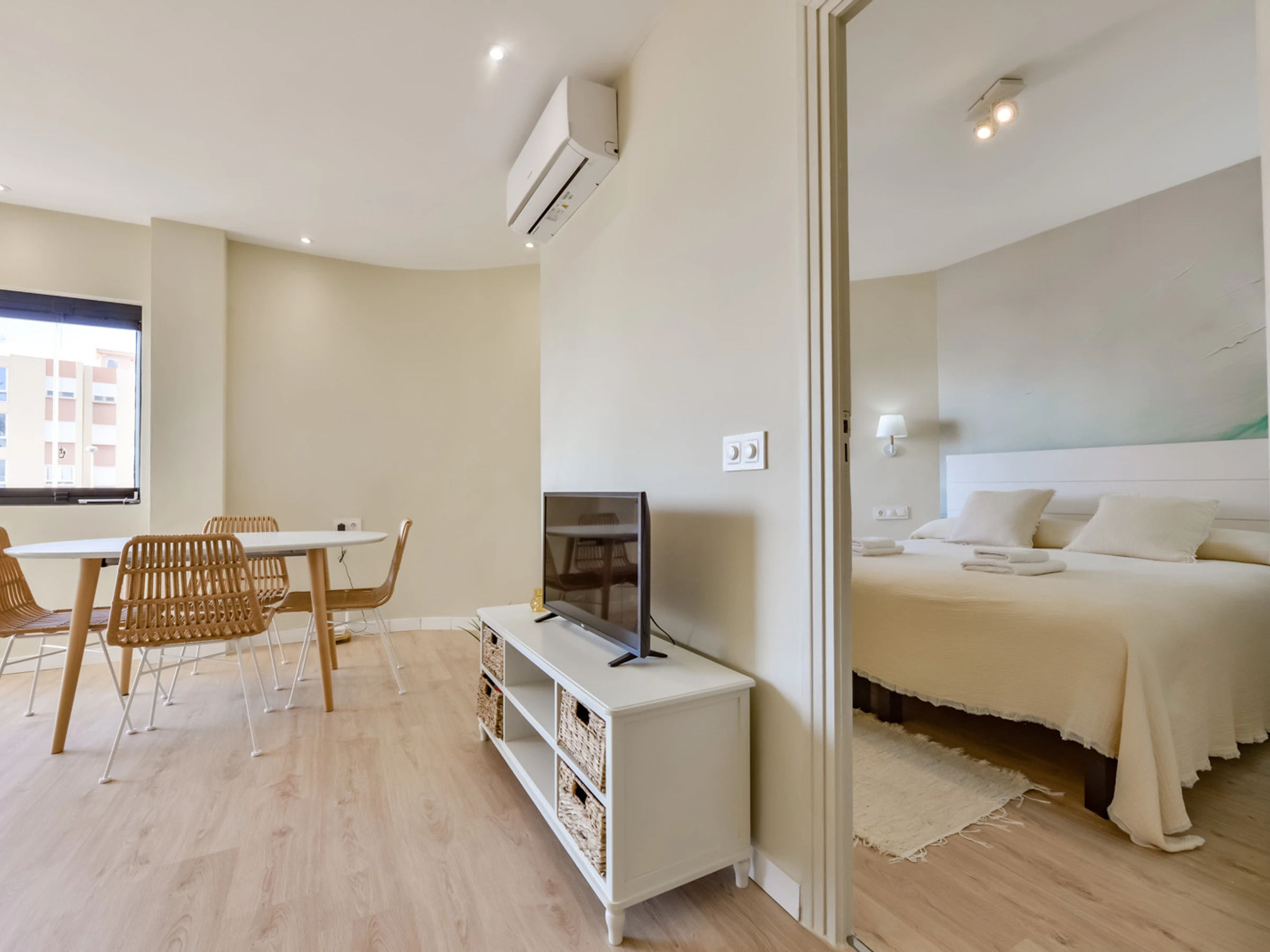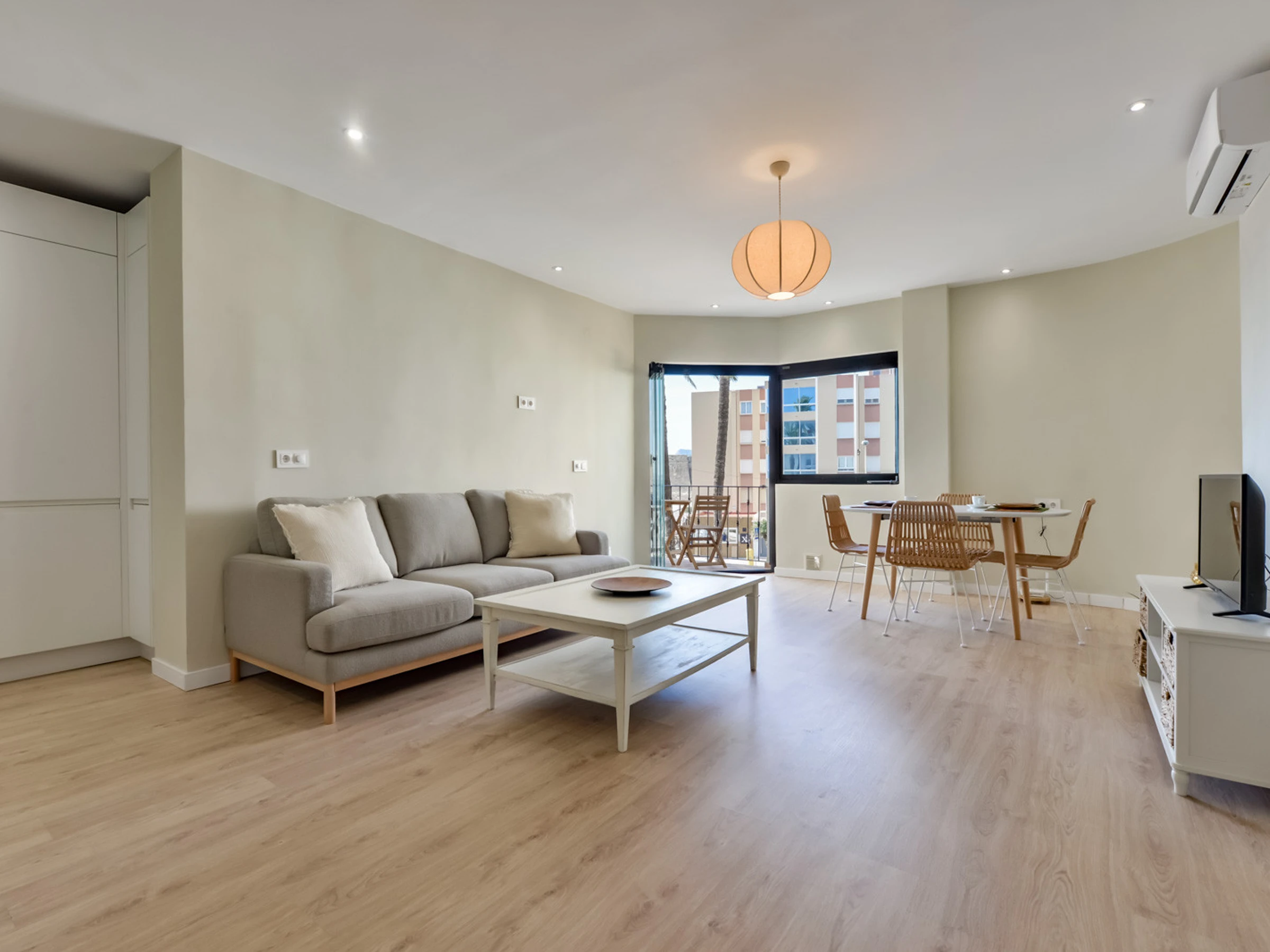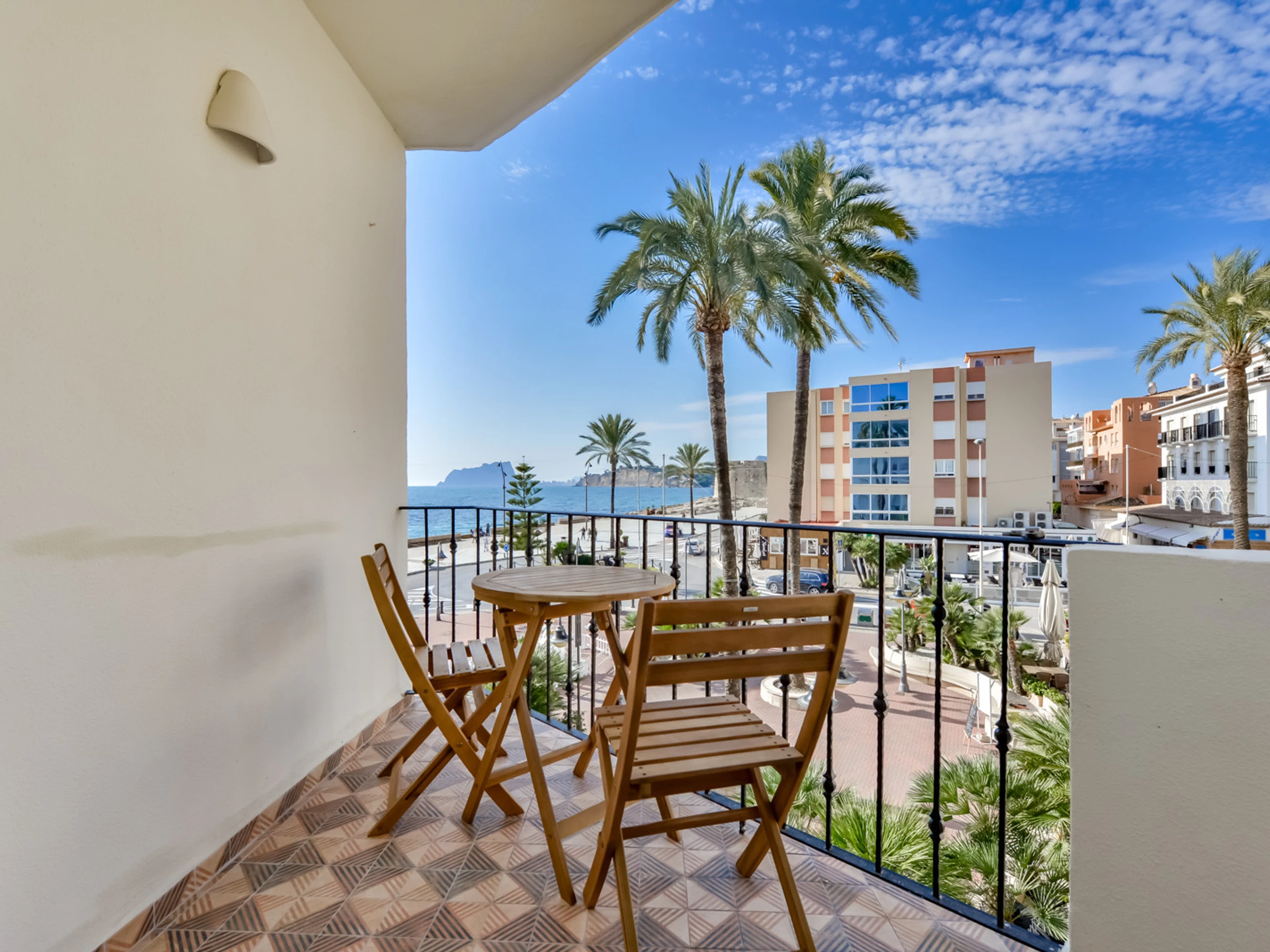 With 73 m2 of living space, the apartment offers two bedrooms with double beds and air conditioning, providing a comfortable and functional space. It has a full bathroom with shower and a toilet, which facilitates coexistence during your stay. The open-plan kitchen is fully equipped with state-of-the-art appliances, and a spacious open living room with air conditioning, a sofa area and TV, a pleasant round table for 4 diners, and access to a pleasant terrace with beautiful views of the sea, the Peñón de Ifach and the coastal town of Moraira.