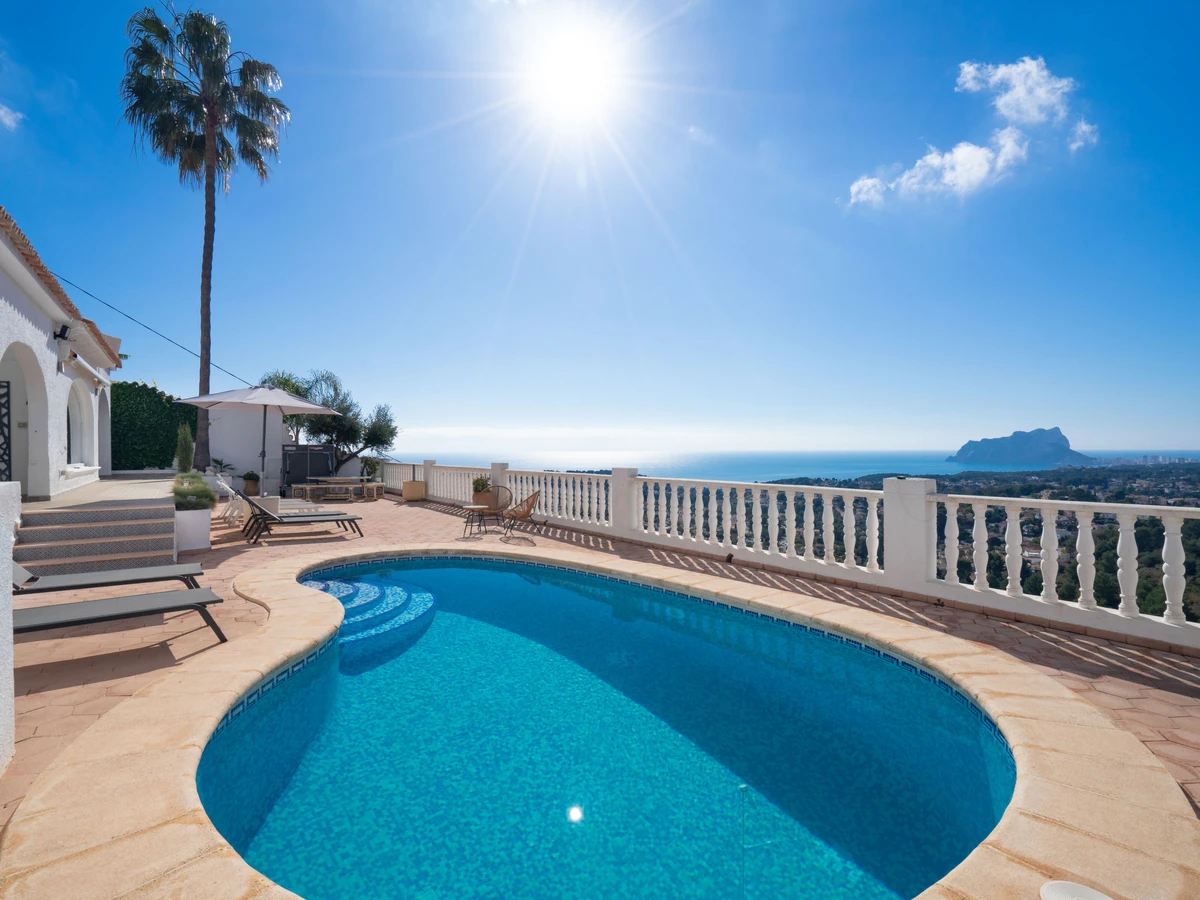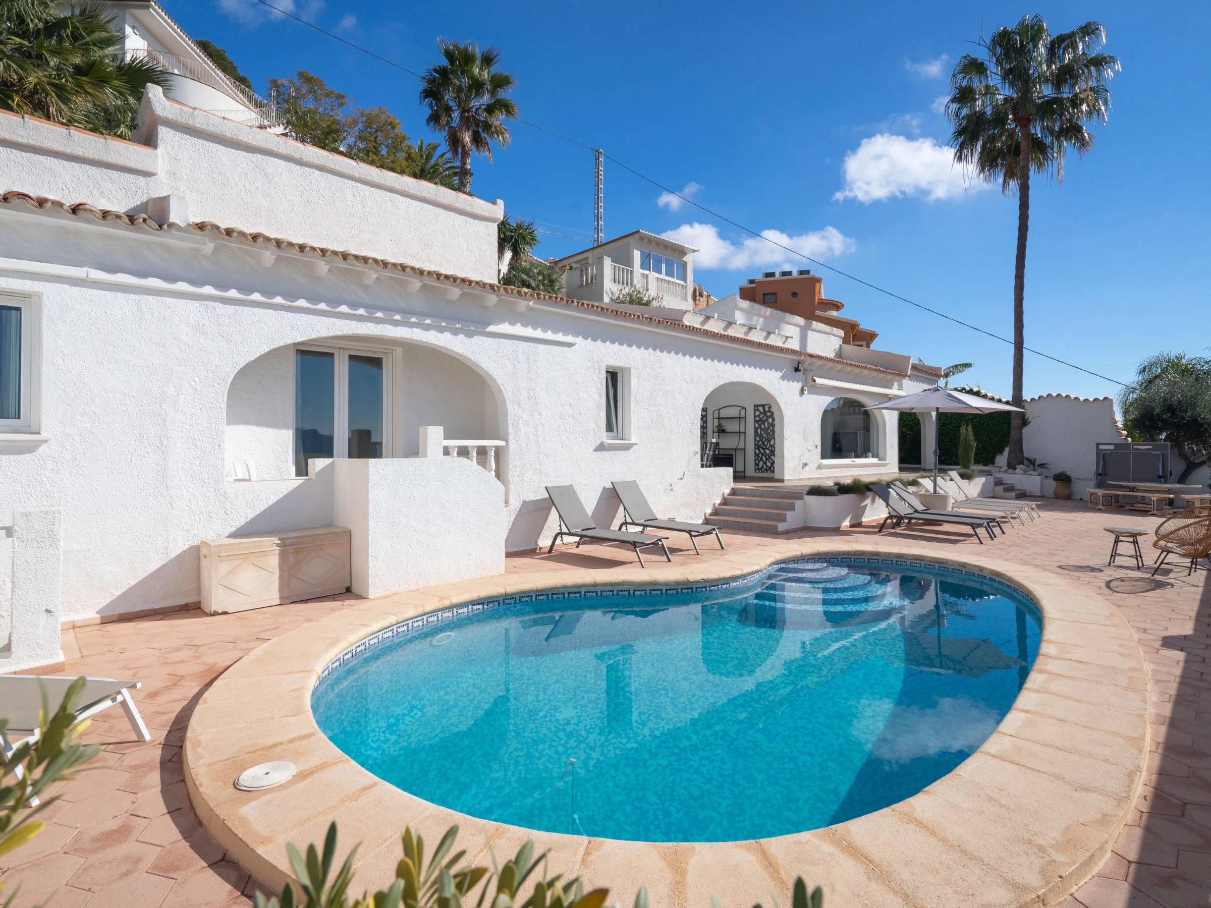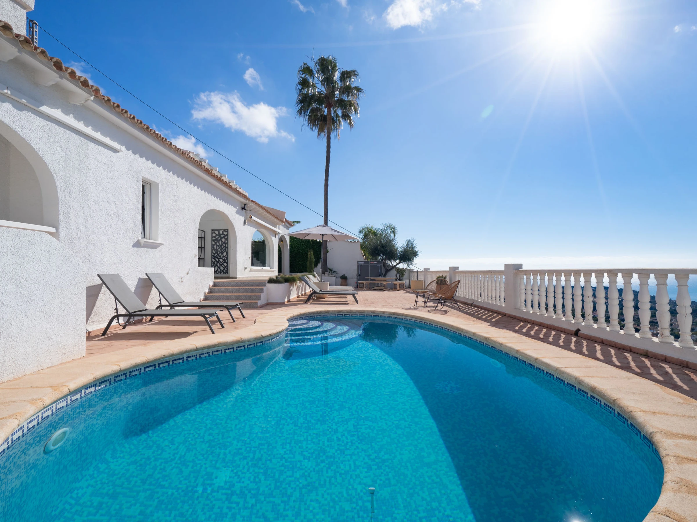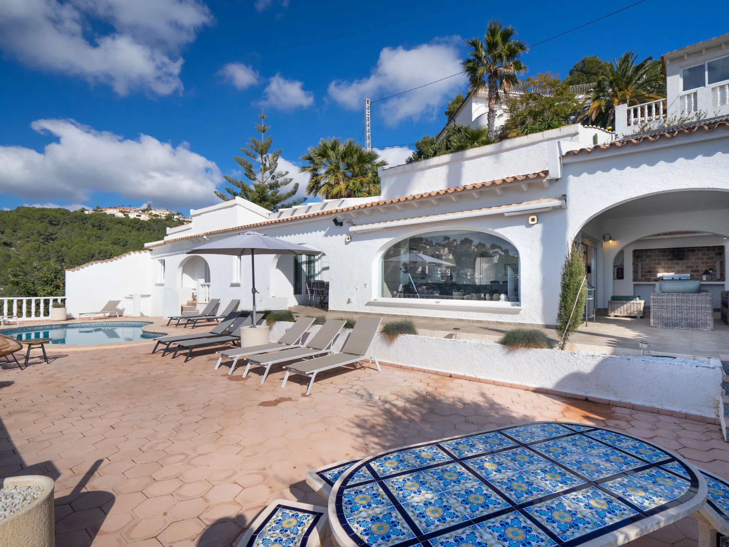 Beautiful villa "Vista Azul". 4 km from the centre of Moraira, 13 km from the centre of Calpe, 6 km from the centre of Benissa, in a quiet, sunny, elevated position residential area (villas), 2 km from the sea, 2 km from the beach. Private: property 679 m2 (fenced), swimming pool (8 x 4 m, depth 120 - 200 cm, seasonal availability: [hidden] - [hidden] Table tennis, terrace, barbecue. Stepped path (43 steps) to the house. Parking, public car park. Supermarket 2 km, sandy beach "Playa Moraira" 2 km. The owner does not accept any youth groups.