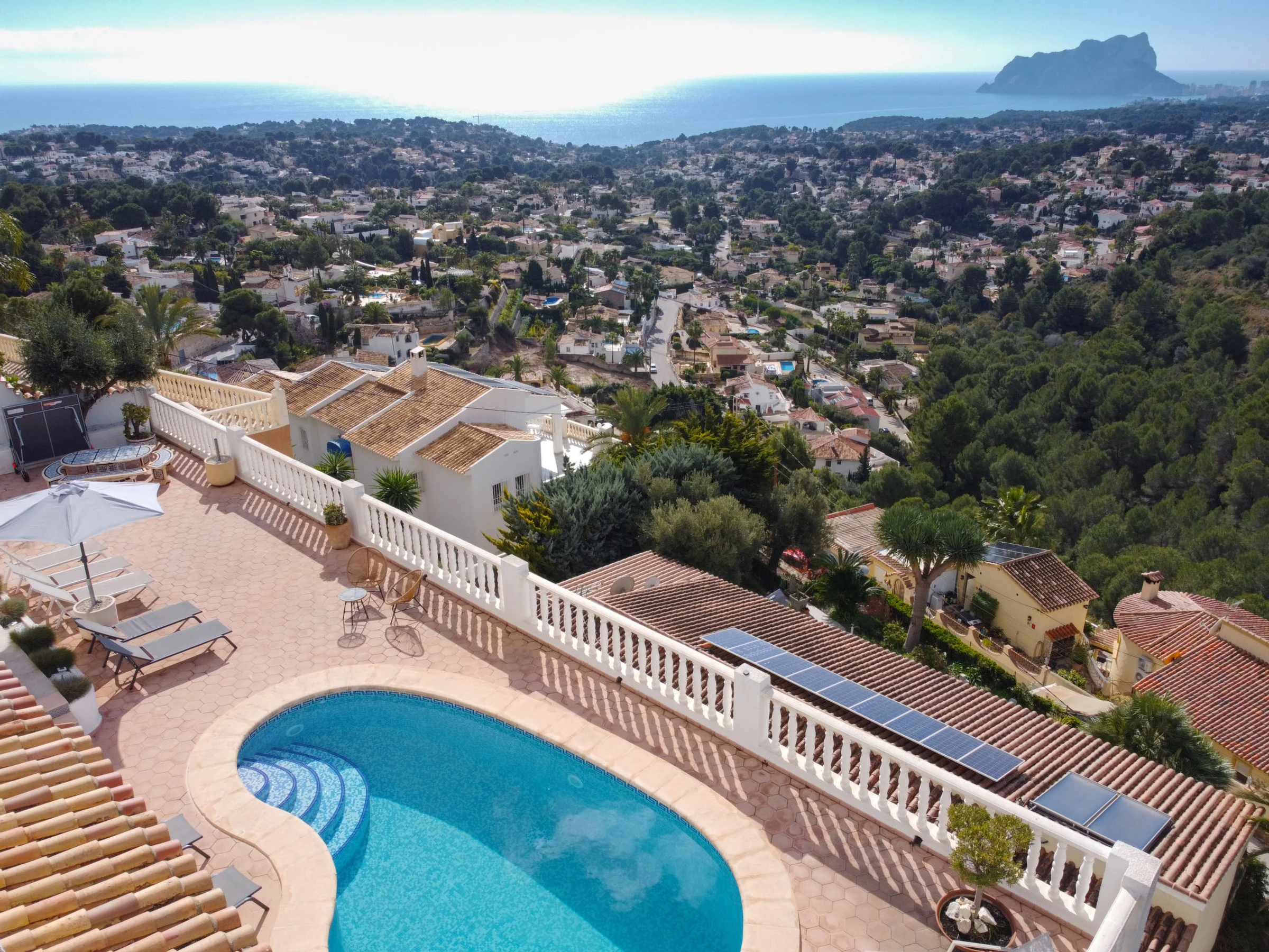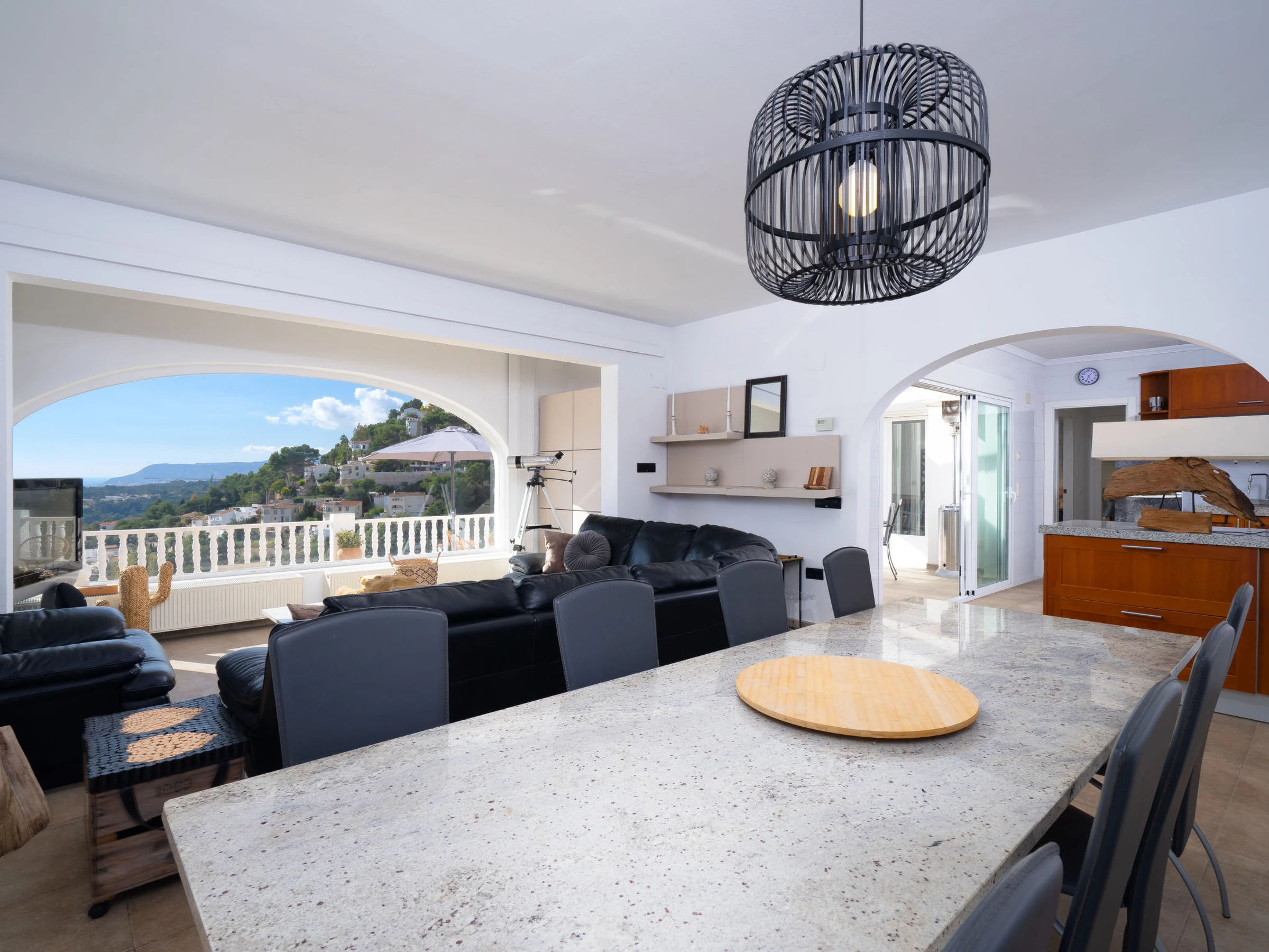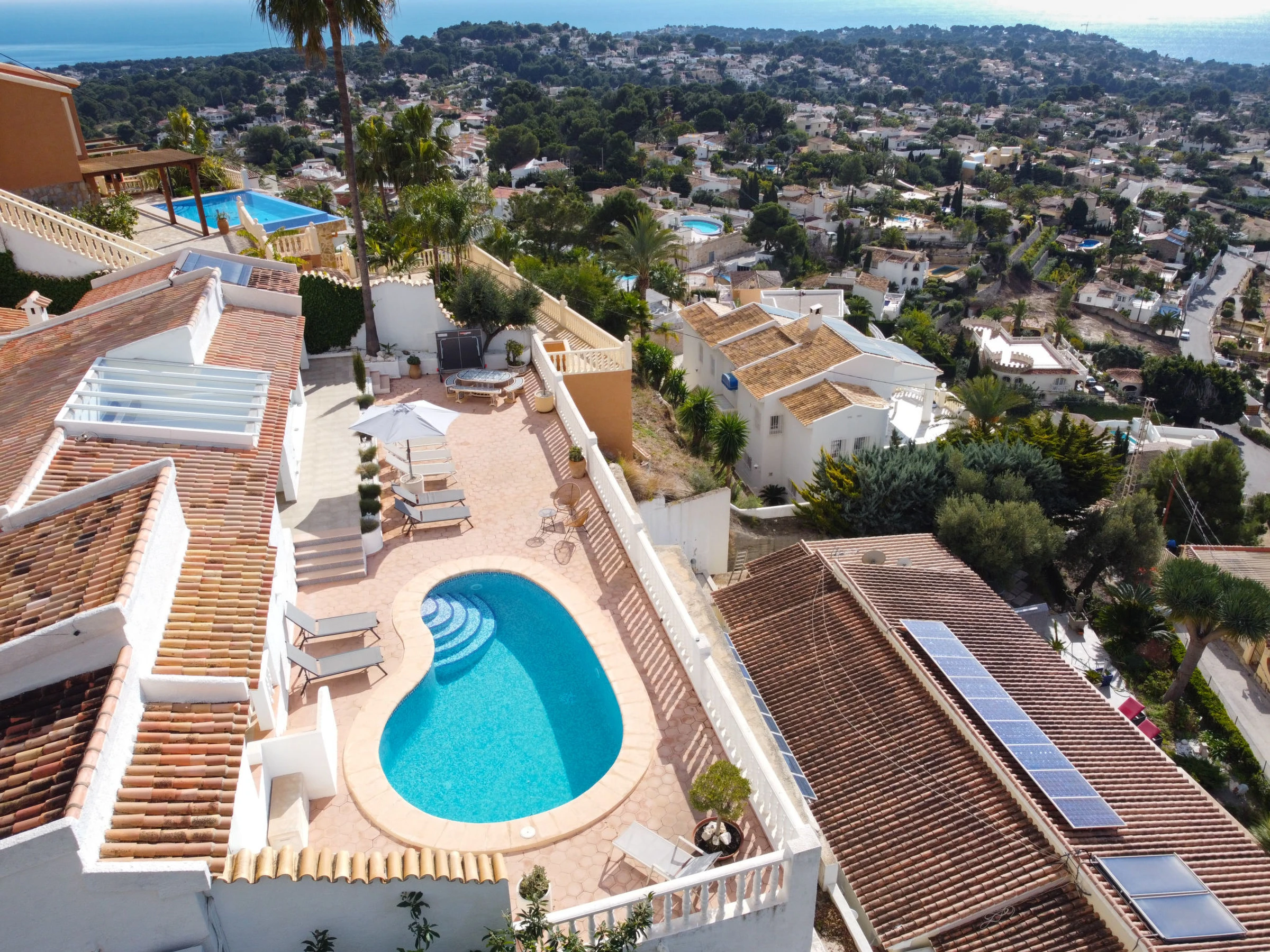 Beautiful villa "Vista Azul". 4 km from the centre of Moraira, 13 km from the centre of Calpe, 6 km from the centre of Benissa, in a quiet, sunny, elevated position residential area (villas), 2 km from the sea, 2 km from the beach. Private: property 679 m2 (fenced), swimming pool (8 x 4 m, depth 120 - 200 cm, seasonal availability: [hidden] - [hidden] Table tennis, terrace, barbecue. Stepped path (43 steps) to the house. Parking, public car park. Supermarket 2 km, sandy beach "Playa Moraira" 2 km. The owner does not accept any youth groups.