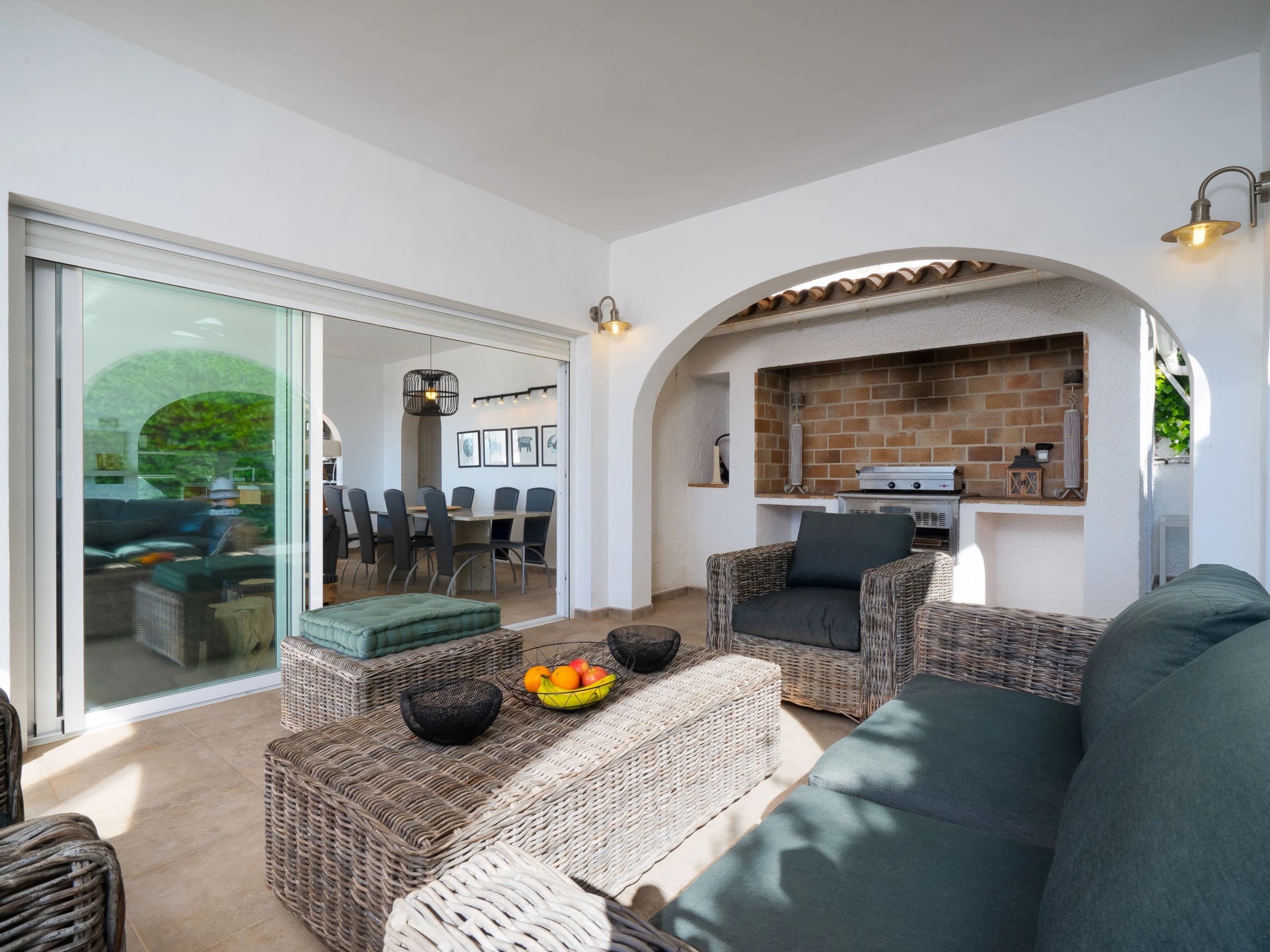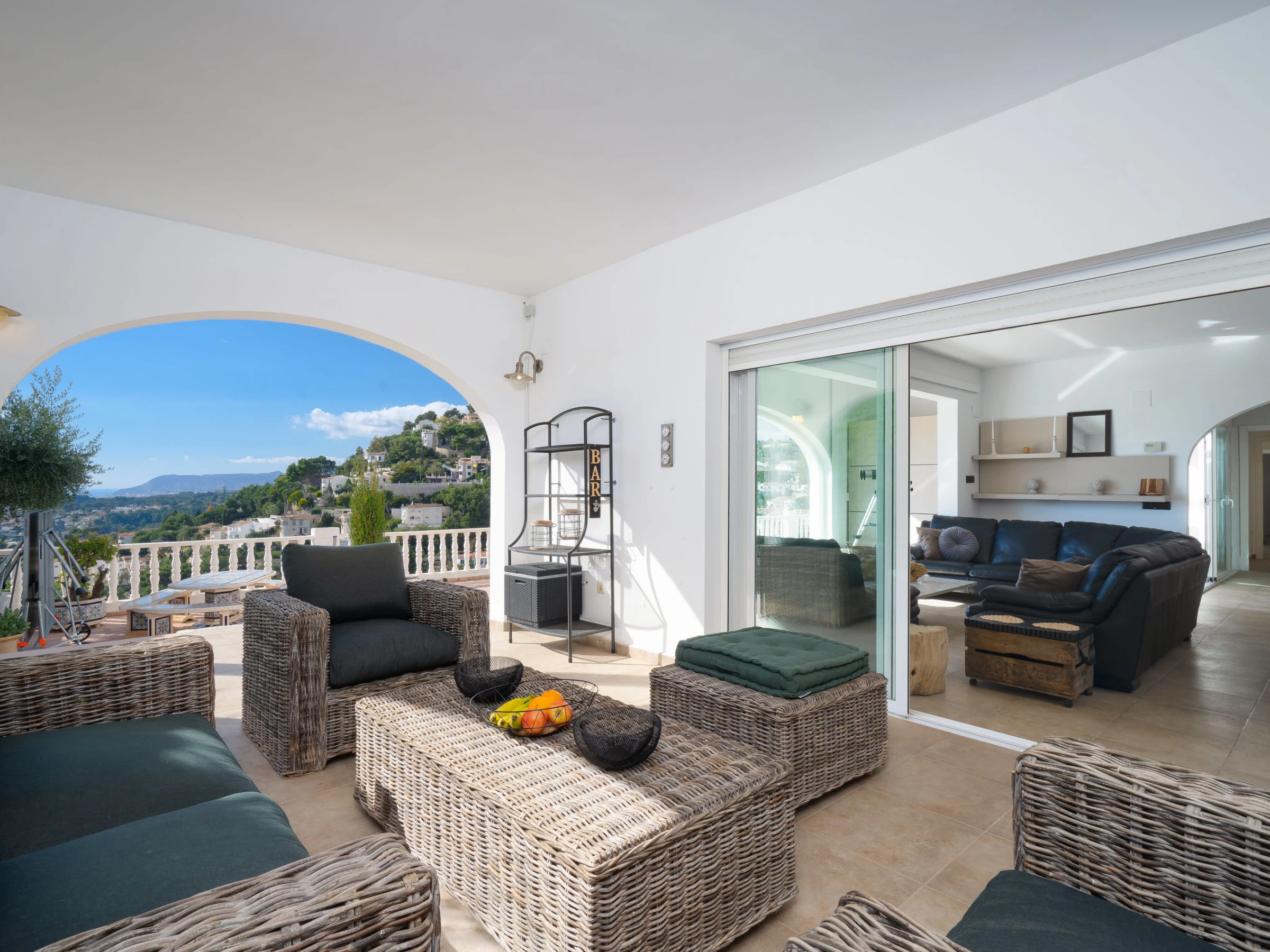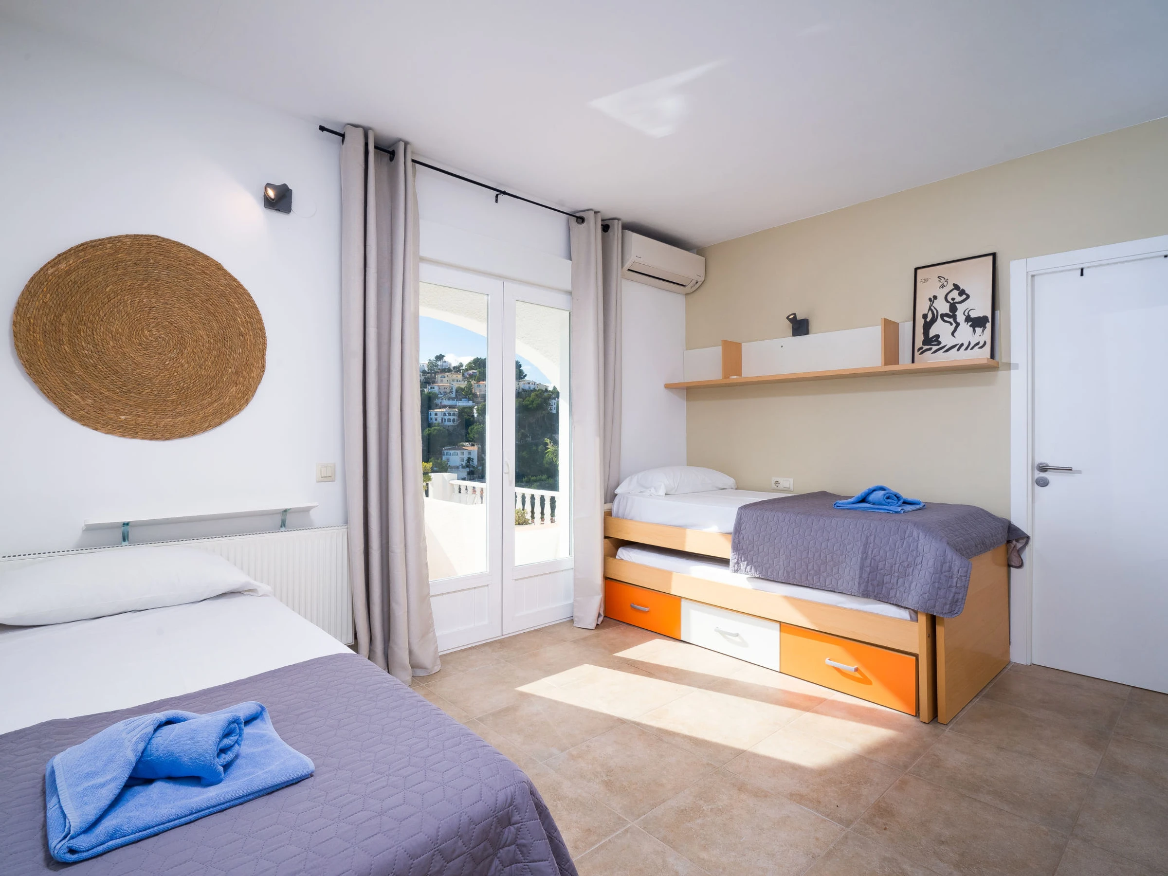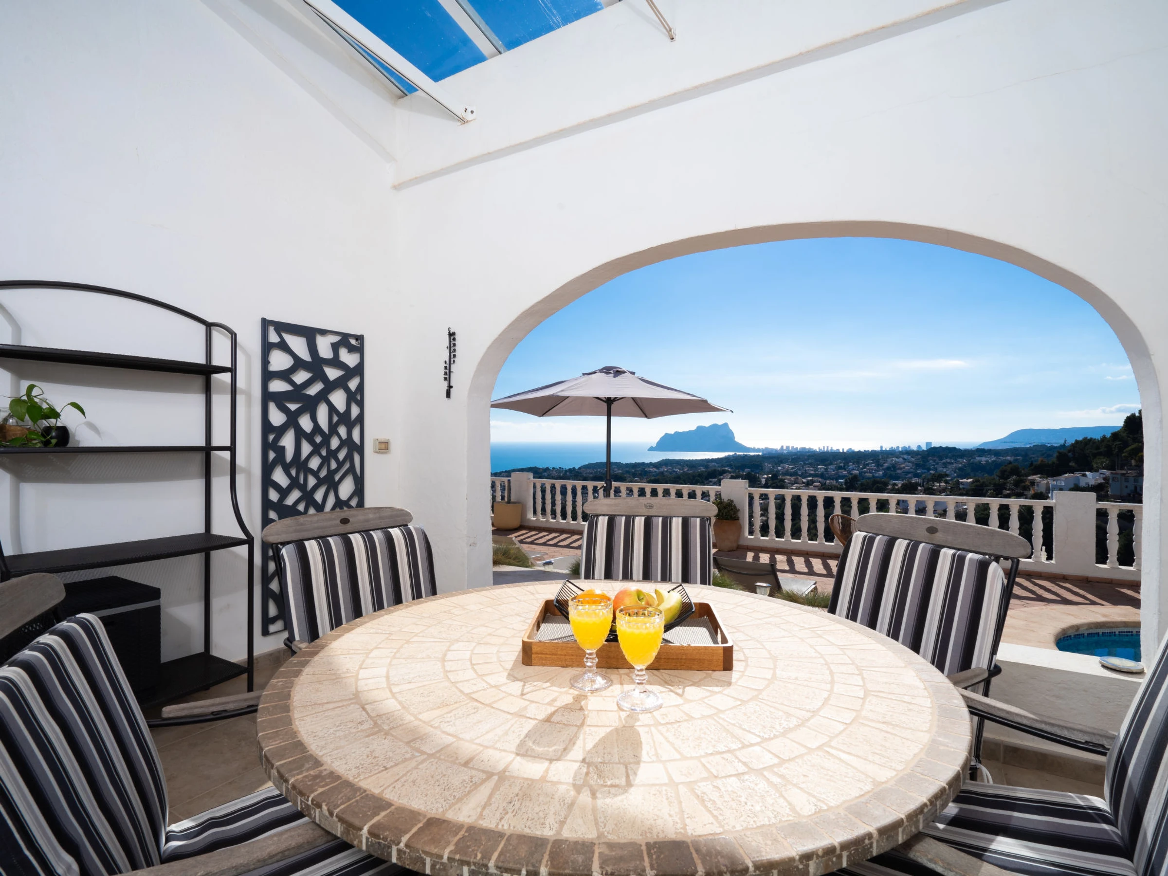 Beautiful villa "Vista Azul". 4 km from the centre of Moraira, 13 km from the centre of Calpe, 6 km from the centre of Benissa, in a quiet, sunny, elevated position residential area (villas), 2 km from the sea, 2 km from the beach. Private: property 679 m2 (fenced), swimming pool (8 x 4 m, depth 120 - 200 cm, seasonal availability: [hidden] - [hidden] Table tennis, terrace, barbecue. Stepped path (43 steps) to the house. Parking, public car park. Supermarket 2 km, sandy beach "Playa Moraira" 2 km. The owner does not accept any youth groups.