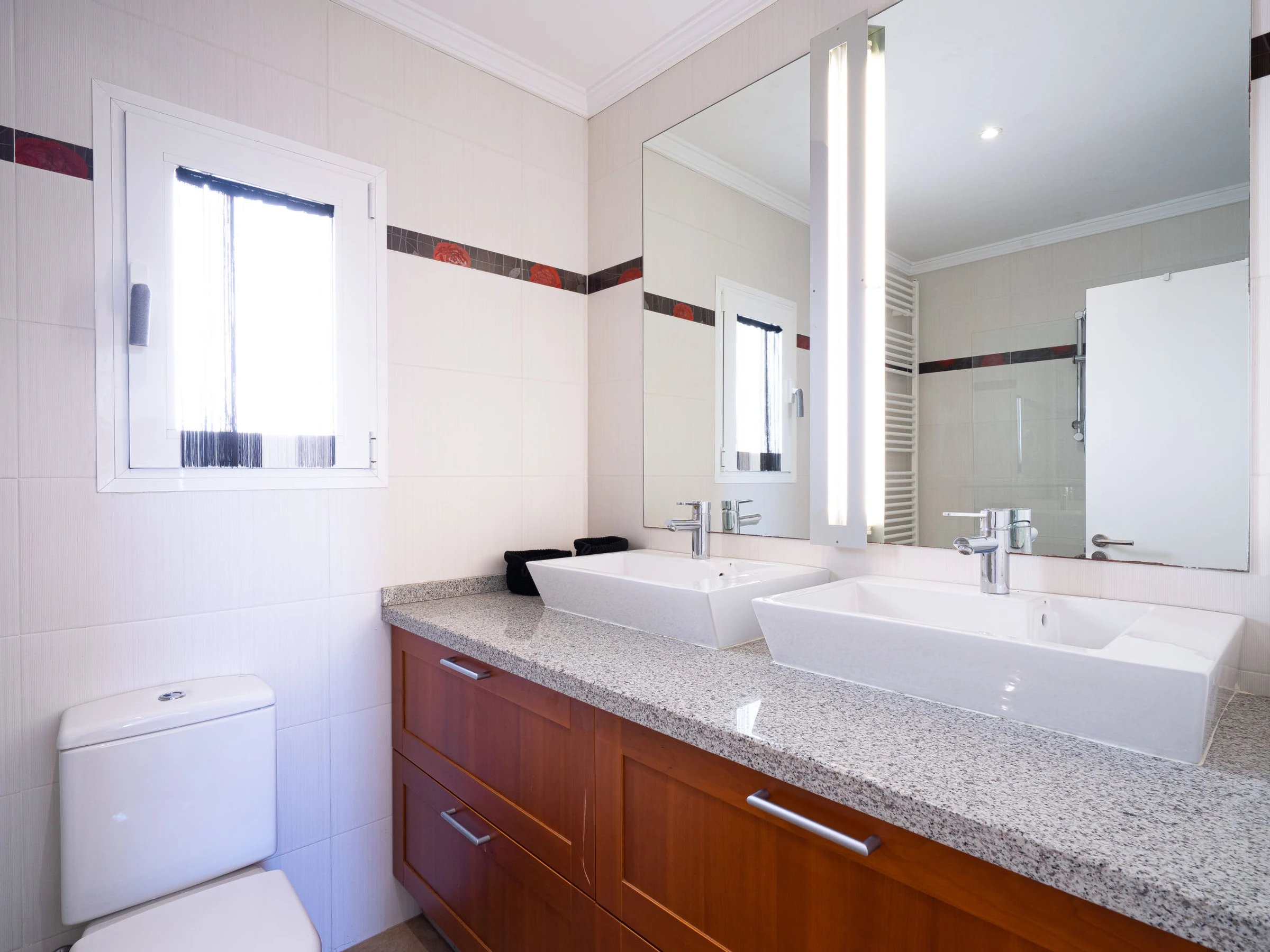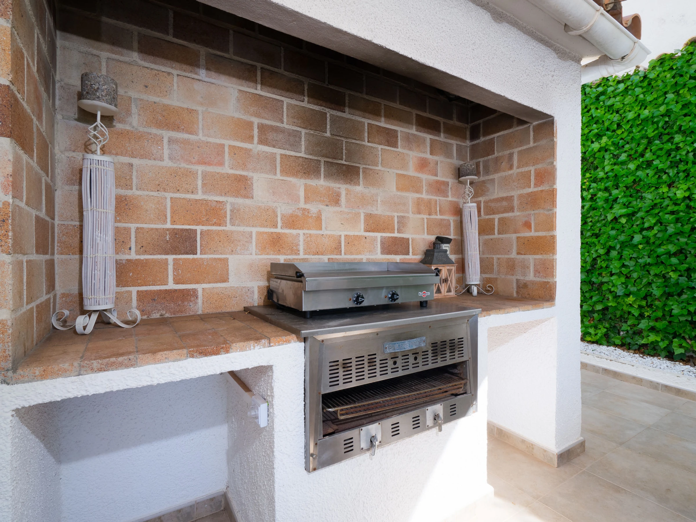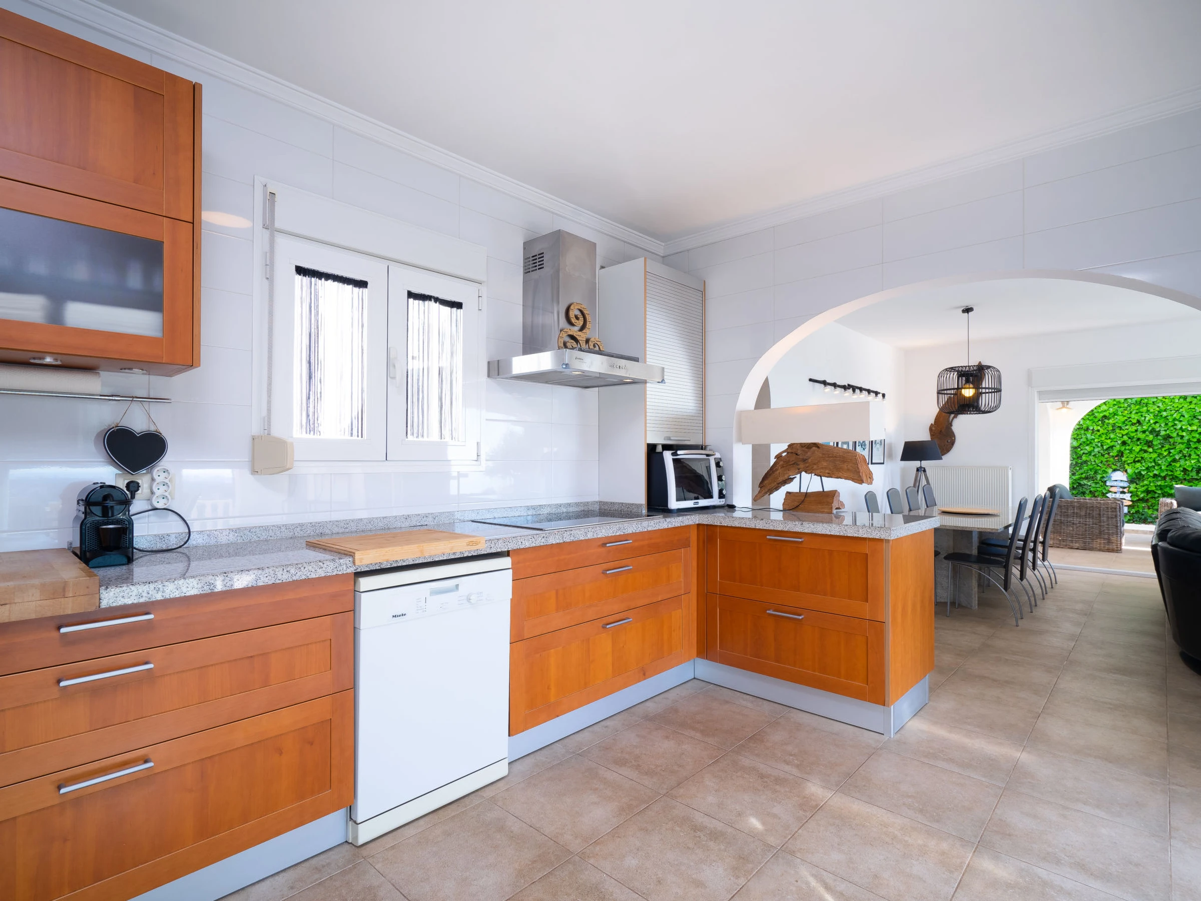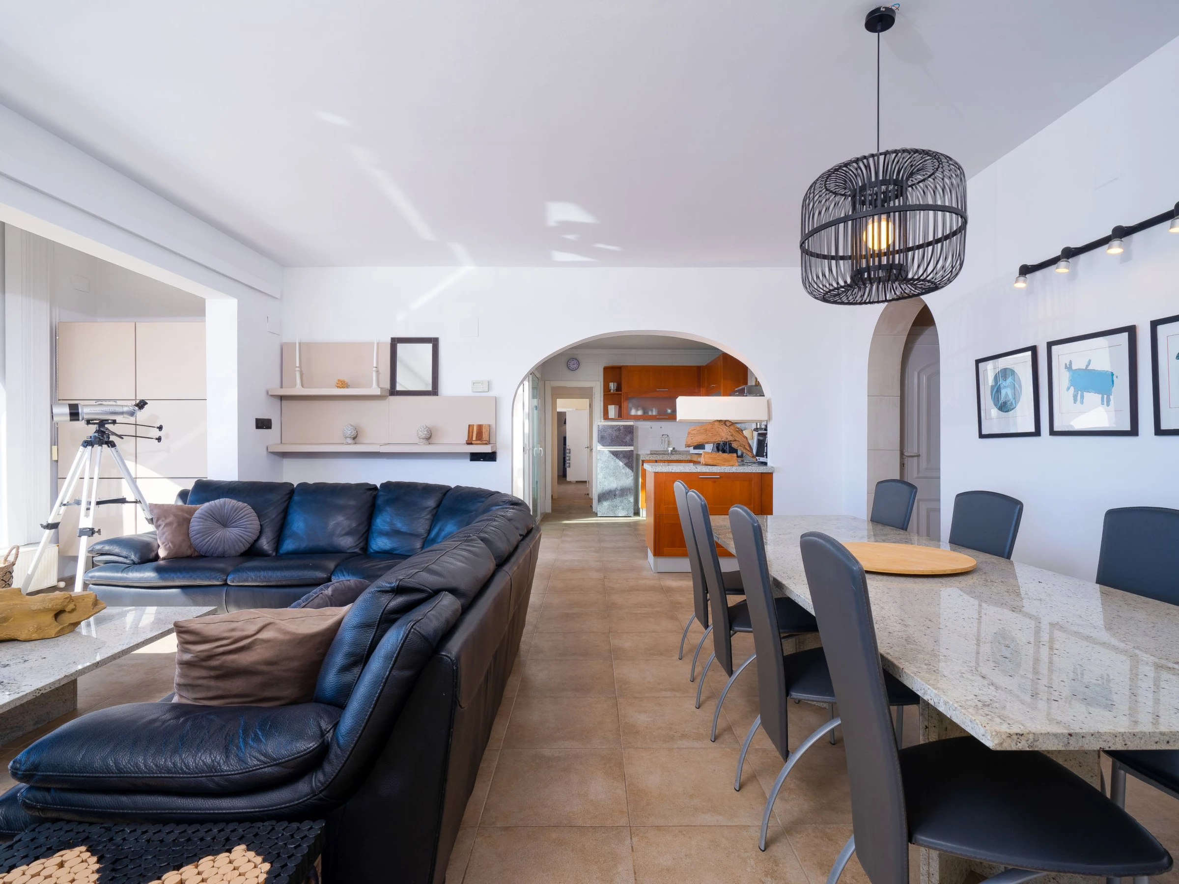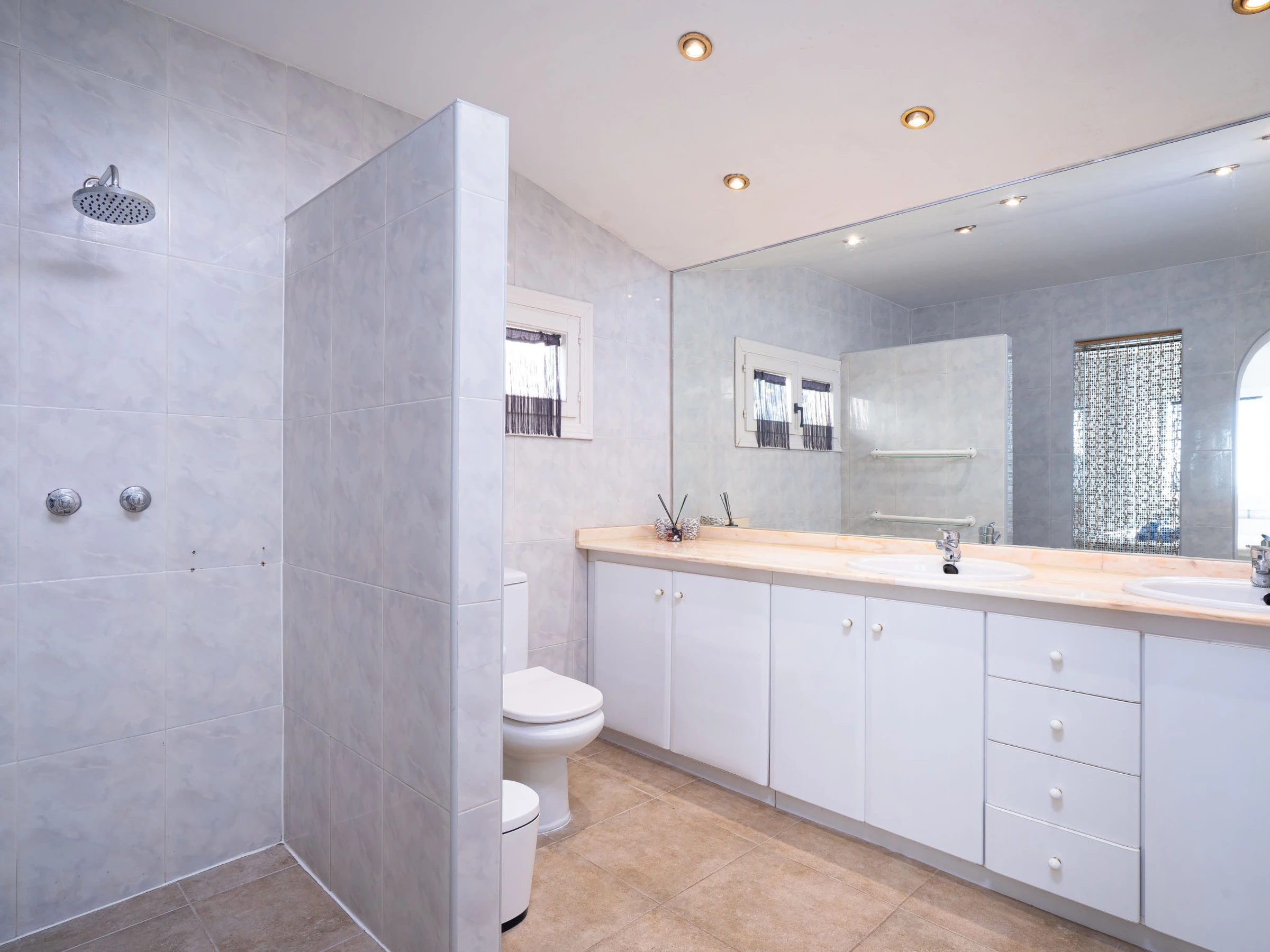 "Vista Azul", 4-room villa 186 m2. Object suitable for 4 adults + 3 children. Spacious and bright, comfortable and beautiful furnishings: open living/dining room with satellite TV. Exit to the terrace, to the swimming pool. 1 room with 1 french bed (1 x 160 cm, length 200 cm), air conditioning and forced-air heating. Exit to the terrace, to the swimming pool. Interconnecting room with 2 pull-out beds (4 pers. 2 x 90 cm, length 200 cm), shower/WC, air conditioning and forced-air heating. Exit to the terrace. 1 room with 1 french bed (1 x 160 cm, length 200 cm), shower/WC, double hand-basin, air conditioning and forced-air heating. Open kitchen (oven, dishwasher, 4 ceramic glass hob hotplates, toaster, kettle, microwave, electric coffee machine). Bath/shower/WC, double hand-basin. Large terrace. Terrace furniture, barbecue, deck chairs, sitting area. Panoramic view of the sea and the resort. Facilities: washing machine, iron, children's high chair, baby cot for up to 3 year olds (extra), hair dryer. Internet (WiFi, free). Please note: no parking. [hidden]