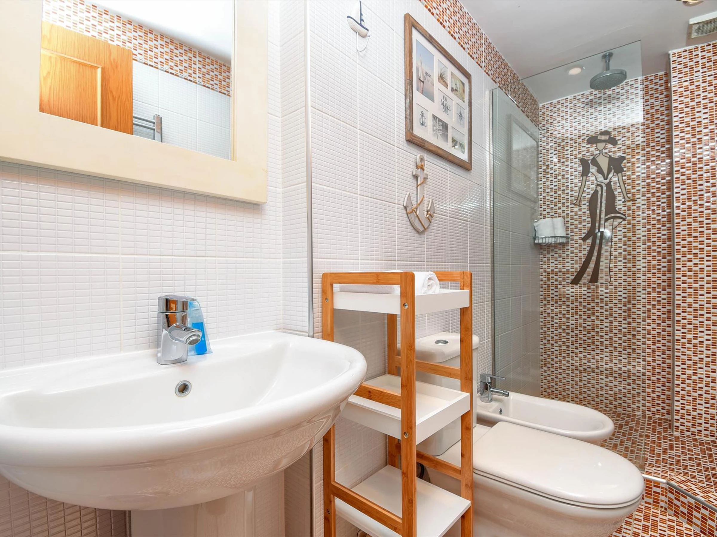 * bathroom with single washbasin, shower, bidet and toiletExterior of the