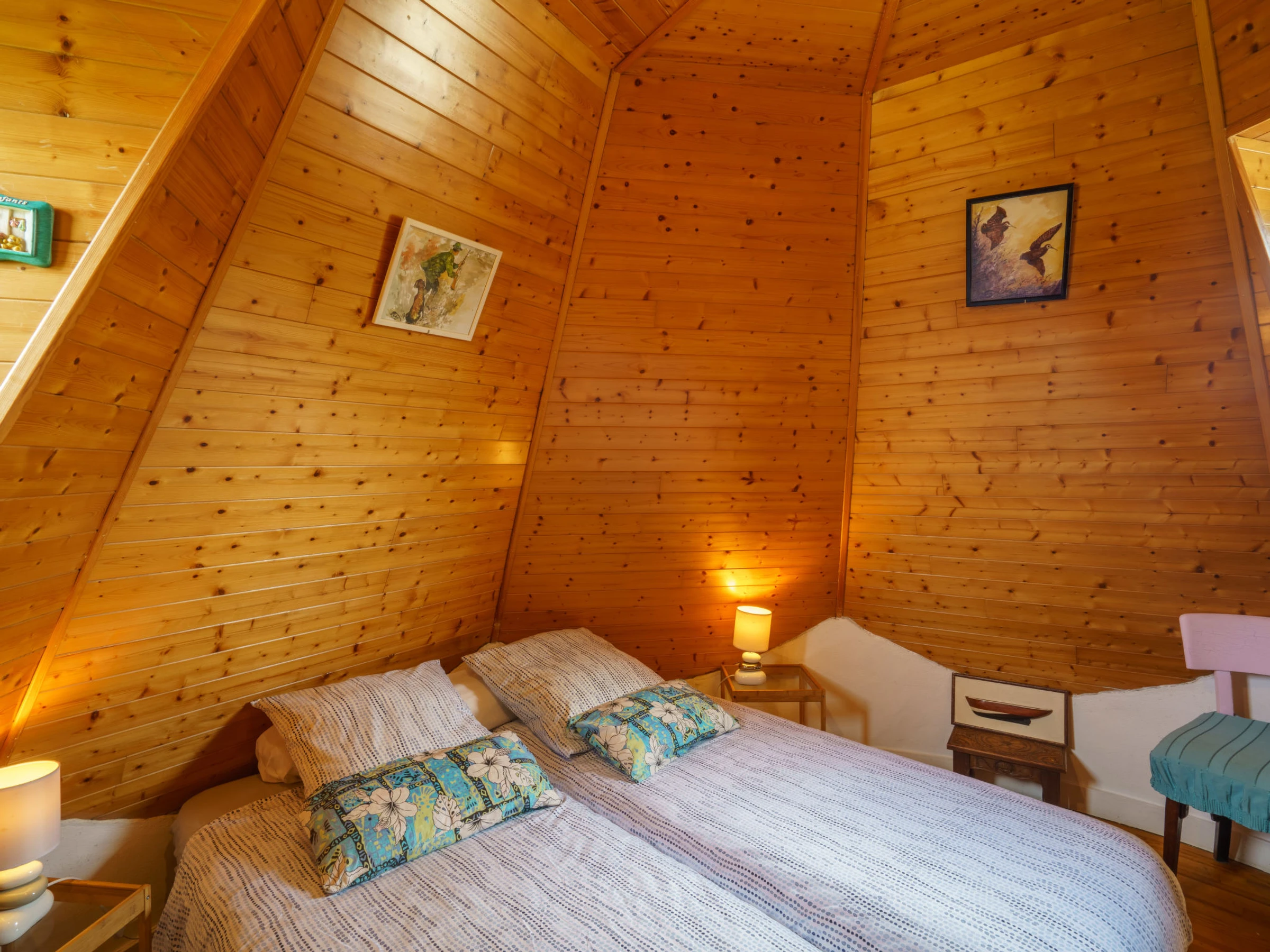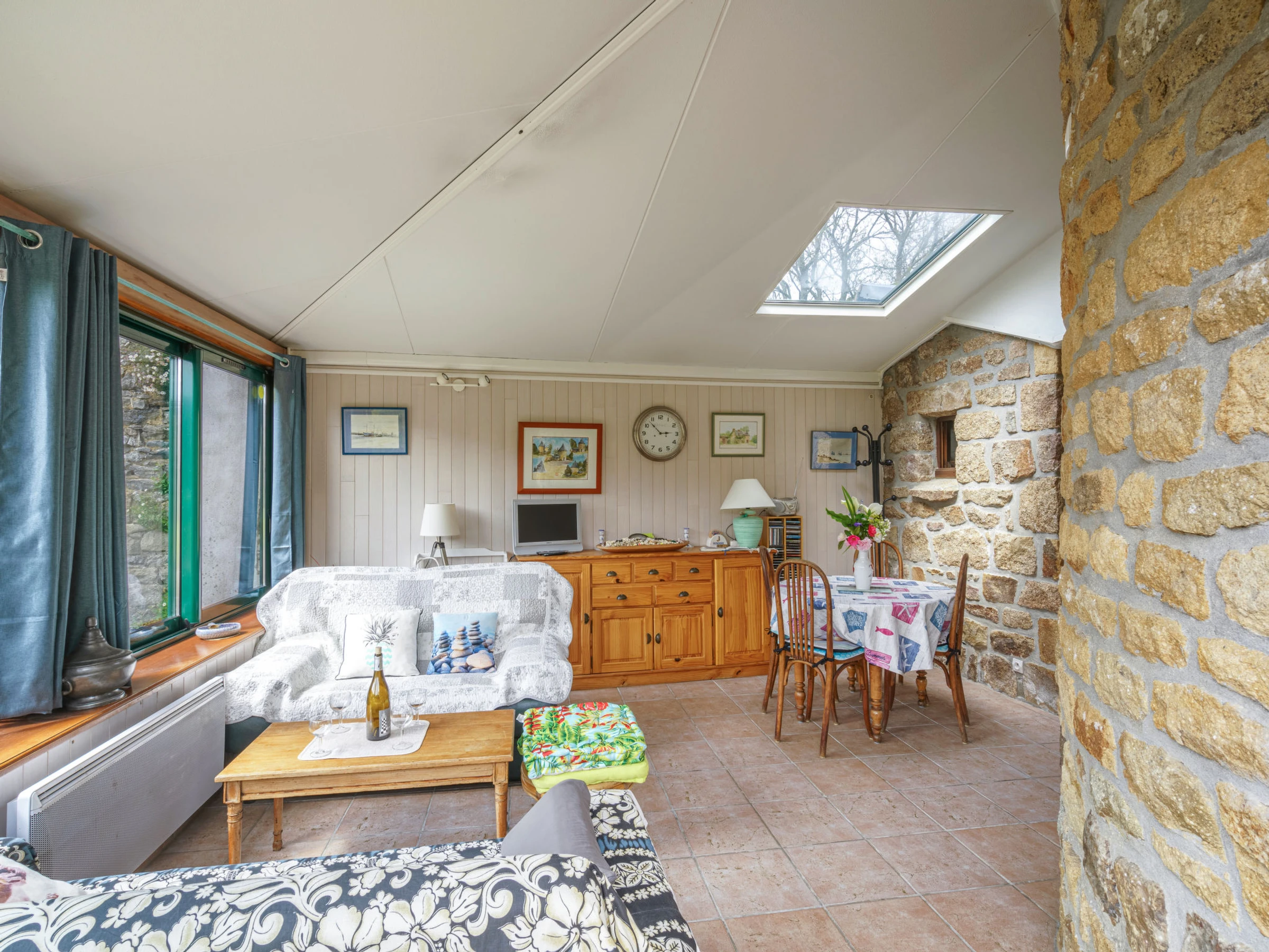 3-room house 70 m2 on 3 levels. Beautiful and rustic furnishings: living/dining room 25 m2 with veranda with TV and flat screen. Exit to the garden. Kitchenette (4 hot plates, oven, dishwasher, toaster, kettle, microwave, electric coffee machine). Shower/WC. Electric heating. Upper floor: 1 open room with sloping ceilings with 2 beds (90 cm, length 190 cm). 2nd upper floor: 1 open room with sloping ceilings with 1 french bed (1 x 140 cm, length 190 cm). Large garden. Terrace furniture, barbecue (portable), deck chairs (3). View of the garden. Facilities: washing machine, baby cot for up to 2 year olds, hair dryer. Parking (2 cars). Please note: non-smoking house. Maximum 1 pet/ dog allowed. Smoke alarm. Renovated old dovecote.