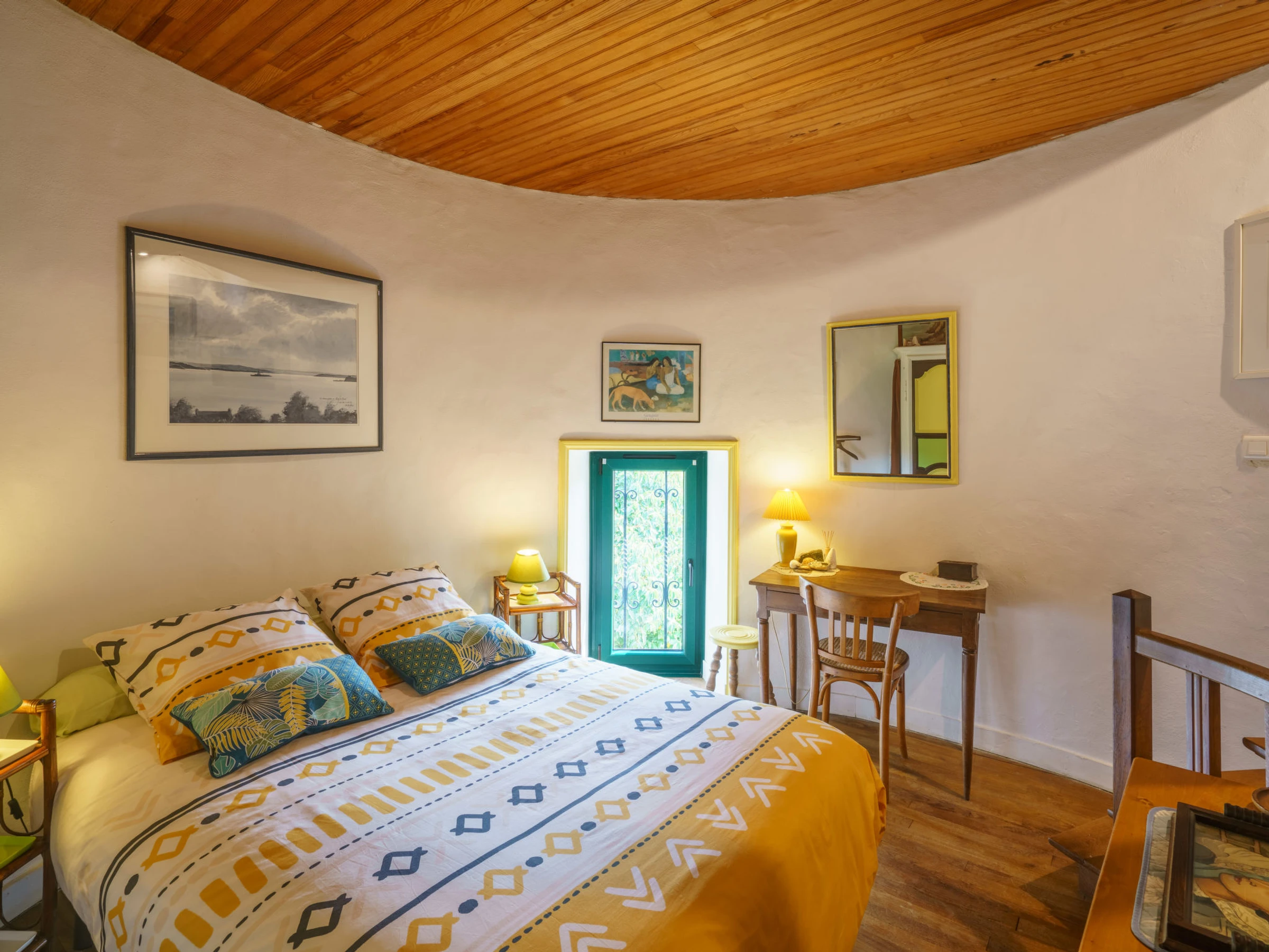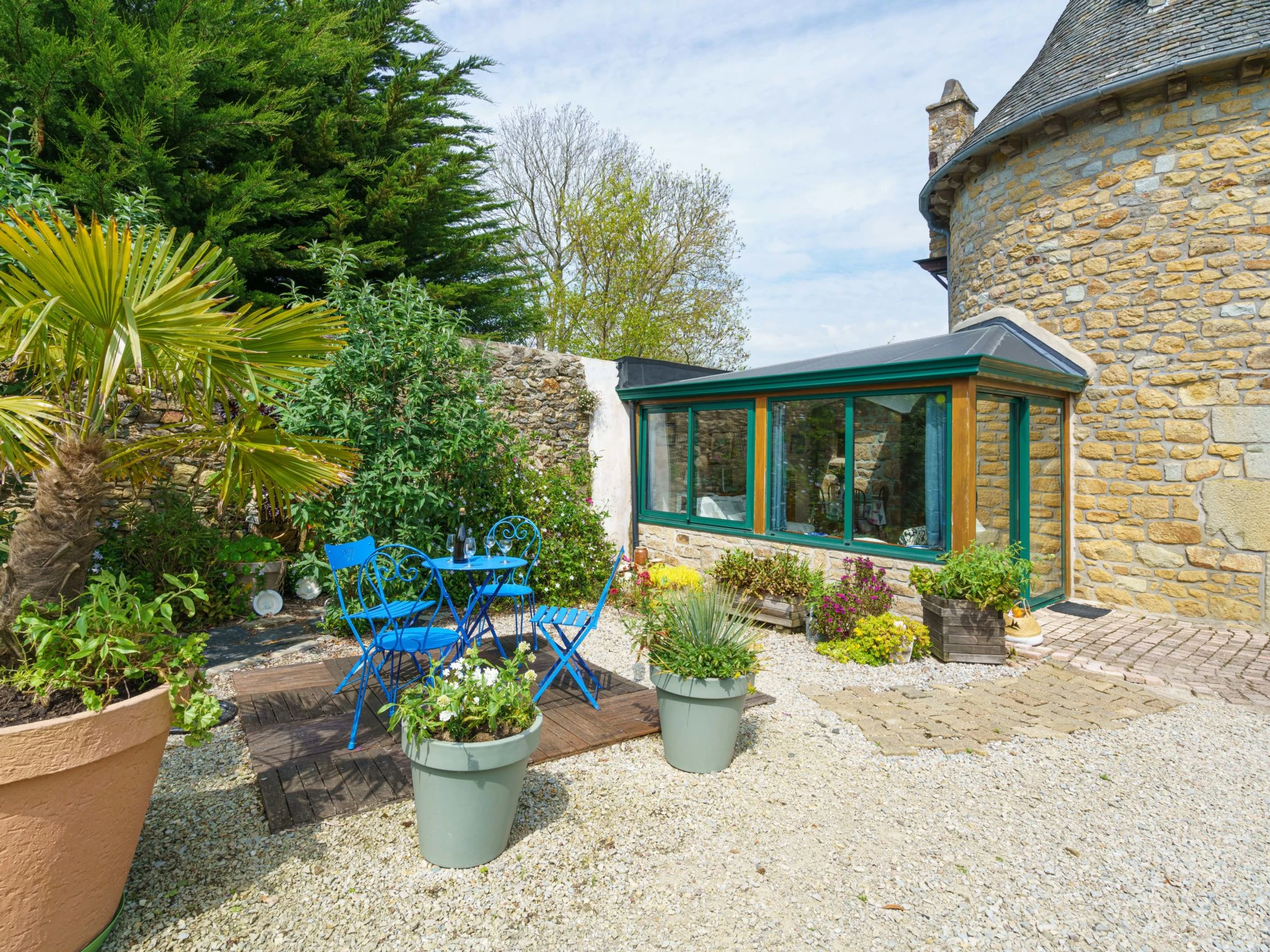 Roscanvel 11 km from Crozon: Single-family house "Le Pigeonnier". Outside the resort, 1 km from the centre, in a quiet position, 800 m from the sea, 800 m from the beach. Private: park 1 ha, garden 500 m2 (fenced) with lawn and flowers, parking on the premises. Shop, grocery 300 m, supermarket 5 km, restaurant 300 m, bicycle rental 200 m, bus stop 11 km, sandy beach "du petit Port de Roscanvel" 800 m. Nearby attractions: Crozon 11 km, Morgat 12 km, Quimper 65 km. Hiking paths: GR34 200 m. Please note: car recommended. Baby equipment on request (included).