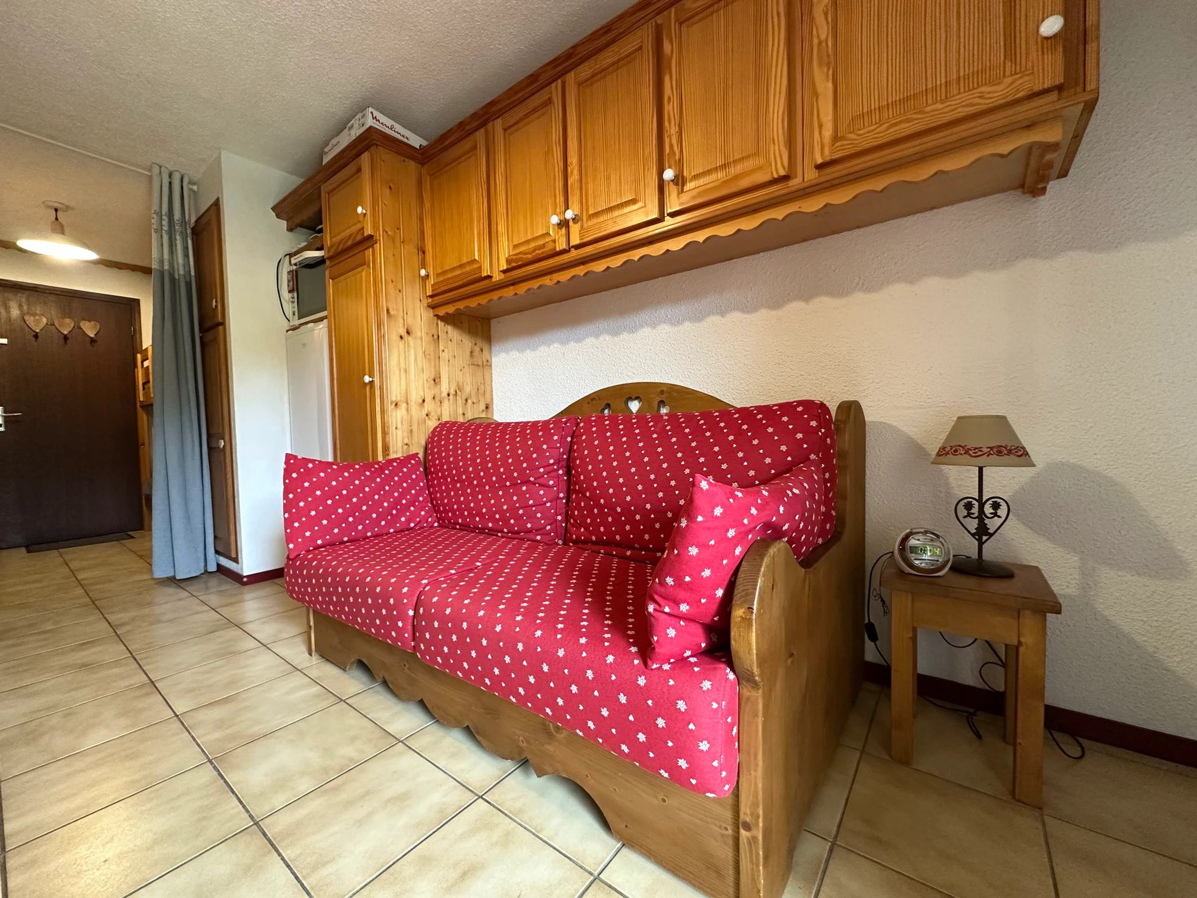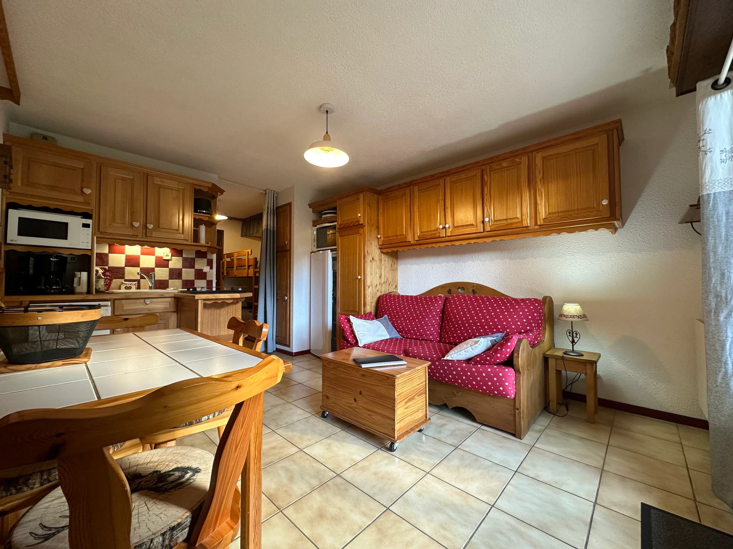 With a surface area of 21.20m², this apartment offers a comfortable space for a pleasant holiday in the mountains.Upon entering, you will find a mountain area, a bathroom equipped with a bathtub, separate toilet, a living area with sofa bed, TV, an equipped kitchen area.