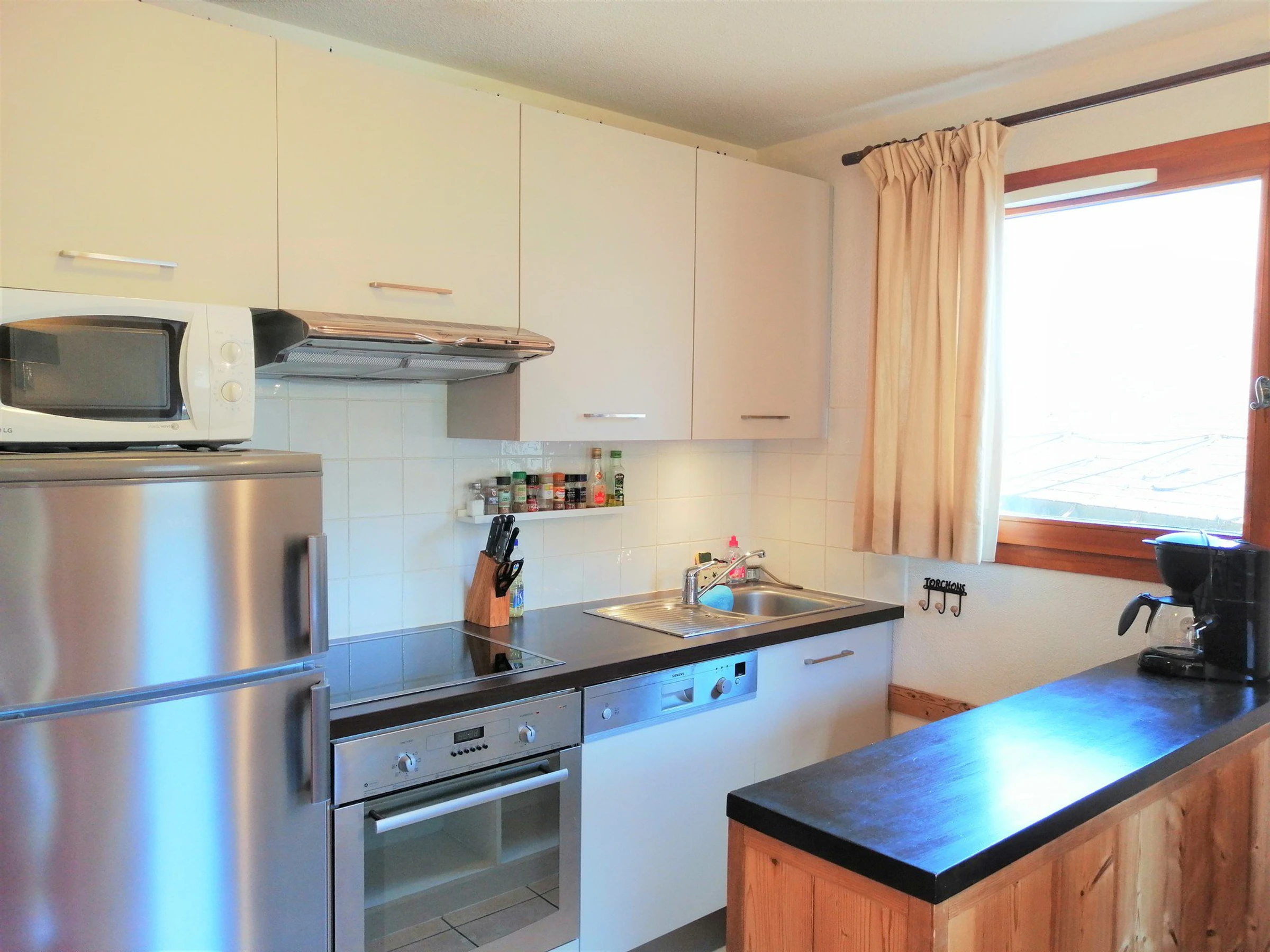 KITCHEN equiped : vitro hobs, fridge, mini oven, microwave, dish washer.