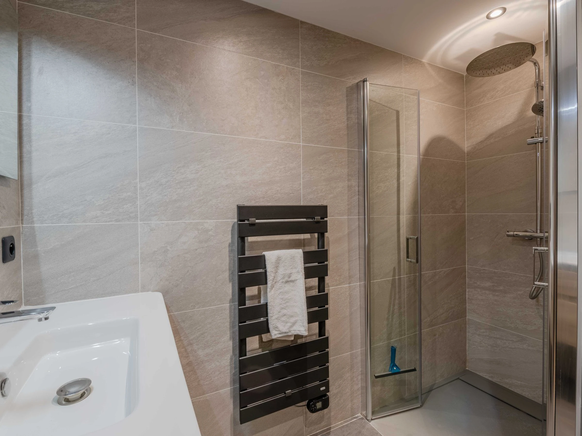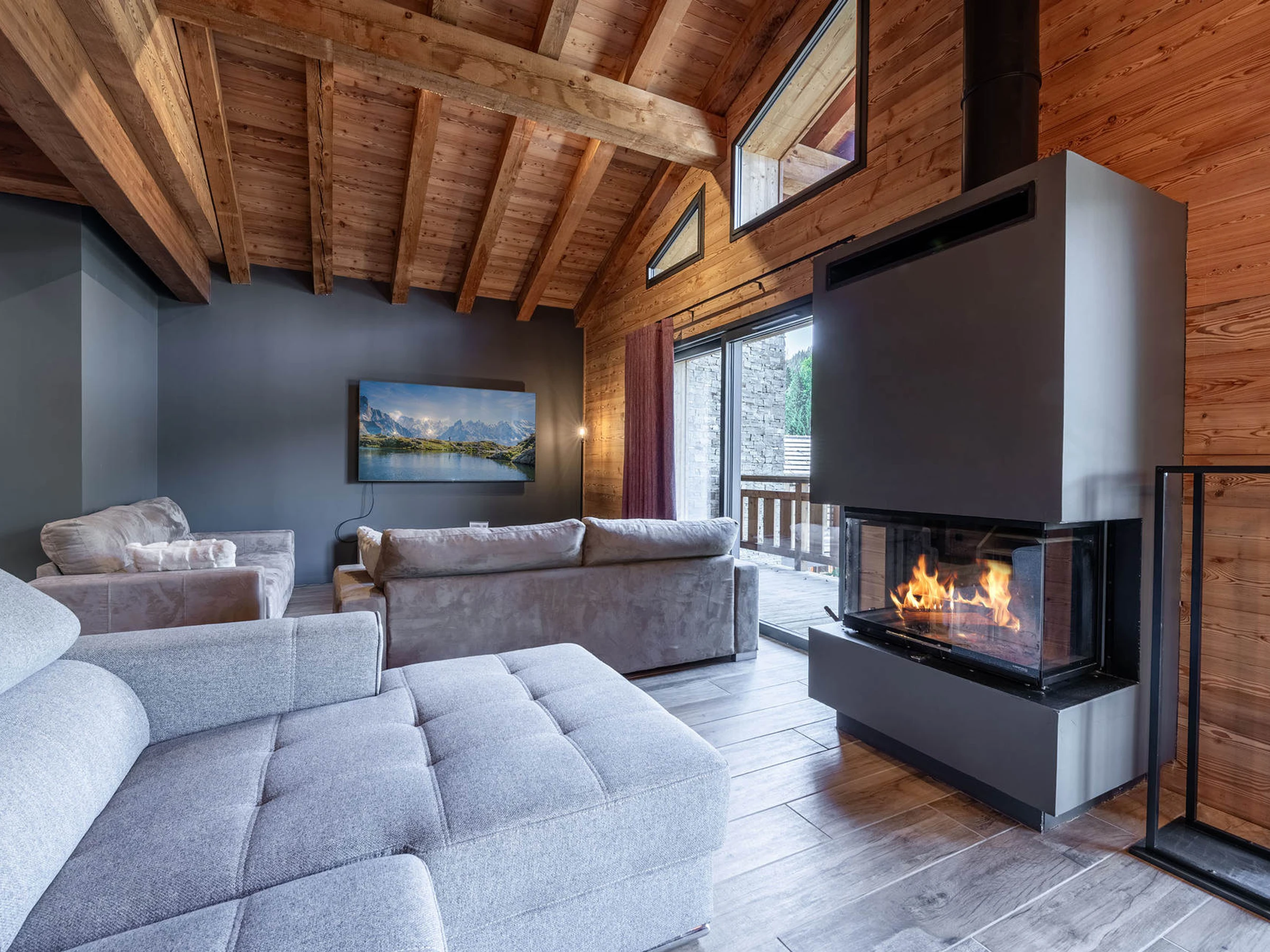 This chalet has 4 en suite bedrooms and a mezzanine. It also has a large living area and a fully equipped open-plan kitchen.